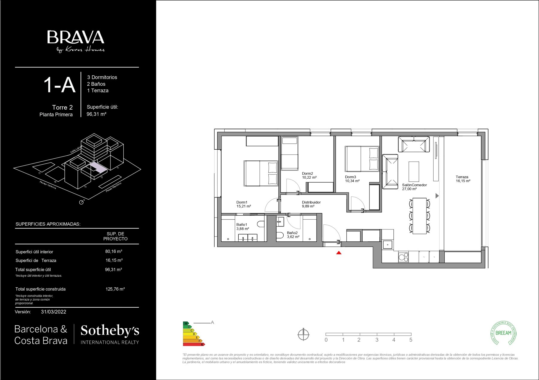 Brava has an excellent location right on the beachfront, so you can go down to the beach or the pool whenever you want. The development is located in the exclusive town of Platja d'Aro, one of the best areas of the Costa Brava, with its crystal-clear waters, all kinds of services, and connections to other points of interest. Platja d'Aro is known for its cuisine, with a wide range of restaurants offering various gastronomies, including Mediterranean. Additionally, the area offers a variety of leisure options and cultural activities such as the house-museum of Dalí in Cadaqués, the Dalí theatre-museum in Figueres, the medieval town of Besalú, the Roman ruins of Empúries, or the Cap de Creus Natural Park. Furthermore, it benefits from excellent connections to other points of interest, such as Girona thirty minutes away with its airport and train station, and Barcelona an hour away. The French border is just an hour and a half away by car.