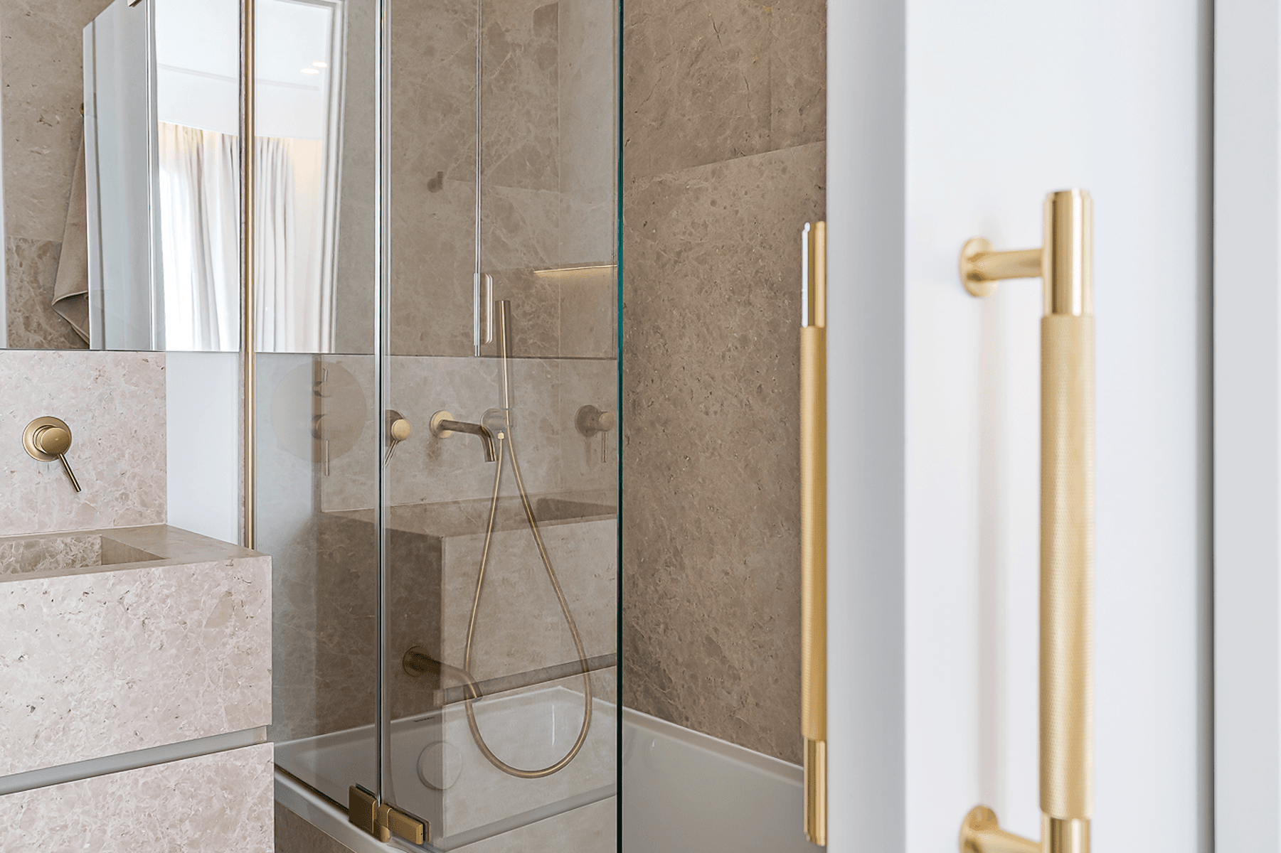 Die Wohnung verfügt über ein geräumiges Wohnzimmer mit Zugang zur Terrasse, eine komplett ausgestattete Küche mit hochwertigen Geräten, zwei Schlafzimmer mit eigenem Bad und ein Gäste-WC. Das Innendesign mit edlen Materialien und zeitgemäßen Oberflächen schafft eine gemütliche und anspruchsvolle Atmosphäre. Mehr lesen