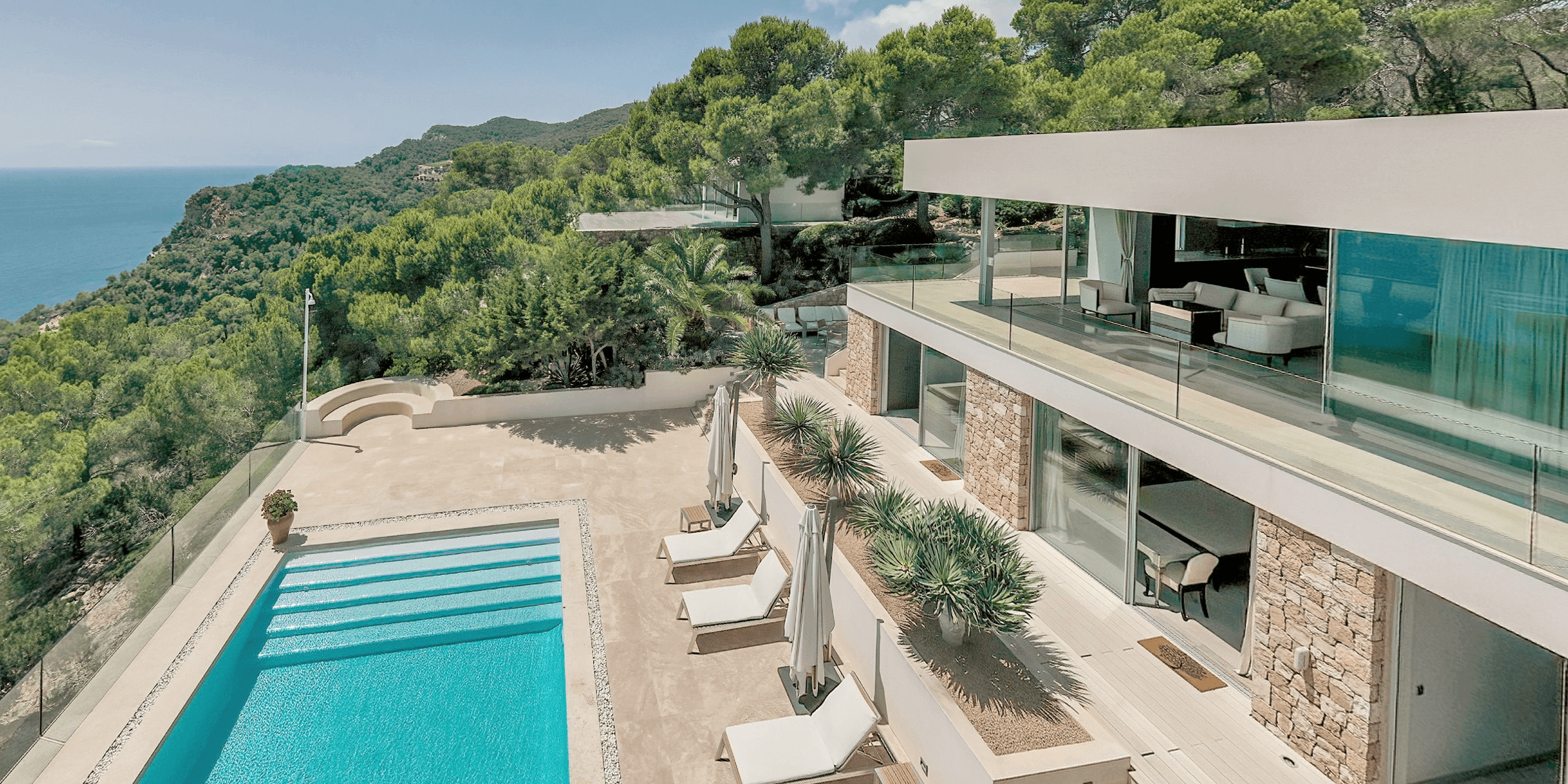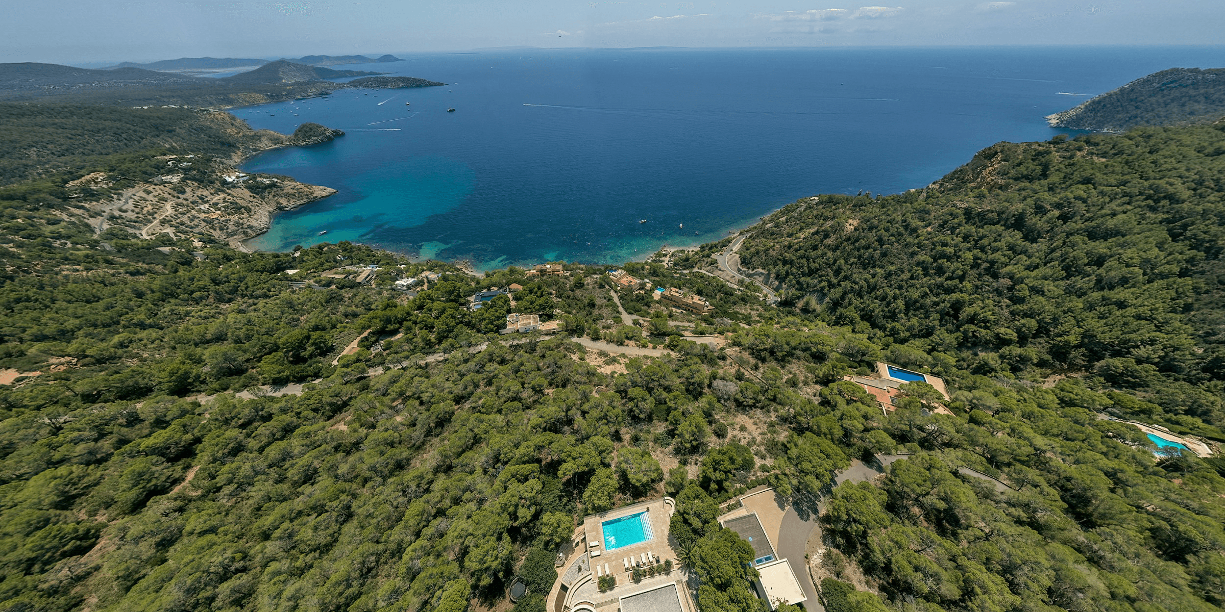 Blue es una exclusiva villa contemporánea de lujo, recientemente rediseñada, que ofrece impresionantes vistas panorámicas al mar, hacia la isla de Formentera y la naturaleza virgen que la rodea.