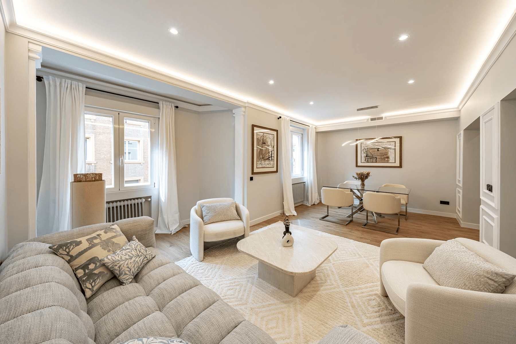 Exclusivo piso exterior de 111 m² en Calle Padilla, en el Barrio de Salamanca. Situado en la tercera planta de un edificio con ascensor y portero físico.