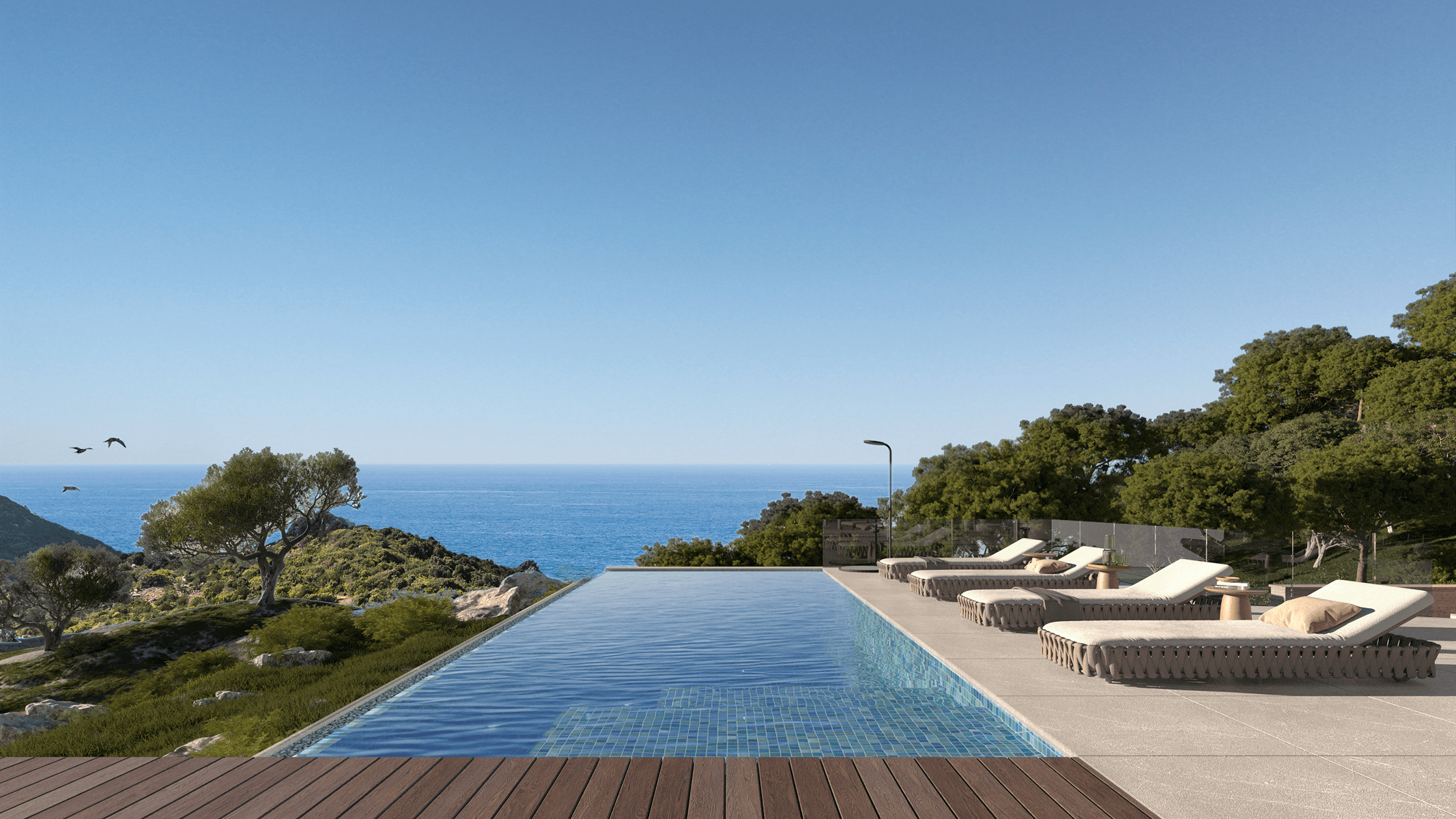 Anidada en la cima de la cordillera de Cala Salada, esta opulenta villa domina una magnífica vista del mar Mediterráneo, a solo un paso de una de las playas más emblemáticas de Ibiza.