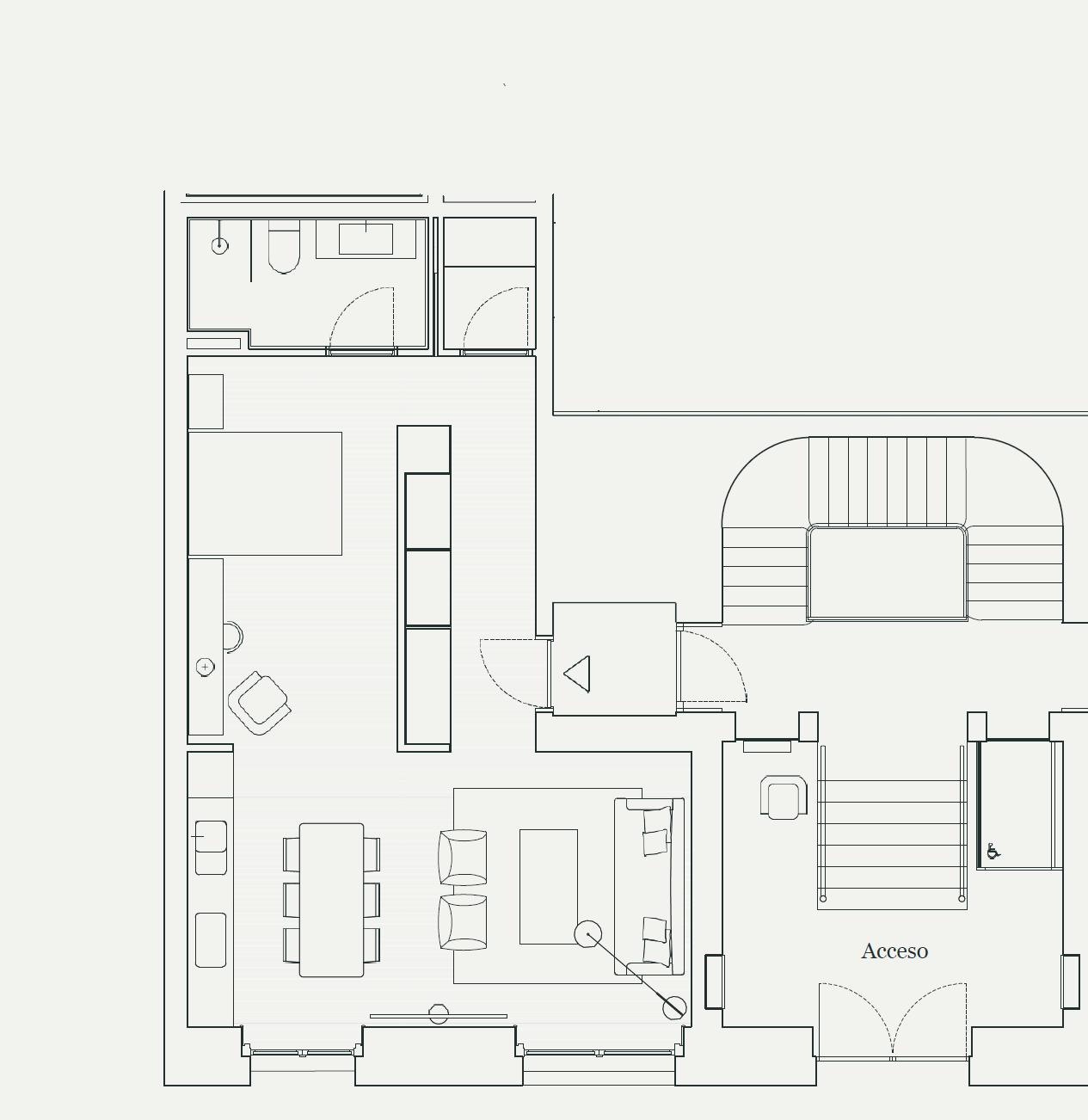 The building's common areas include a heated indoor pool over 15 meters in length, fully equipped changing rooms, and a state-of-the-art gym with advanced technology. For those who prefer to relax, the sauna provides an ideal space to detoxify the body and revitalize energy after a good workout. Additionally, the rooftop offers landscaped areas and cozy corners, perfect for unforgettable moments in the heart of Madrid. The rooms, with large windows, open to the garden patio, filling the spaces with natural light and extending the ambiance outdoors.