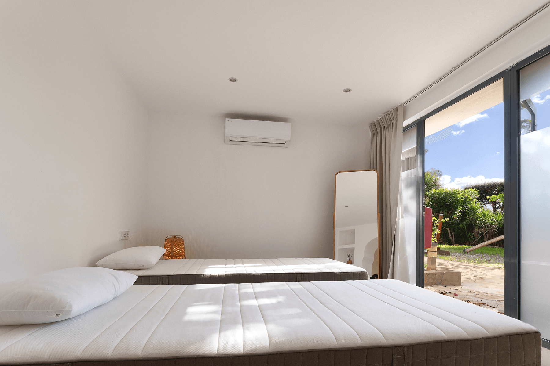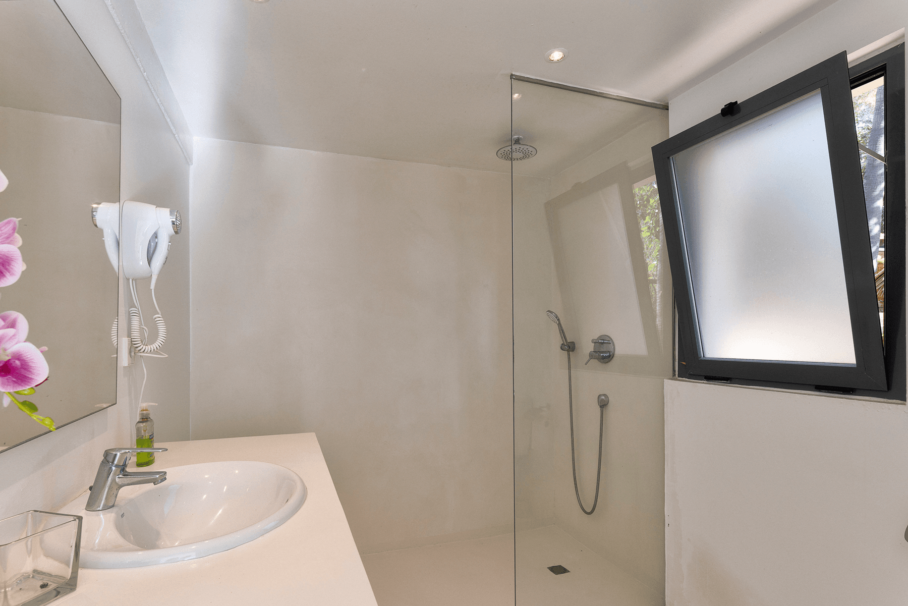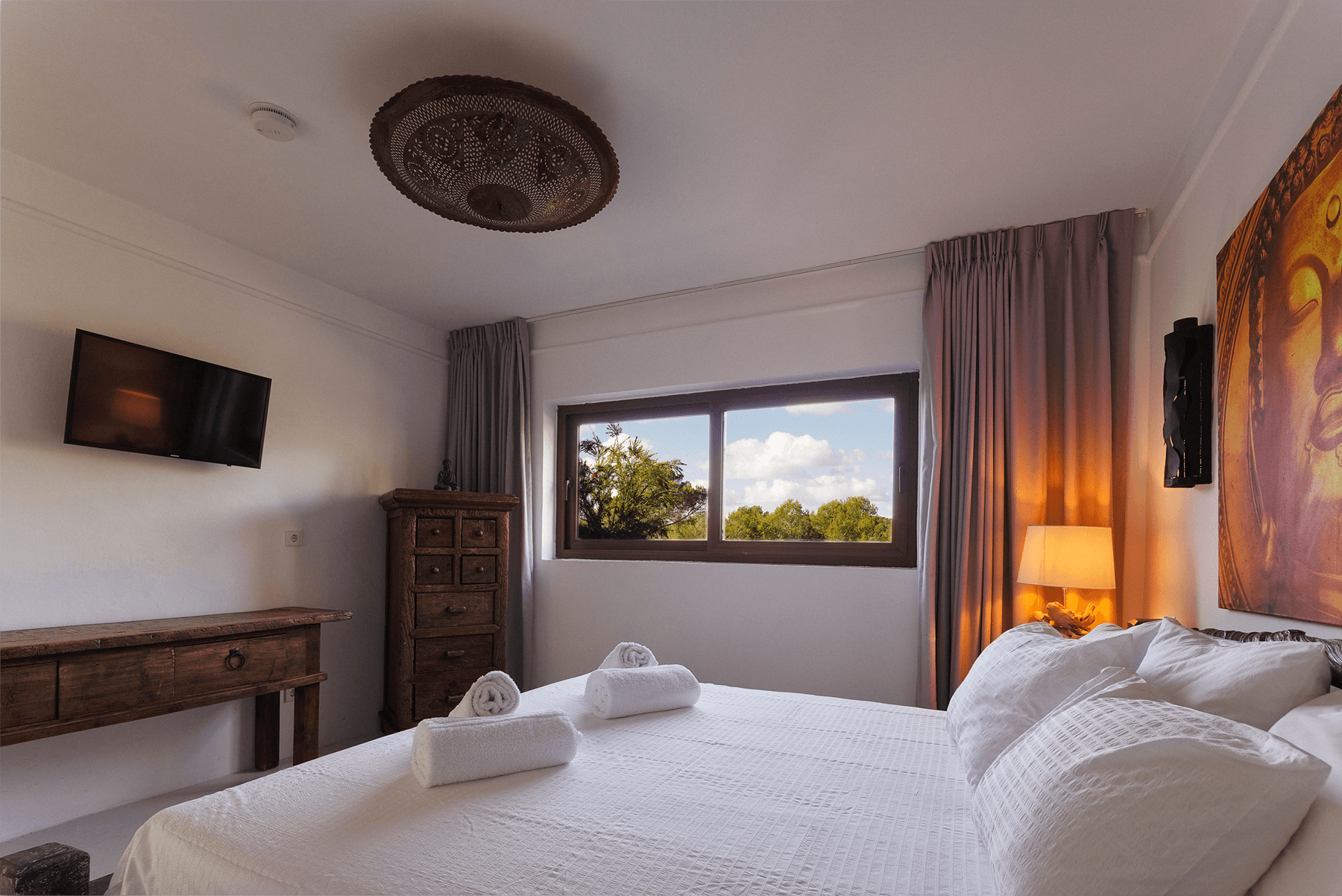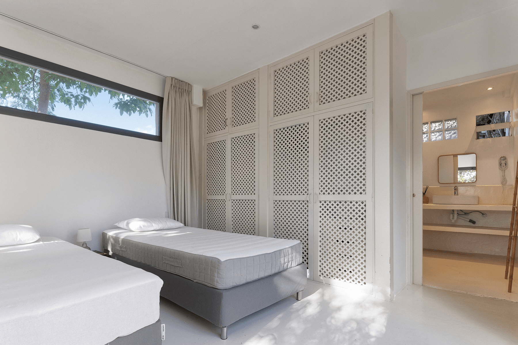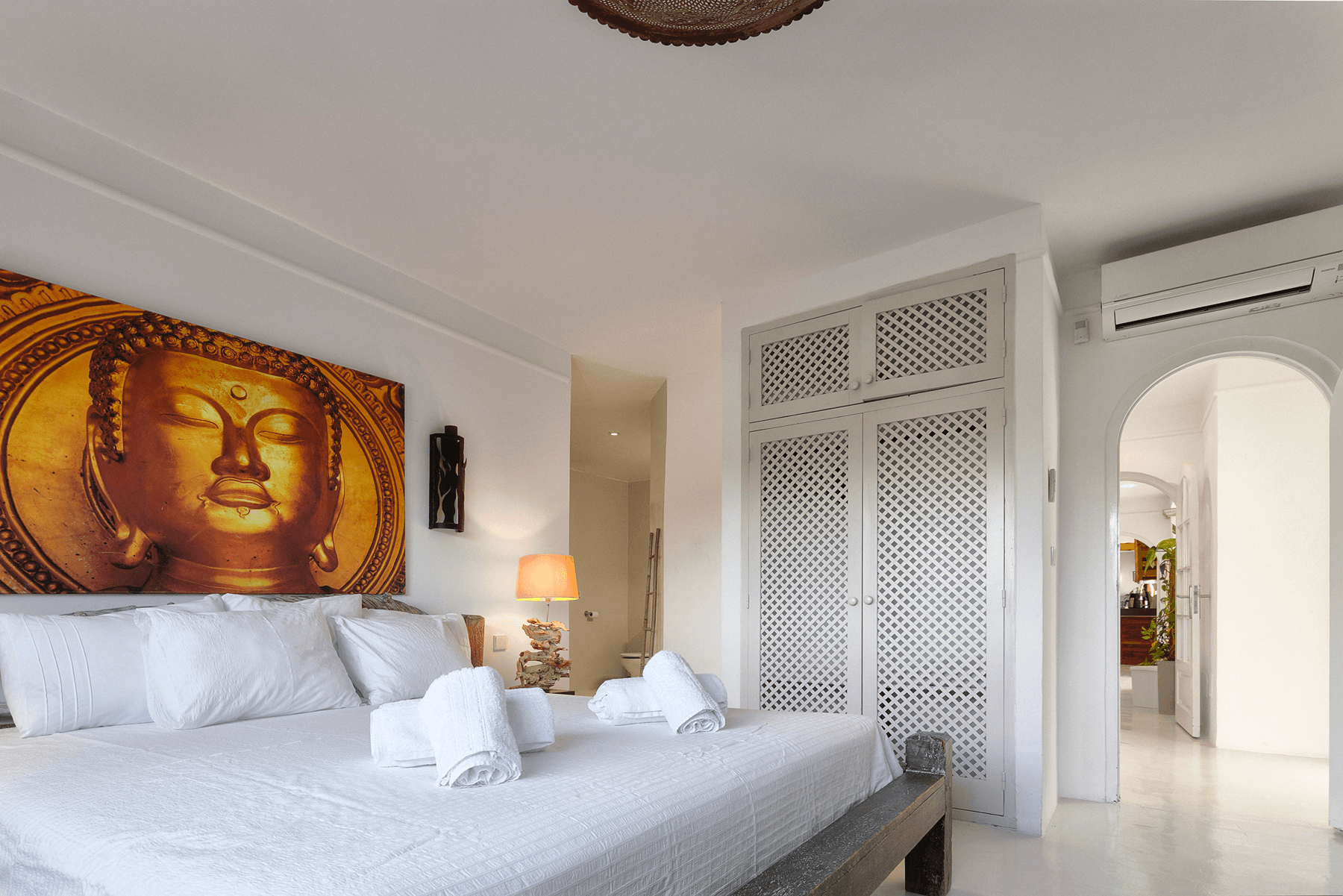 Er zijn 15 suites met eigen badkamer en airconditioning. Tien suites hebben eenpersoonsbedden en vijf hebben tweepersoonsbedden. De hoofdsuite van 41 m² beschikt over een eigen keuken, terras en een complete badkamer met bad en douche. Diverse extra kamers bieden terrassen, uitzicht op zee, privé loungeruimtes of directe toegang tot buitenruimtes. De onafhankelijke studio in de Boeddha-tuin maakt het geheel compleet. Lees meer