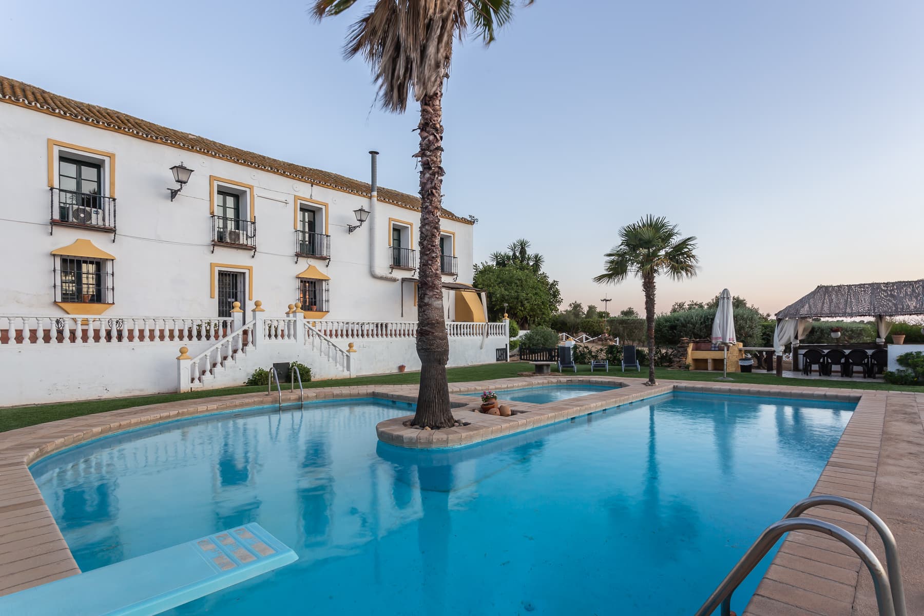 Through the main entrance, you access the central courtyard of the estate where there is a well, surrounded by bougainvillea and lemon trees that give it a special and cozy touch. From this courtyard, you enter the main area of the estate that leads to a beautiful pool with a garden and barbecue, overlooking the city of Seville. Read more