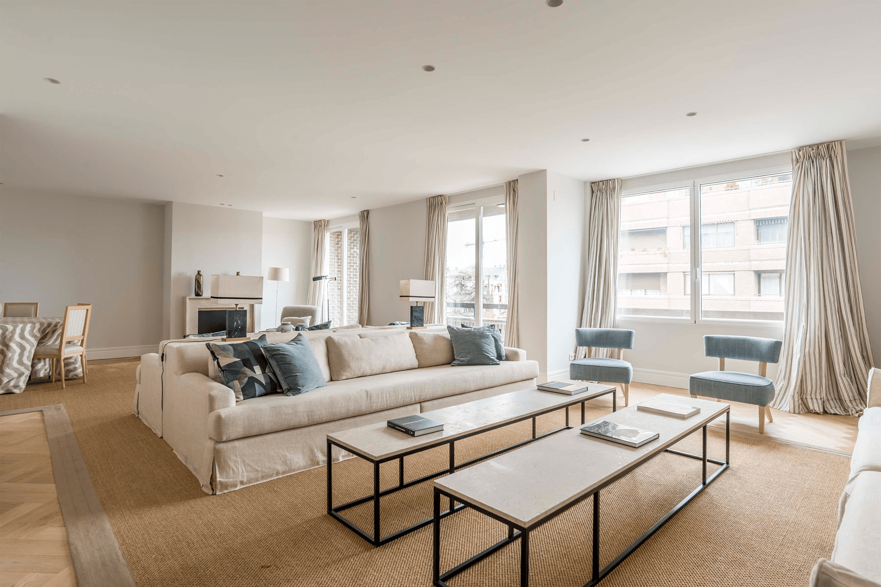 Spacious 3-bedroom apartment located in the prestigious Barrio de Salamanca, in the Lista area, one of the most sought-after areas of Madrid. The property stands out for its extraordinary brightness, thanks to its large windows that flood every room with natural light and offer a warm and sophisticated atmosphere throughout the day.