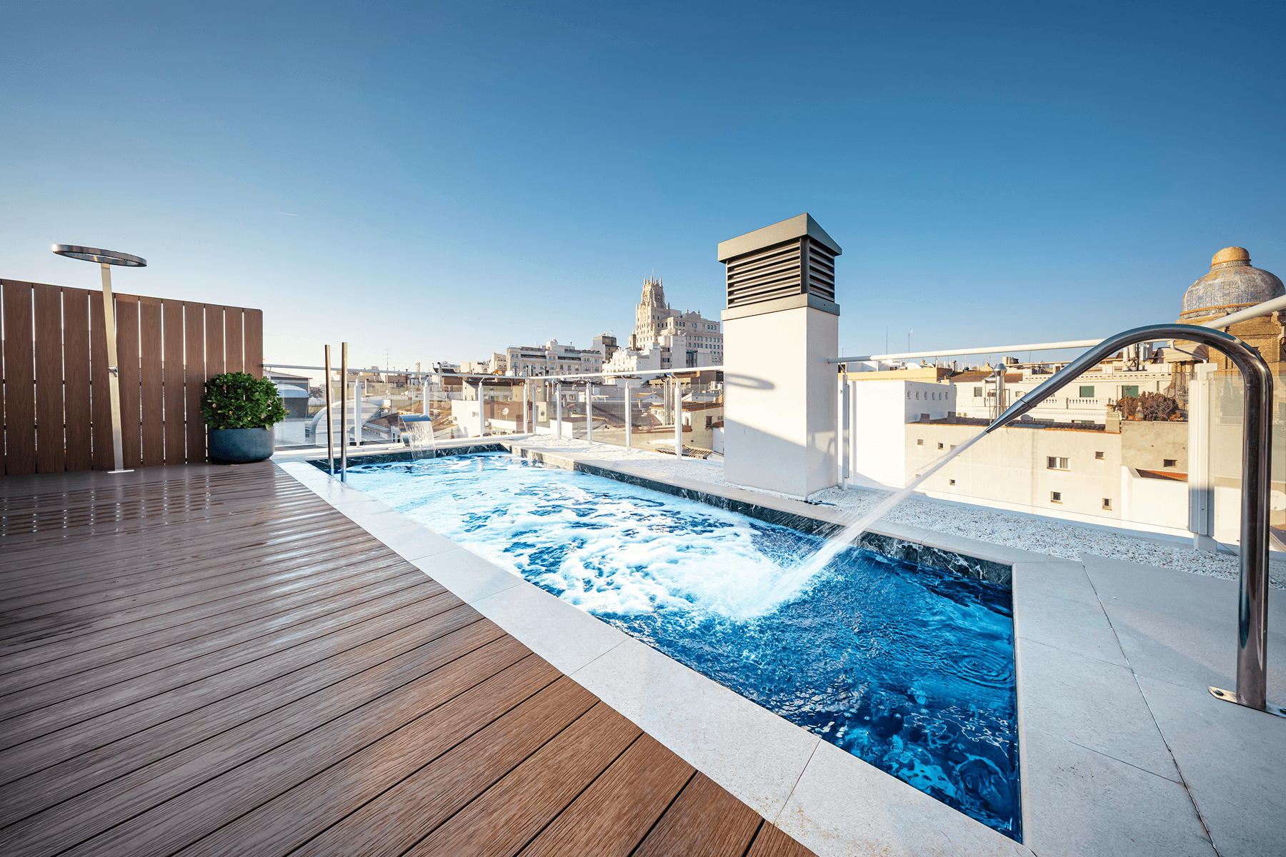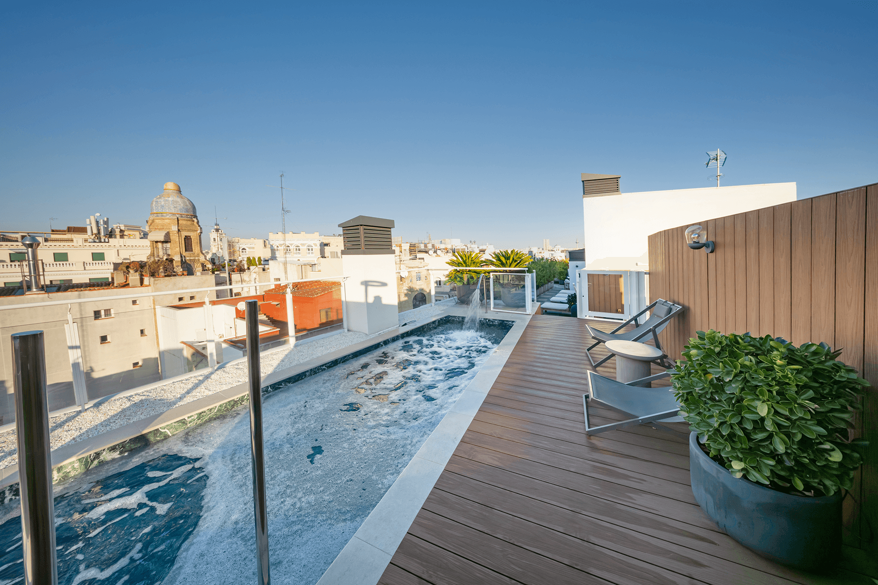 The property has a built area of 250 m², distributed in generous and well-proportioned rooms that stand out for their natural light, thanks to their exterior windows. The comprehensive reform has been carried out with current criteria, combining functionality and design to offer comfortable and well-used spaces. The property has three bedrooms and three full bathrooms and a guest toilet, all with quality finishes and a modern aesthetic designed for daily use. In addition, the house incorporates on the top floor, an exclusive private wellness area with a jacuzzi and a pool, both with impressive panoramic views over the city. On the first floor, a complete gym for private use, complemented by an elegant sauna area, designed for maximum well-being and comfort. The building is adapted for reduced mobility. Read more