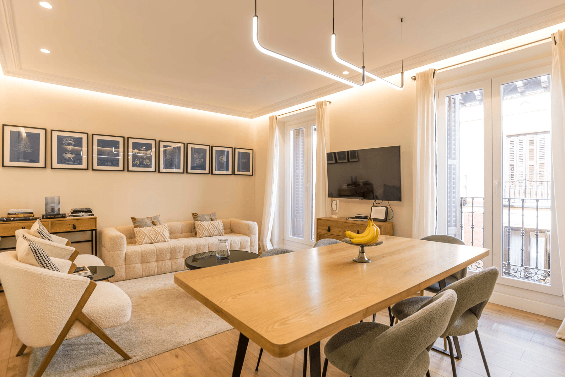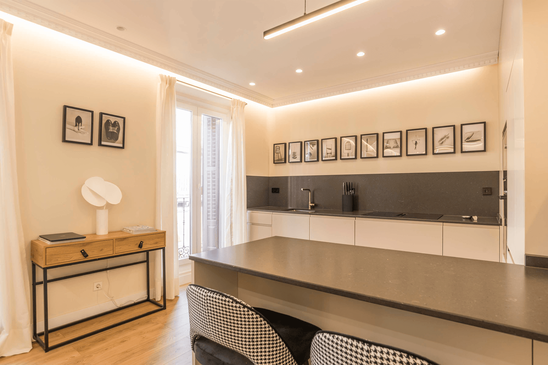 A unique piece in the most emblematic Madrid, this apartment is located in the Malasaña Neighborhood (formerly known as the Barrio de las Maravillas) where not only important episodes in the life of Madrid have taken place, but also decisive events in the history of Spain such as the War of Independence.