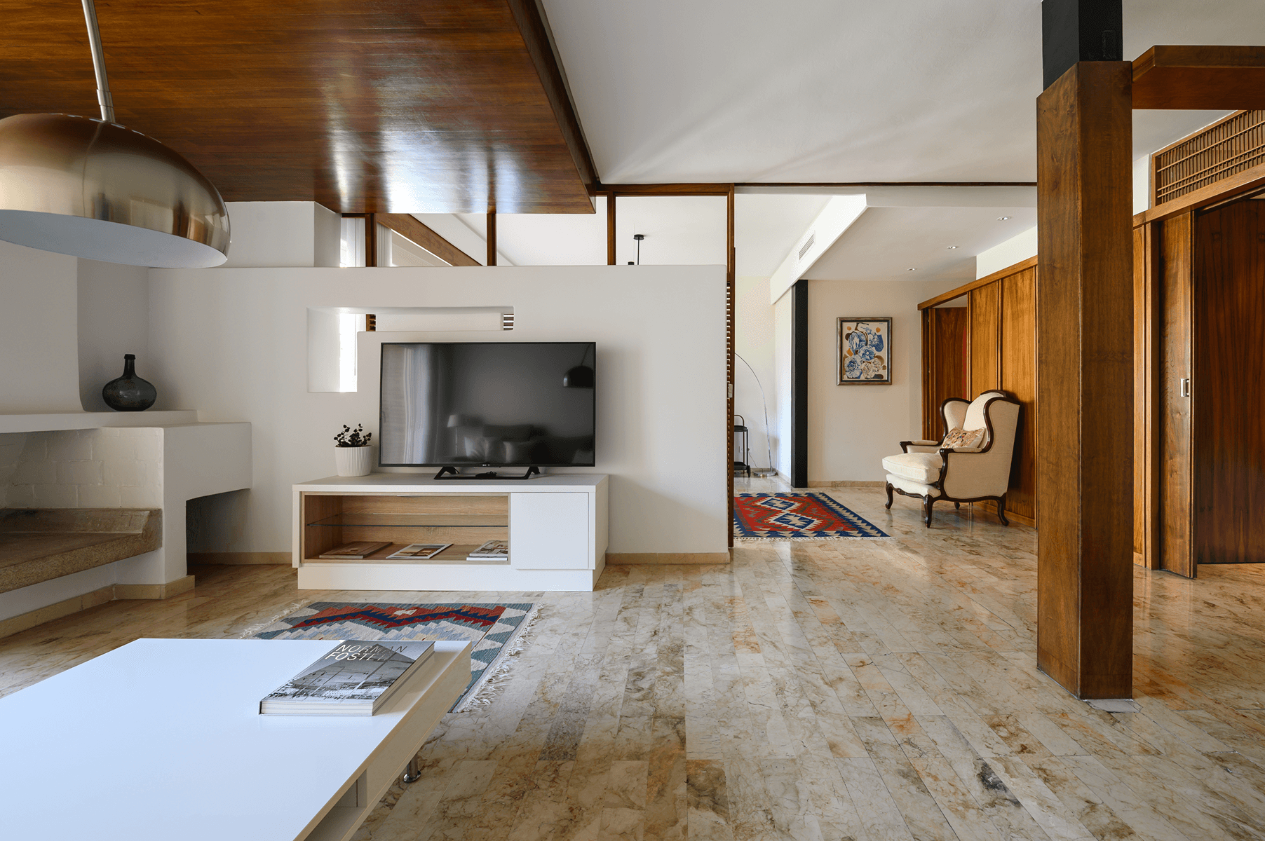 The layout clearly distinguishes between the public and private areas and has two separate entrances. From the main entrance, you enter a spacious hall with a coat rack, custom furniture, and a walnut wood craftsmanship lattice that filters natural light from the living room. Read more