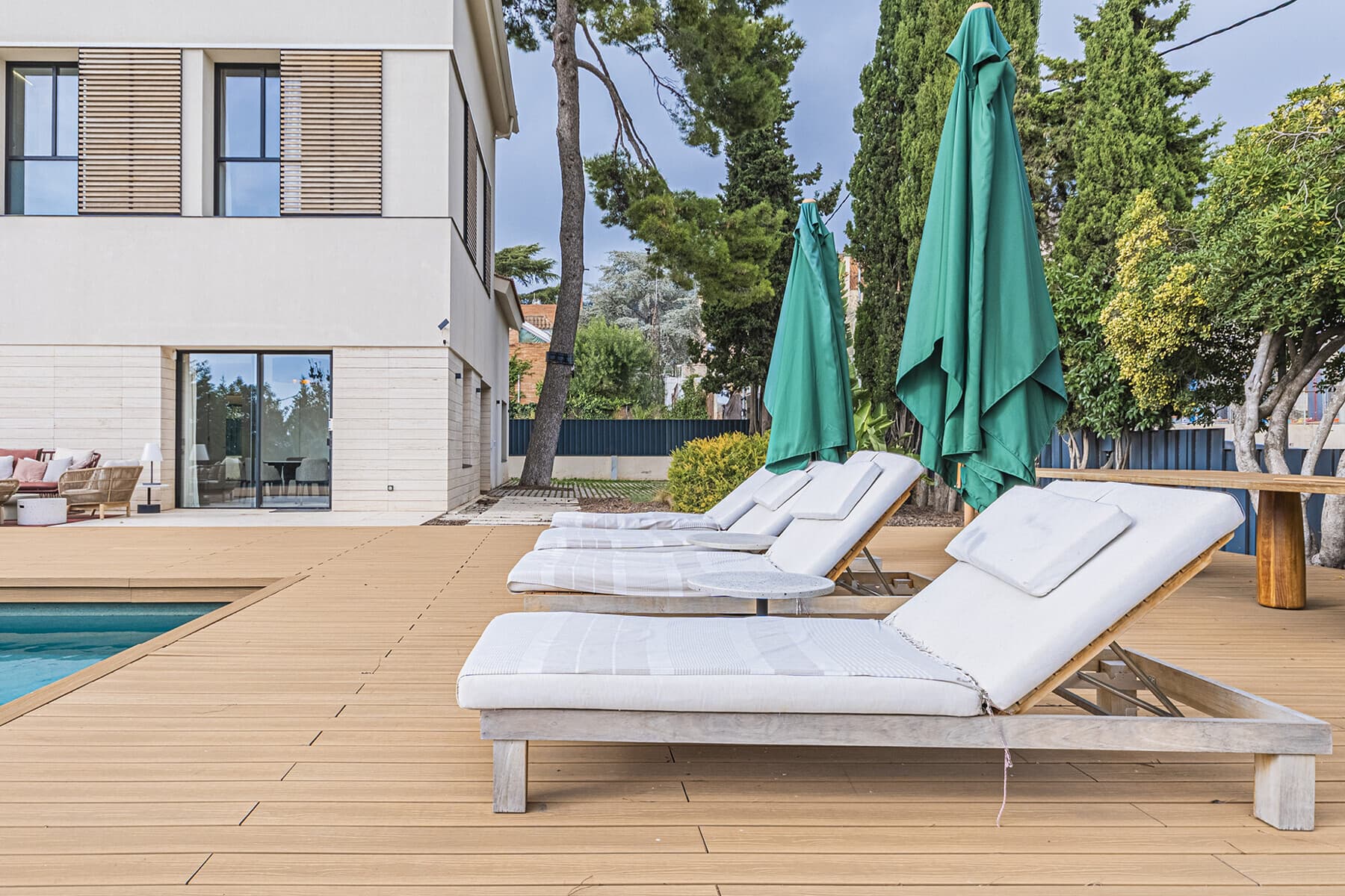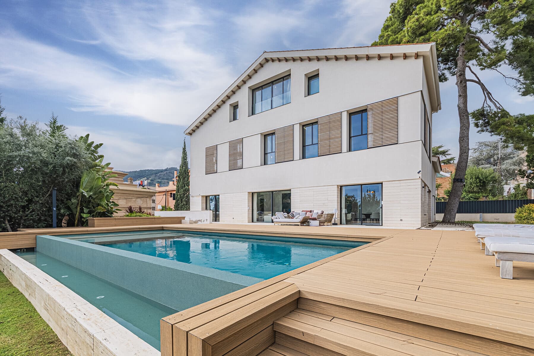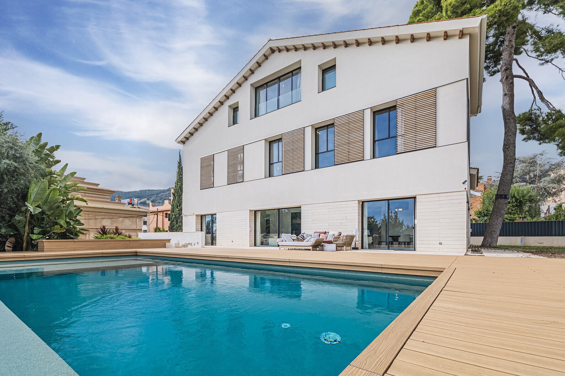 In the upper area of Barcelona, in the residential district of Sant Gervasi, stands this recently built home that combines generous interior space, a large garden and open views over the city — a rare find in this part of Barcelona. The property offers 560 sqm of built area on a beautifully landscaped 1,435 sqm plot, designed for year-round outdoor living.