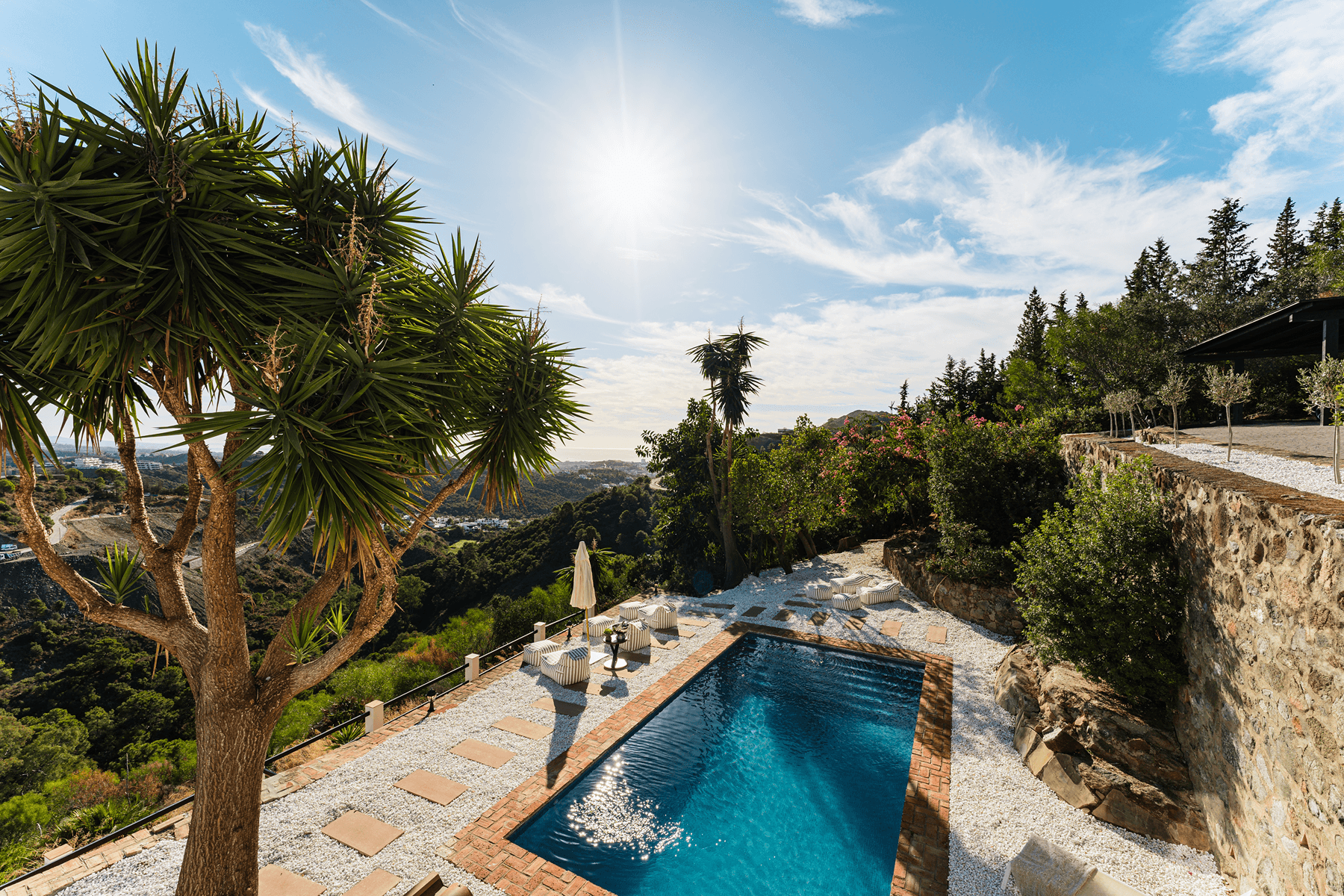 Perched in the hills above the Costa del Sol within the exclusive gated community of El Madroñal, this carefully maintained residence provides panoramic views and a unique blend of traditional Andalusian charm with contemporary design.
