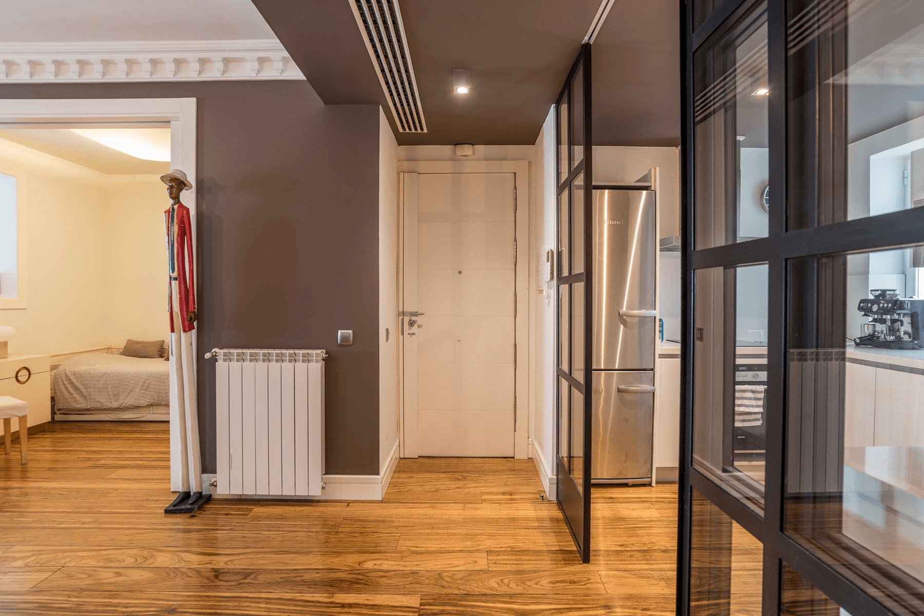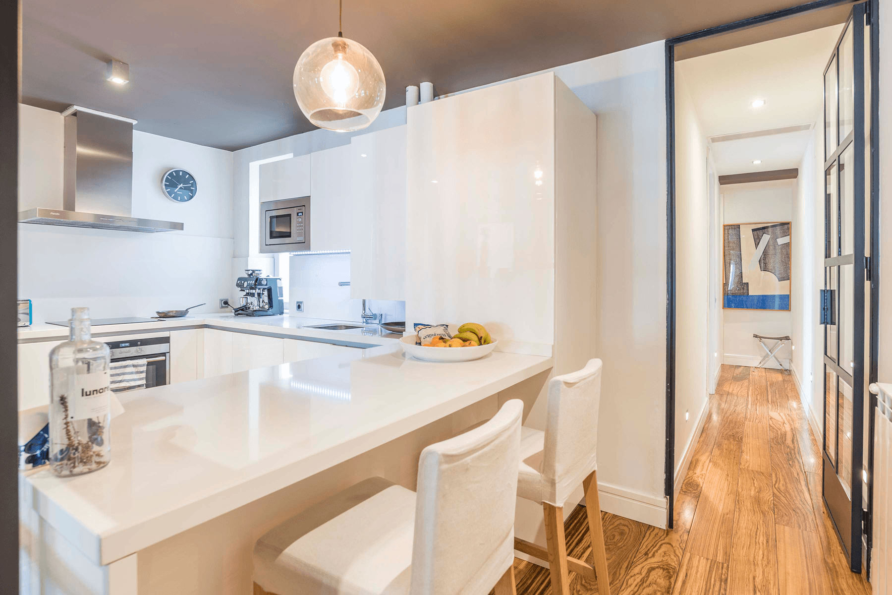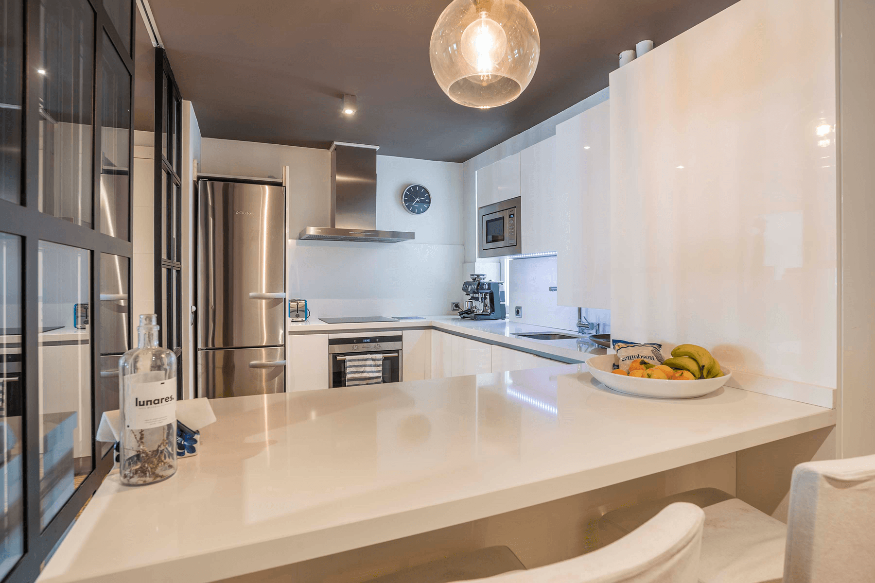 The entrance area stands out for its brightness, thanks to the balconies and the bay window that allow enjoying clear views. The integrated kitchen is fully equipped with high-end appliances. Read more