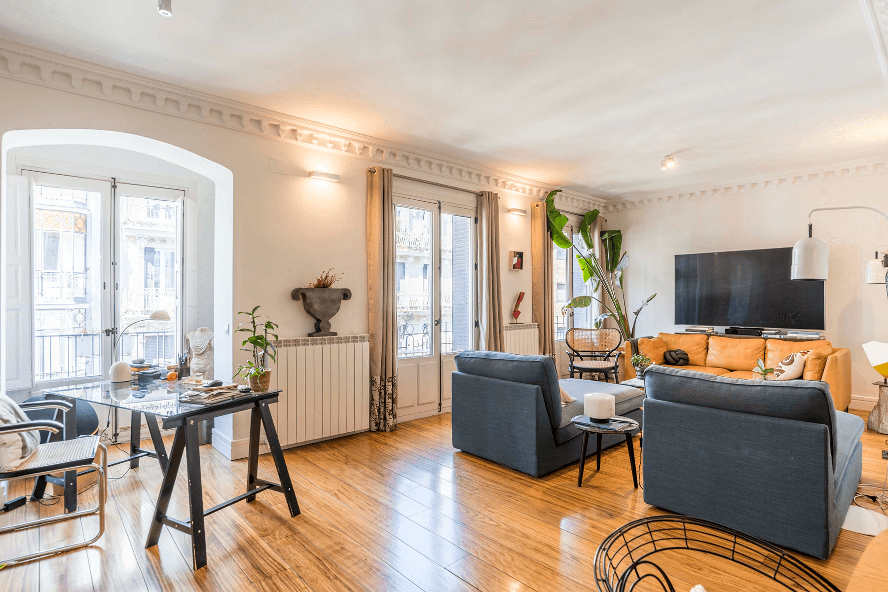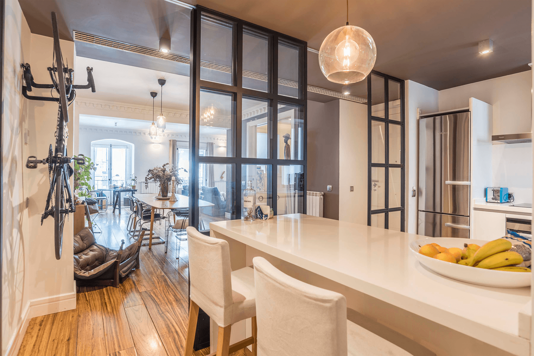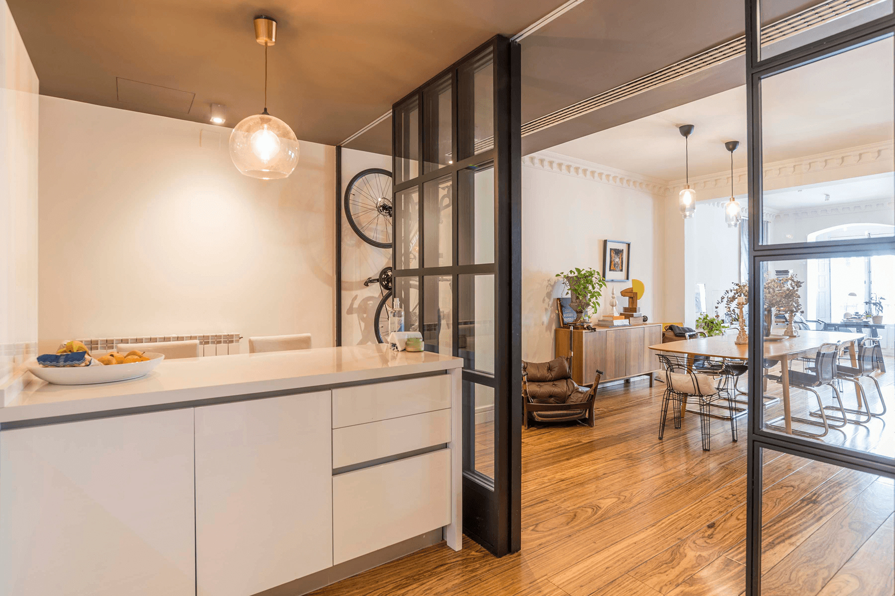 The entrance area stands out for its brightness, thanks to the balconies and the bay window that allow enjoying clear views. The integrated kitchen is fully equipped with high-end appliances. Read more