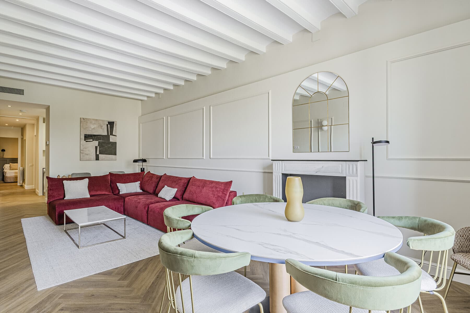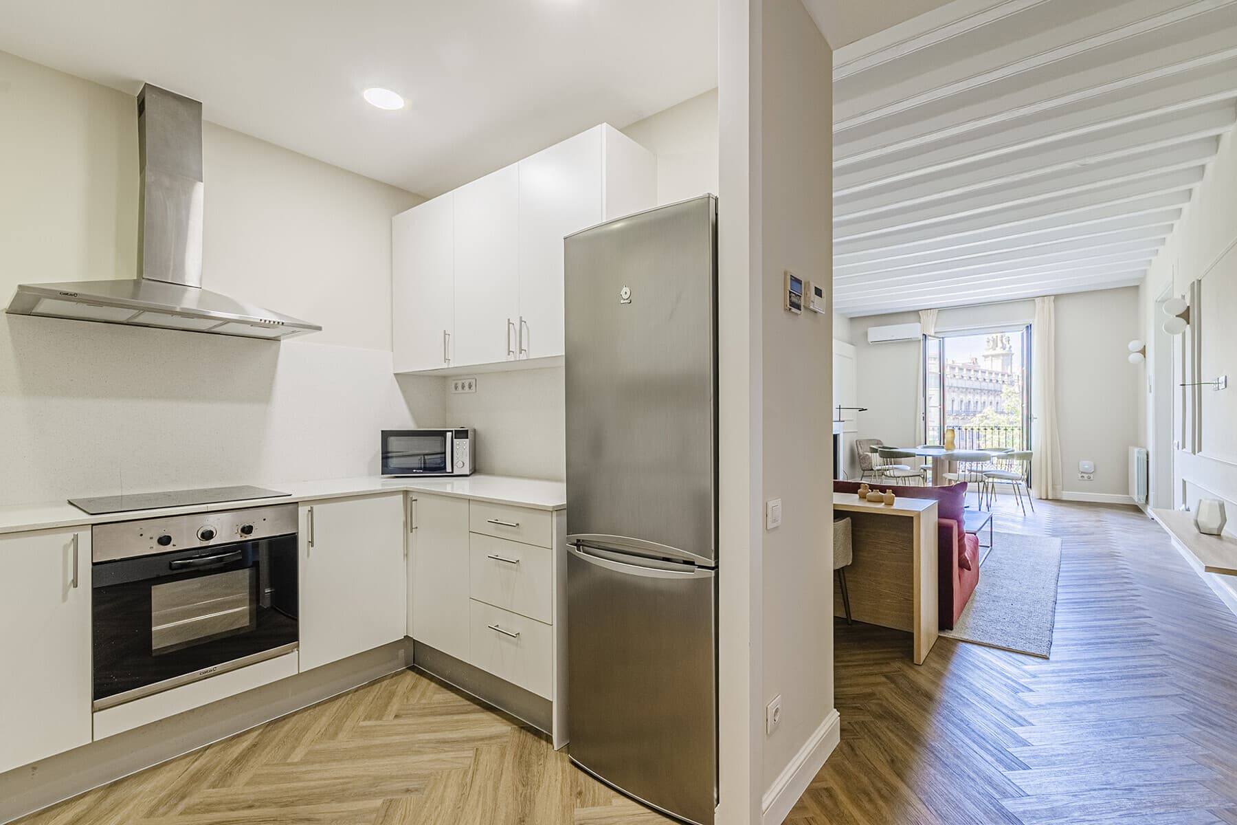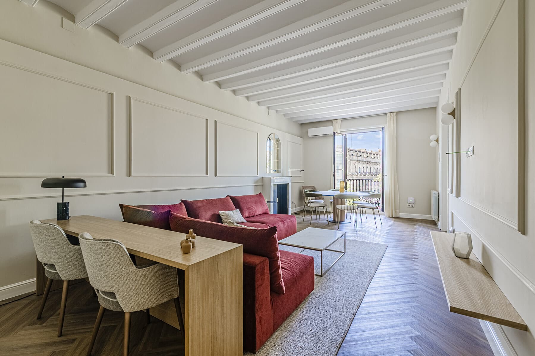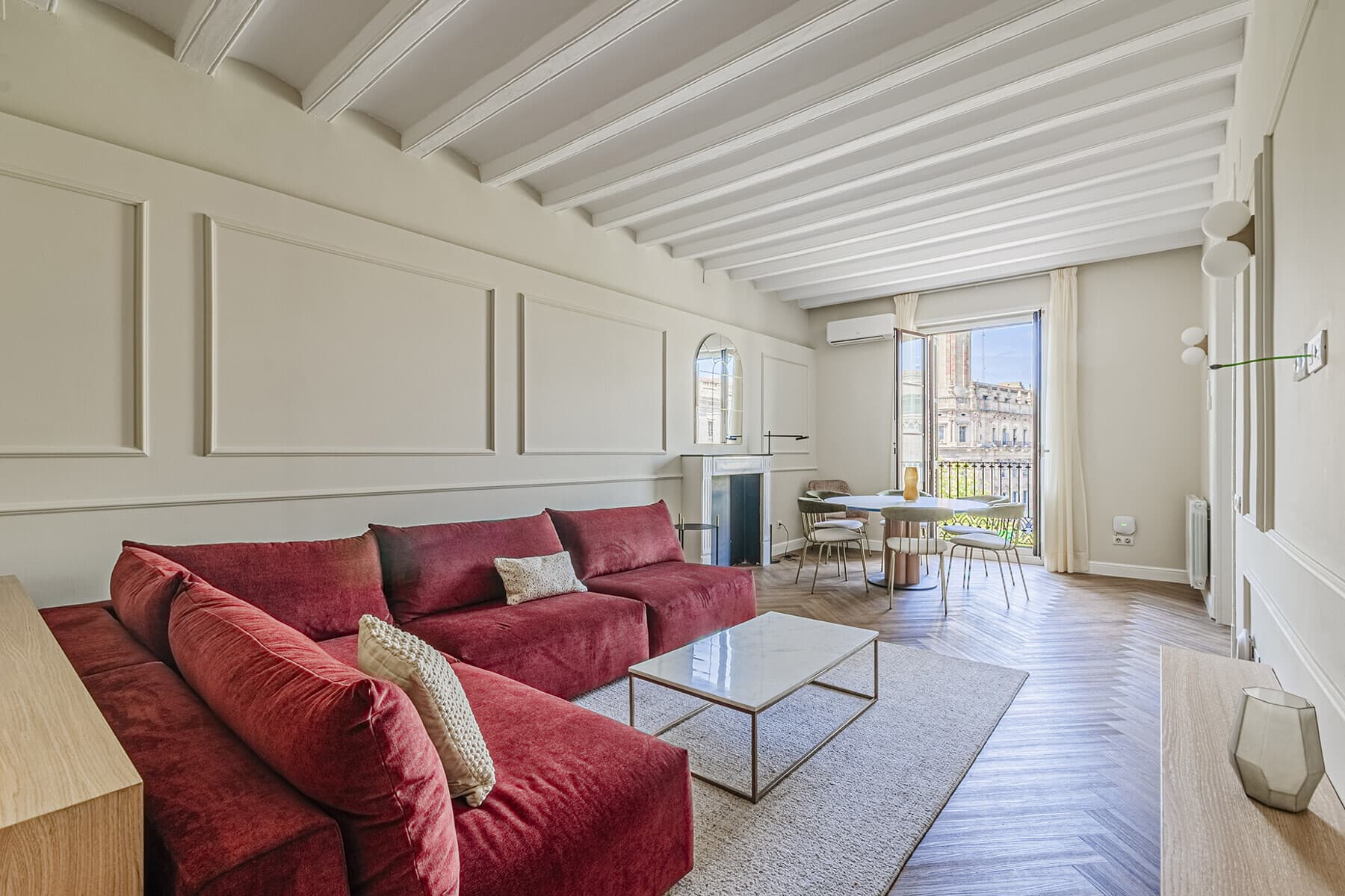 Fabulous and bright apartment of 106 m2 with 3 double bedrooms and 2 bathrooms near Port Vell. Upon entering the property you can appreciate the bright living - dining room with Catalan vaulted ceilings and large balcony overlooking the elegant estates of Via Laietana.