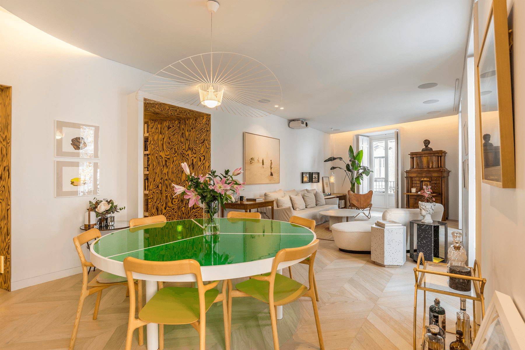 Located on the second floor of a majestic building in classic style, this exceptional residence embodies timeless elegance and contemporary sophistication. With nearly 300 m², it has been completely reinterpreted by a prestigious design studio, achieving an impeccable balance between architectural heritage and modernity.