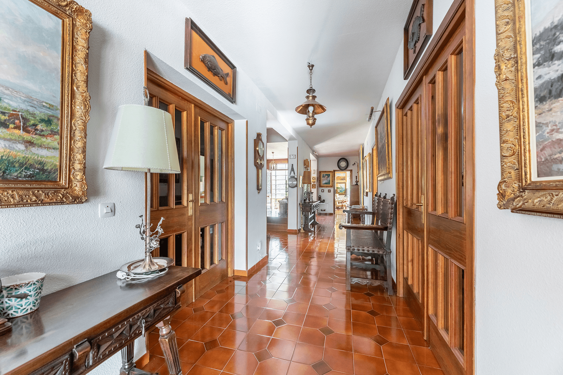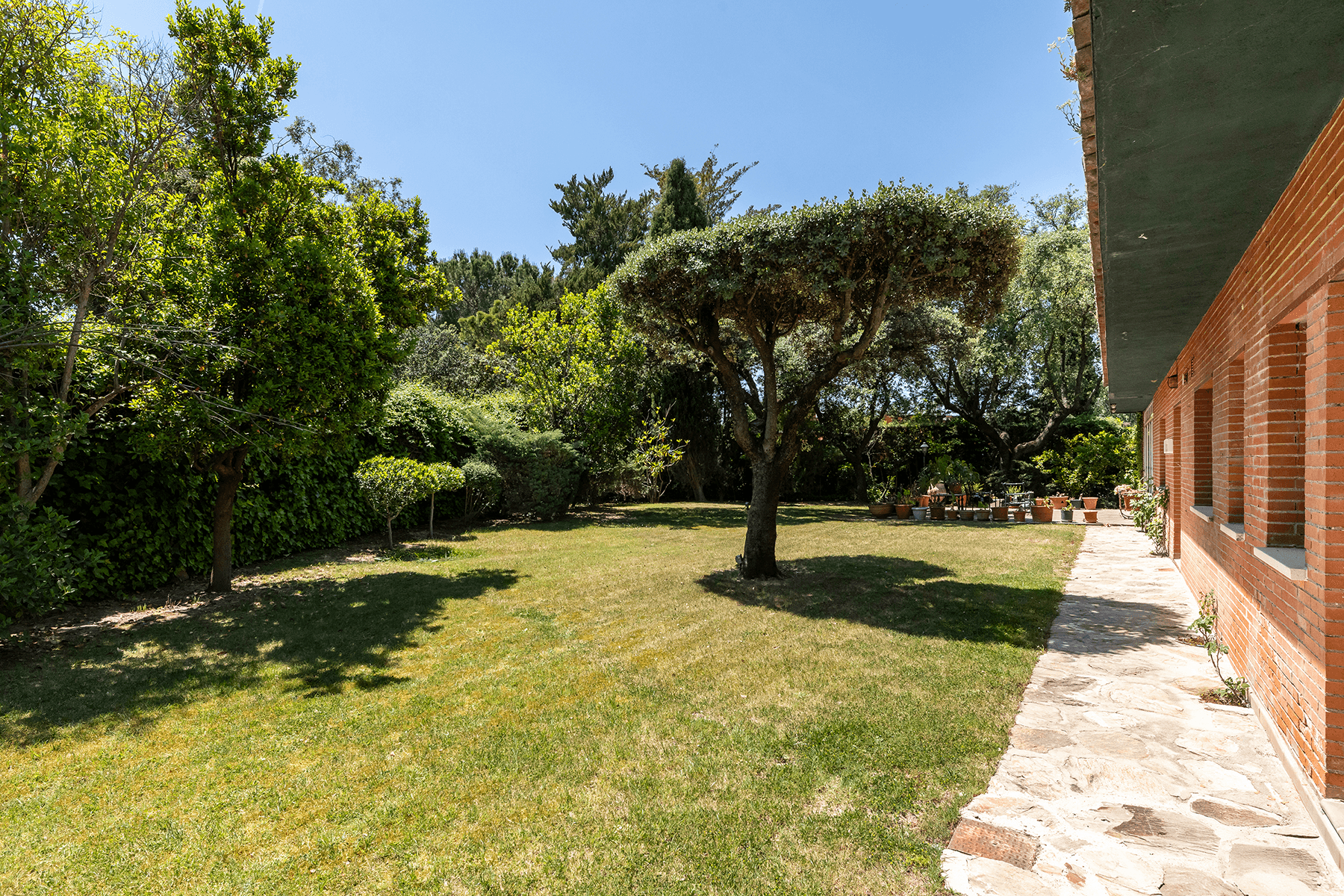 Distributed over three floors, the house offers spacious and functional spaces. On the main floor there is an entrance hall with glazed access to the garage, a day room, a guest toilet, a renovated kitchen with integrated dining area, and a separate laundry room. The main living room of 80 m², a conservatory living room, and a guest room with full bathroom all have direct access to the garden. On the first floor there are two main bedrooms with private living room, dressing room, and en-suite bathroom, as well as two other bedrooms, a full bathroom, and a bright library. The basement houses a large garage with capacity for several vehicles and a laundry area. Read more