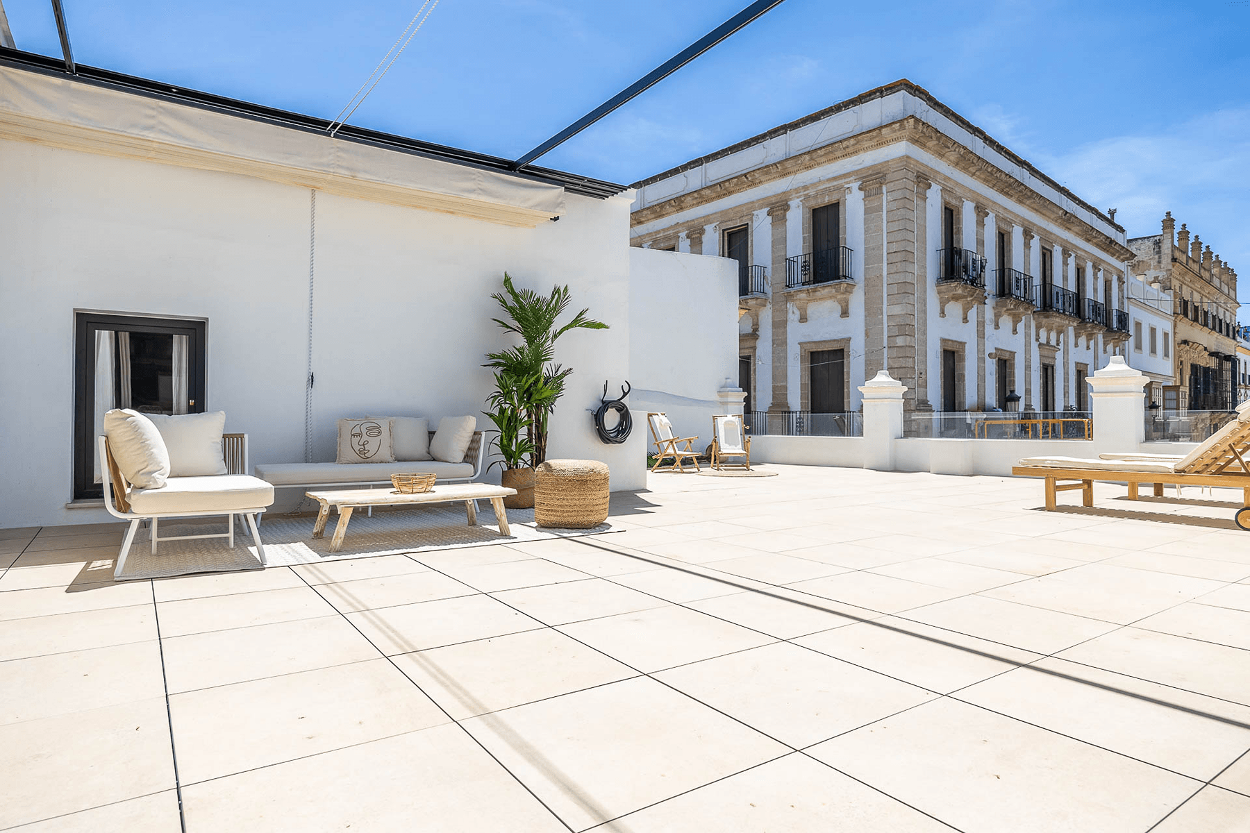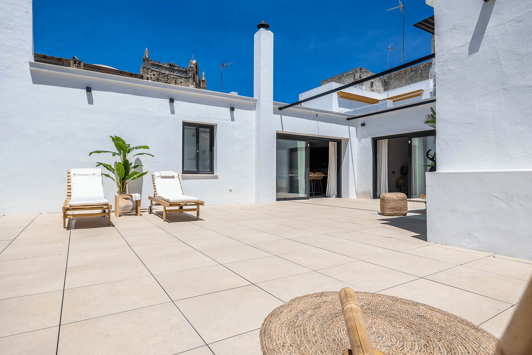 Spectacular detached house from 1890, newly renovated and overlooking Plaza de España. It has a built area of 230 square meters surrounding an 87-square-meter terrace, renovated in 2022 with top-quality materials.