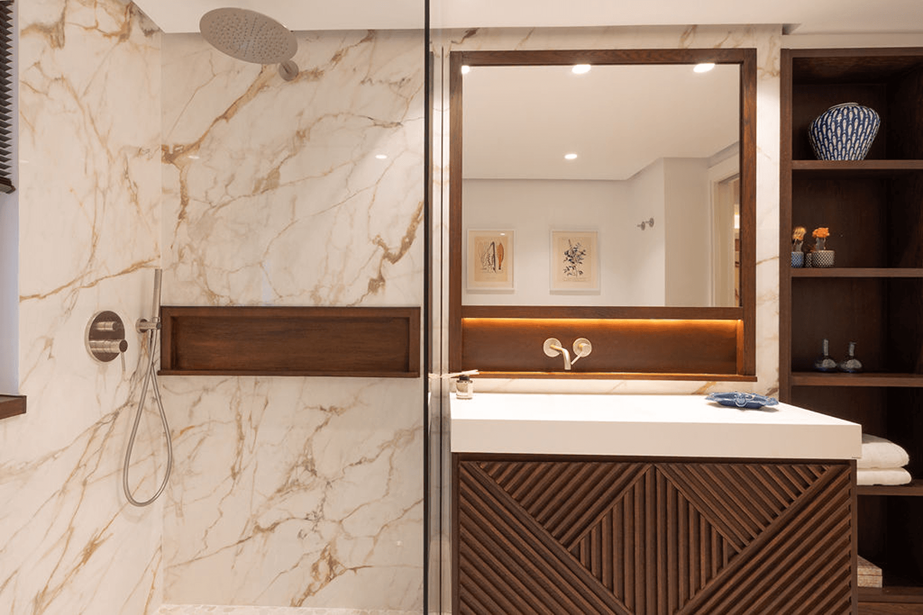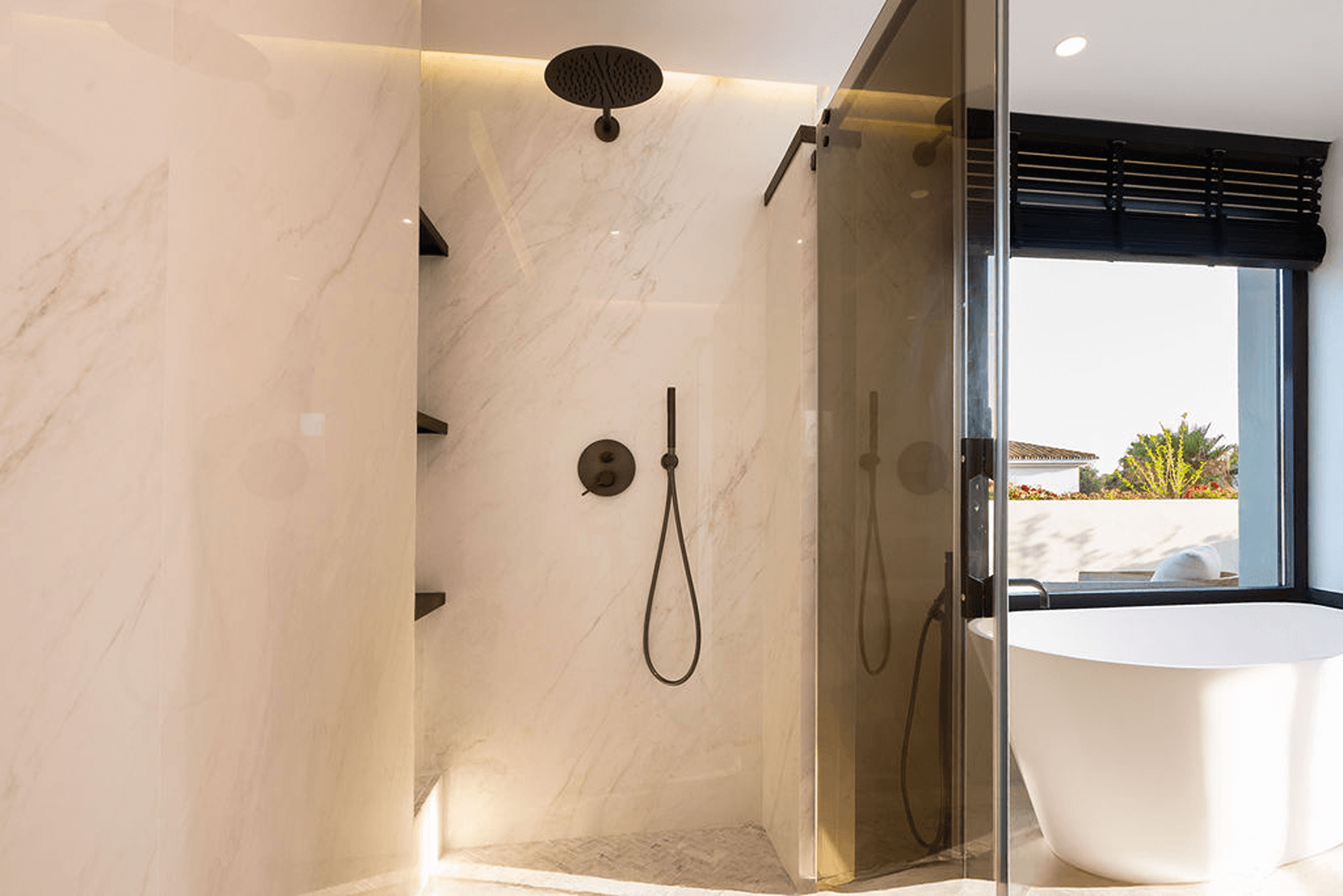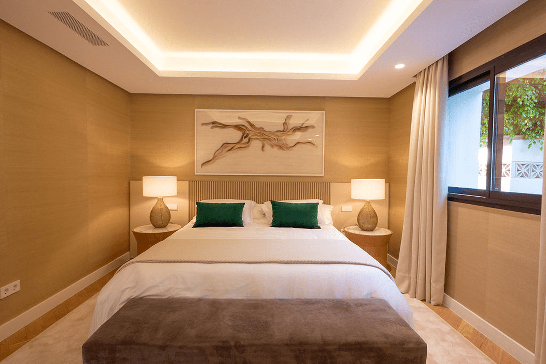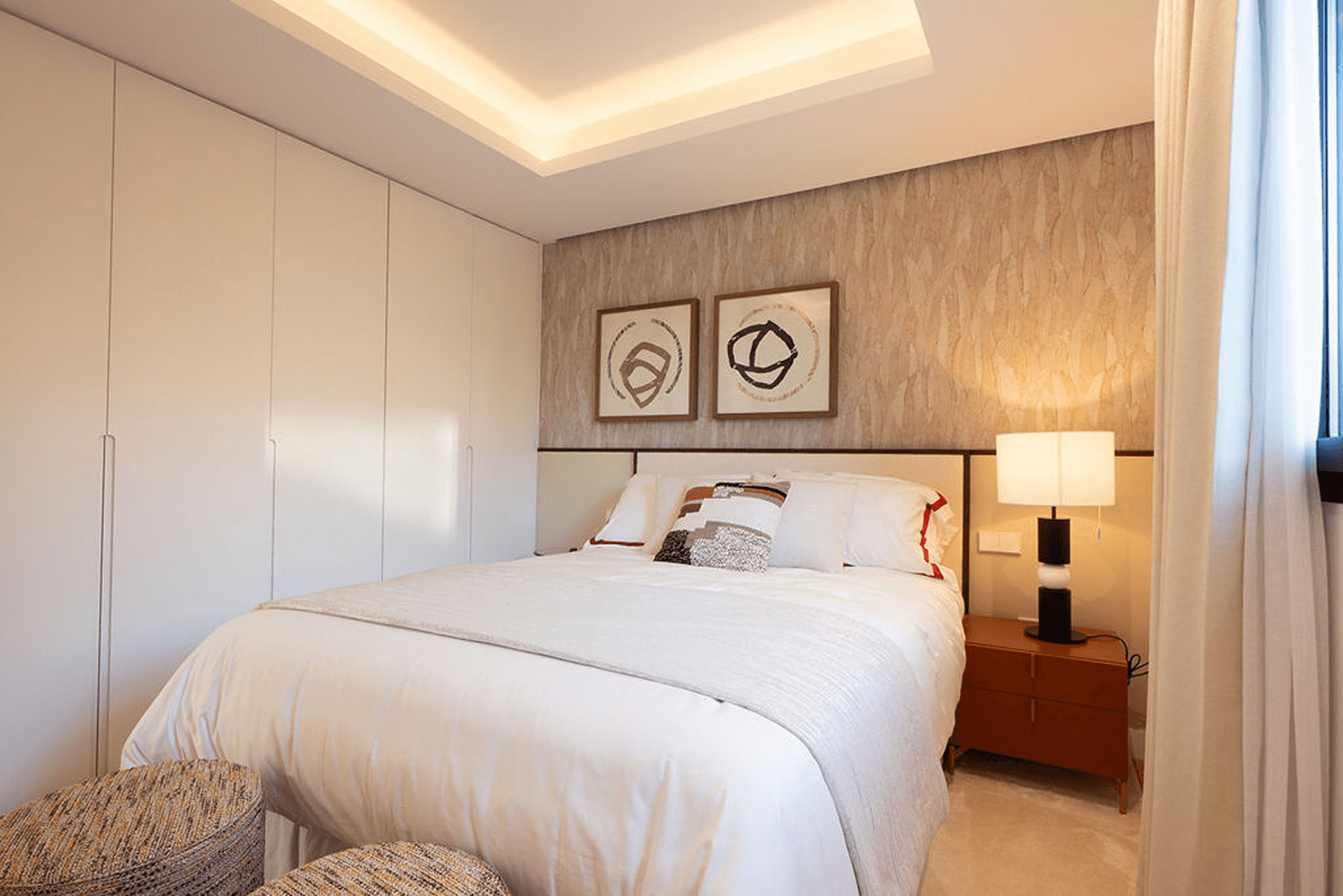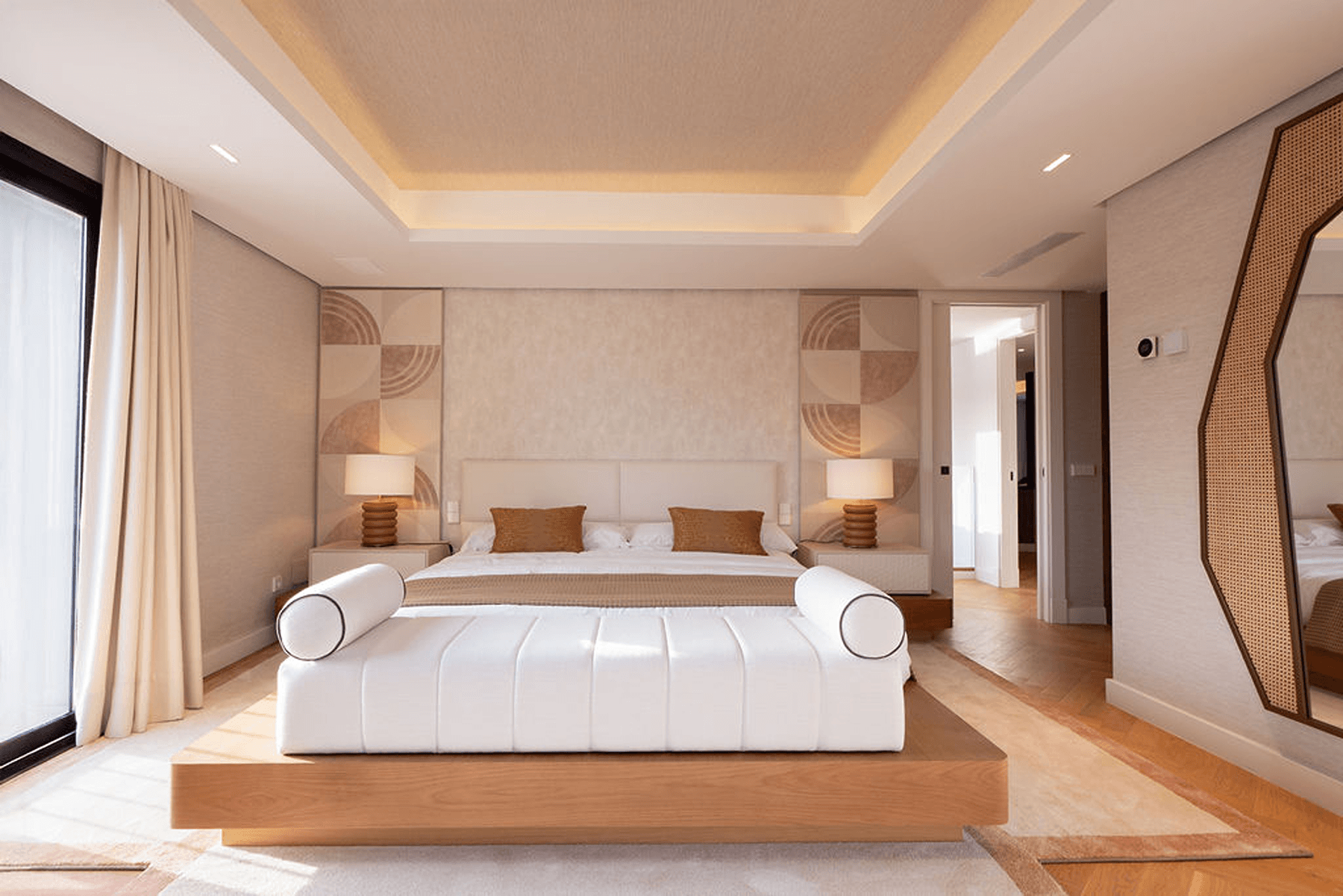 Just 300 meters from the beach, this contemporary villa in Casasola combines architectural elegance with coastal living. Located on a 1,050 m² plot with 560 m² built, the property offers six bedrooms, including a master suite with a dressing room, five bathrooms, a study/office, guest and staff rooms, and multiple living spaces. The interiors, designed by Pedro Peña, stand out for the use of refined materials, beamed ceilings, and an open plan, centered around a Siematic kitchen with Bosch appliances, breakfast bar, and central island.