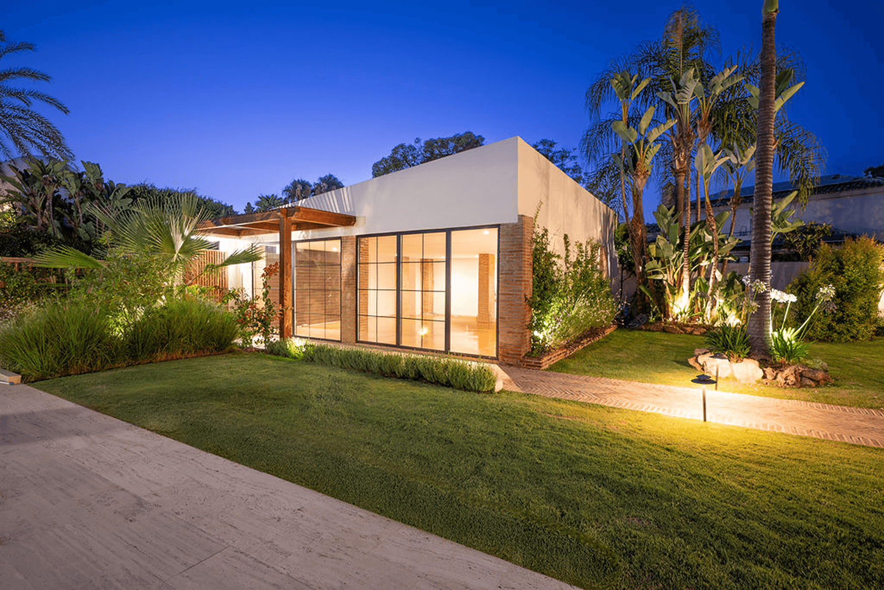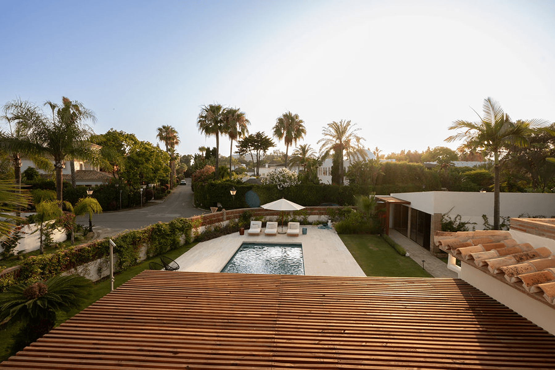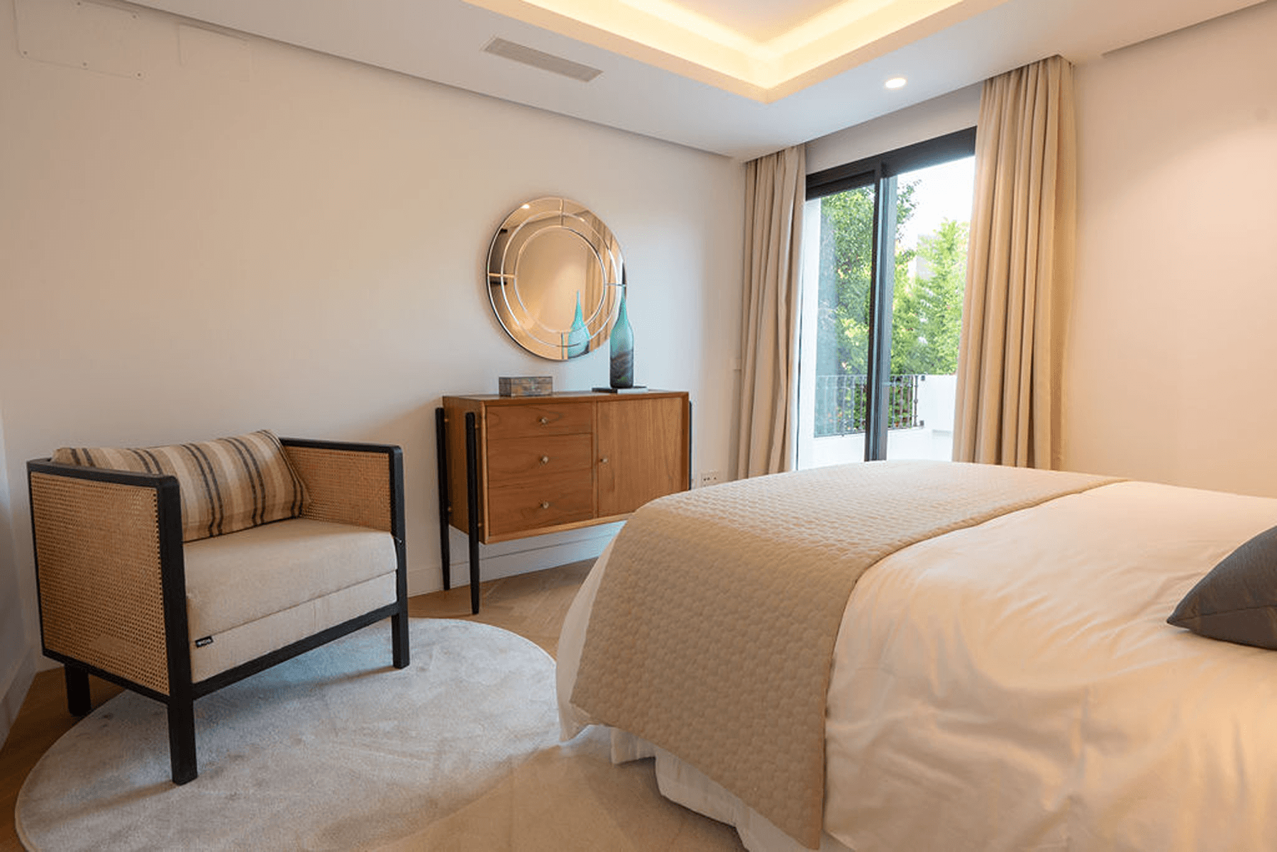 Designed for comfort and functionality, the house features solar energy and underfloor heating, central and split air conditioning, and high-tech wiring throughout. The outdoor spaces are designed for entertainment, with a solar-heated swimming pool, outdoor kitchen and barbecue area, chill-out areas, and a beautiful private garden. With a covered garage for two cars, laundry and storage rooms, and proximity to golf, mountains, and the beach, this furnished home represents the modern lifestyle of Marbella.