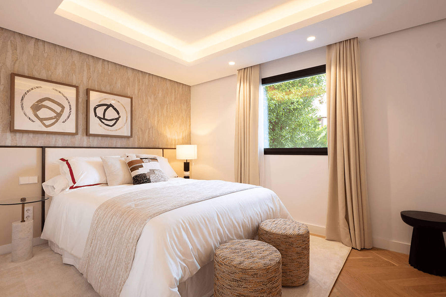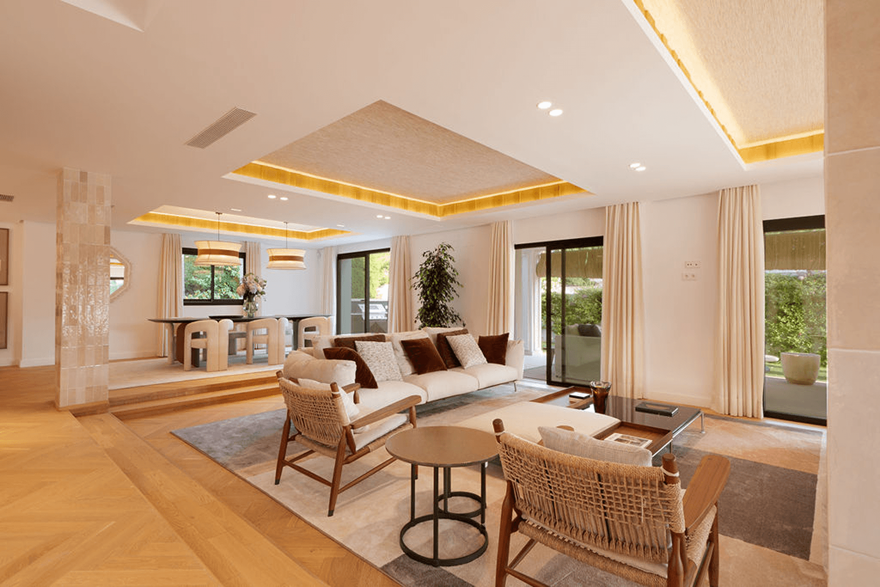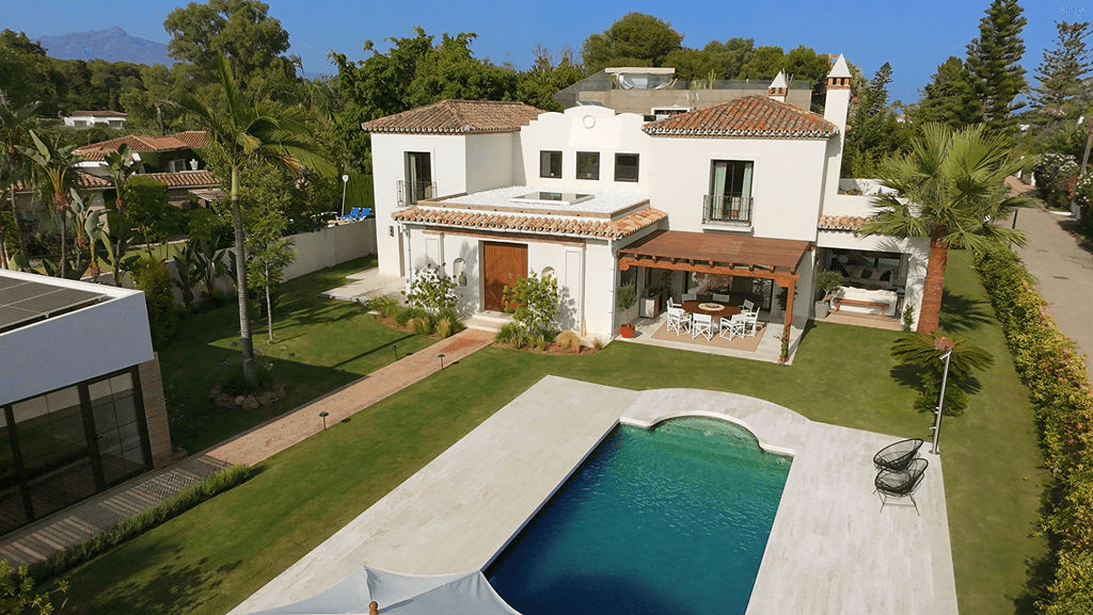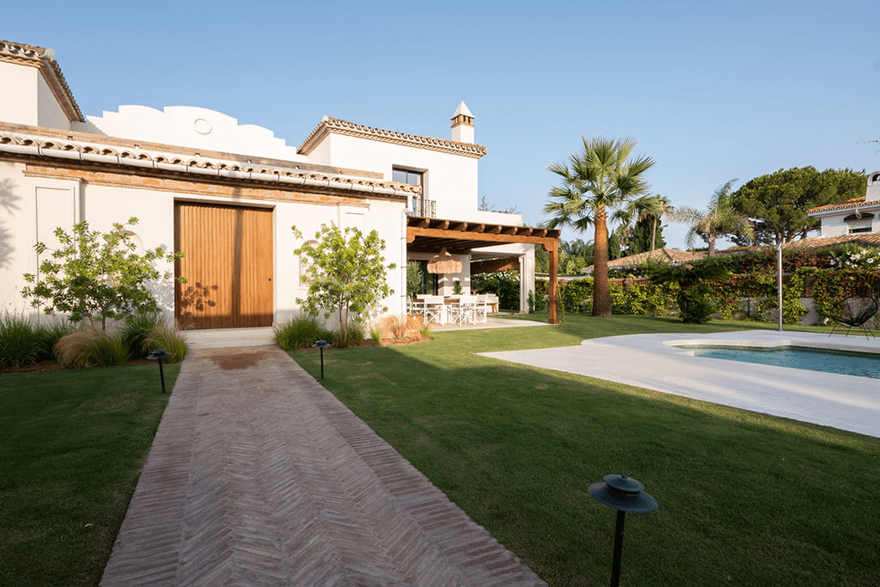 Designed for comfort and functionality, the house features solar energy and underfloor heating, central and split air conditioning, and high-tech wiring throughout. The outdoor spaces are designed for entertainment, with a solar-heated swimming pool, outdoor kitchen and barbecue area, chill-out areas, and a beautiful private garden. With a covered garage for two cars, laundry and storage rooms, and proximity to golf, mountains, and the beach, this furnished home represents the modern lifestyle of Marbella.