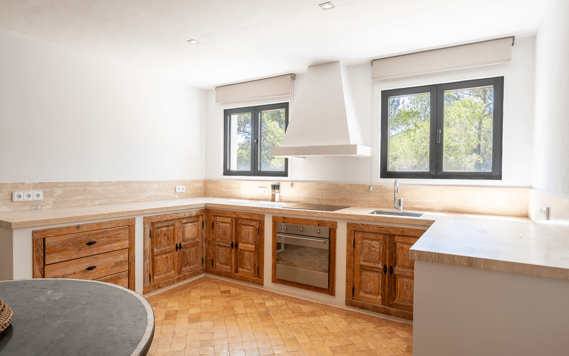 The main house features four en-suite bedrooms, while a separate guest apartment adds two additional suites with private access, ideal for hosting friends, family, or creating a home office or wellness studio. The bright living room with fireplace opens onto a spacious terrace with outdoor kitchen and barbecue, perfect for al fresco dining. A 15x5 meter pool, a rooftop terrace with panoramic views, and a three-car garage complete this peaceful retreat. Read more