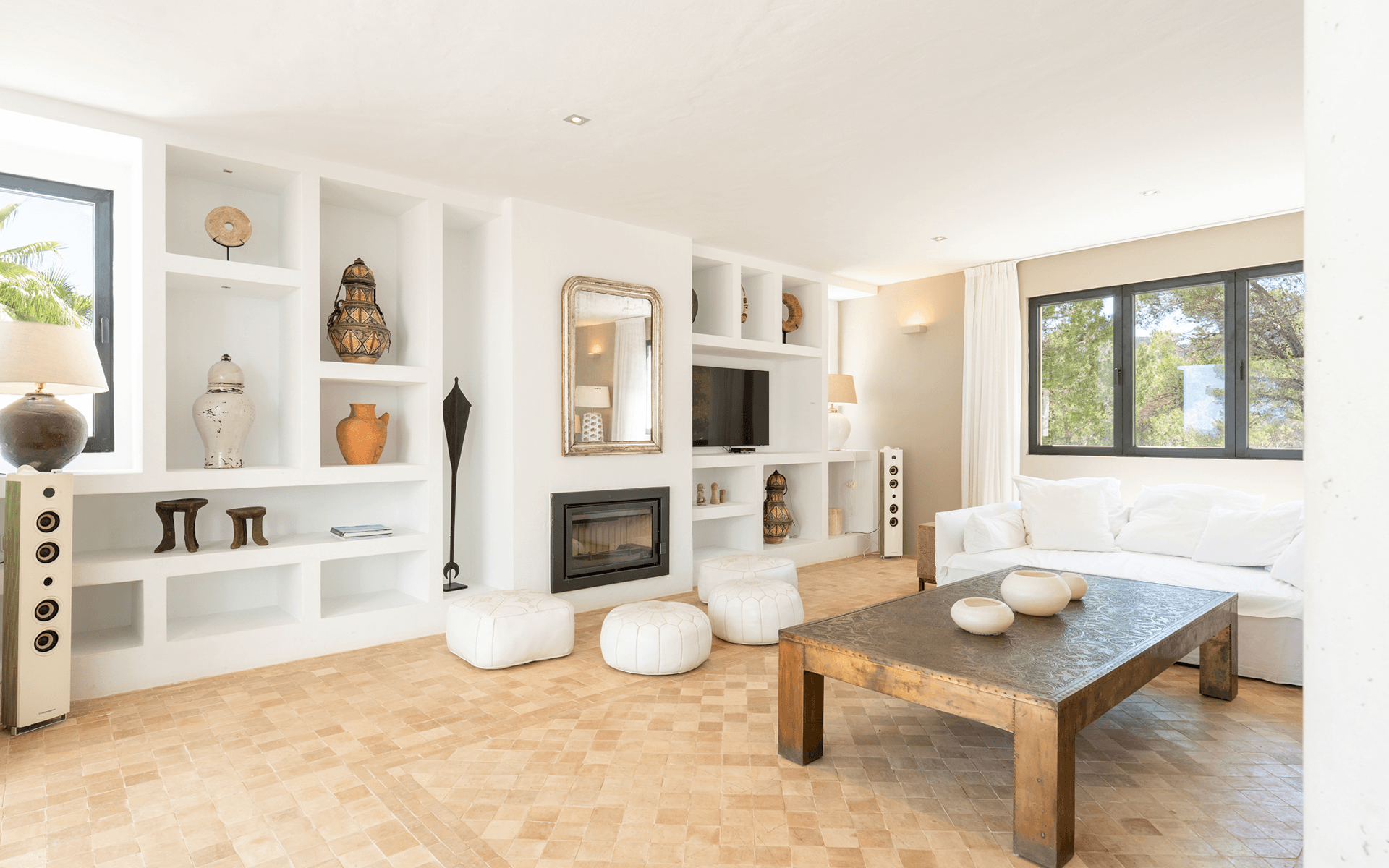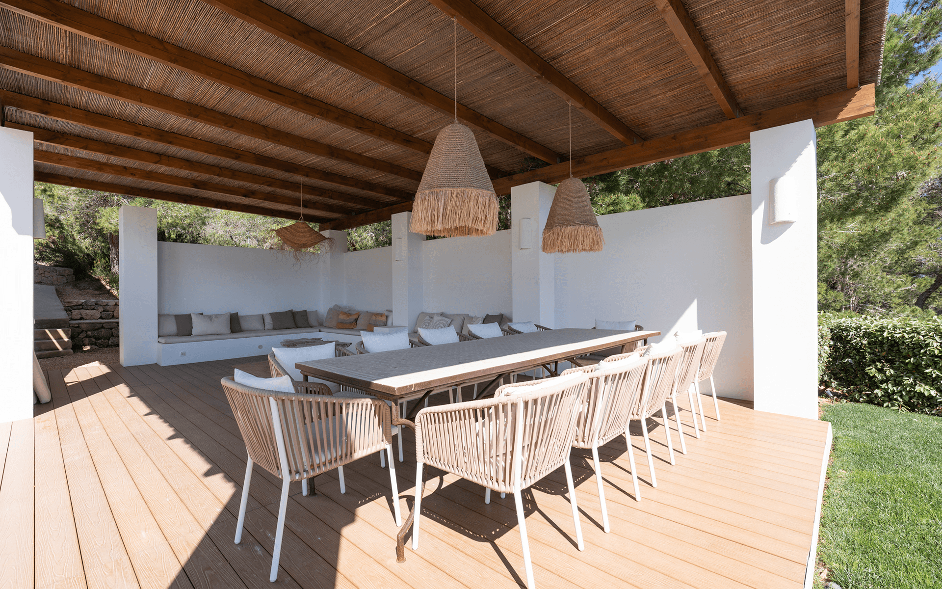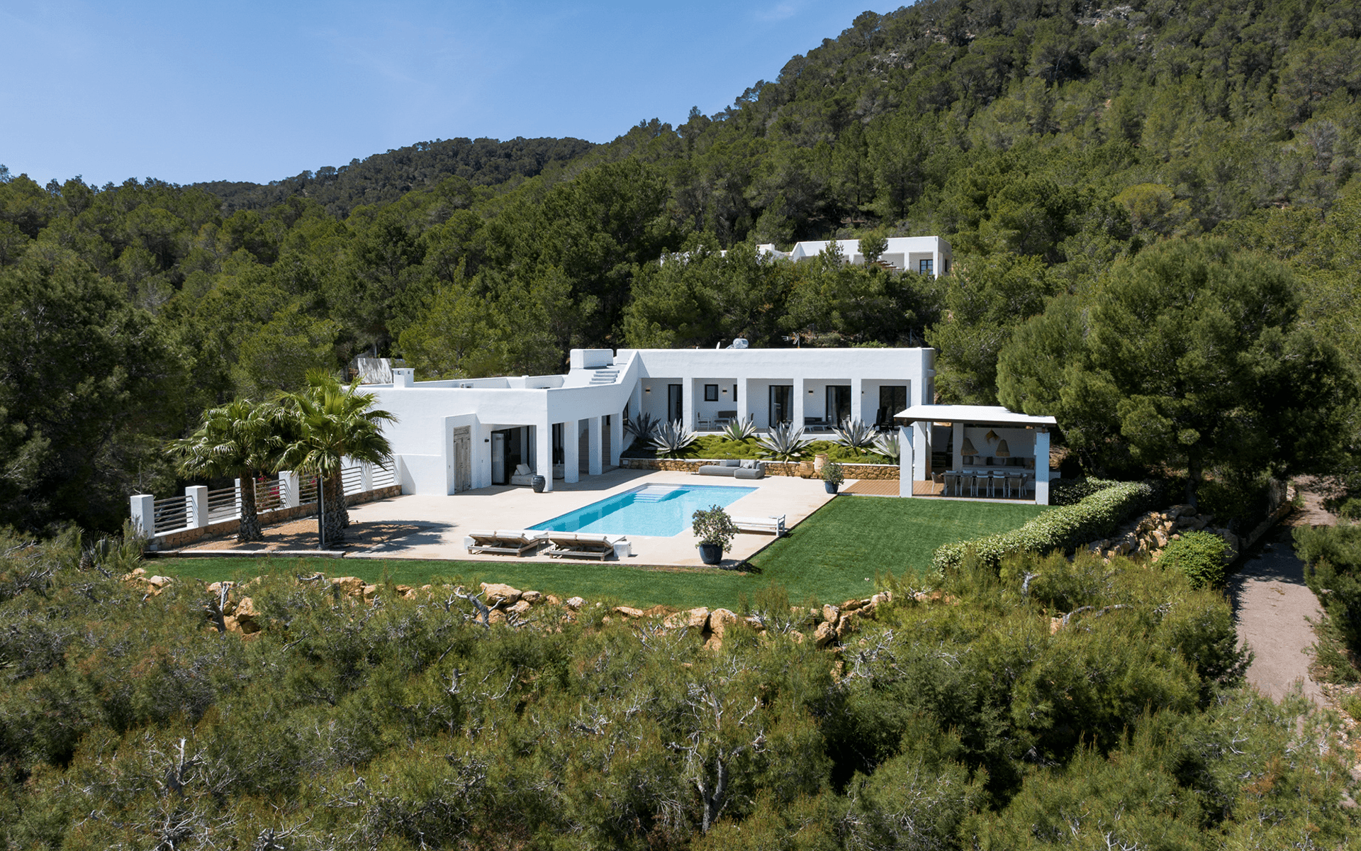 Located near the charming village of Sant Josep, this beautifully redesigned villa combines modern elegance with authentic Mediterranean tranquility. Situated on a 10,000 m² plot with 543 m² of living space, the property offers expansive views of the mountains, lush gardens, and generous outdoor areas designed for effortless island living.