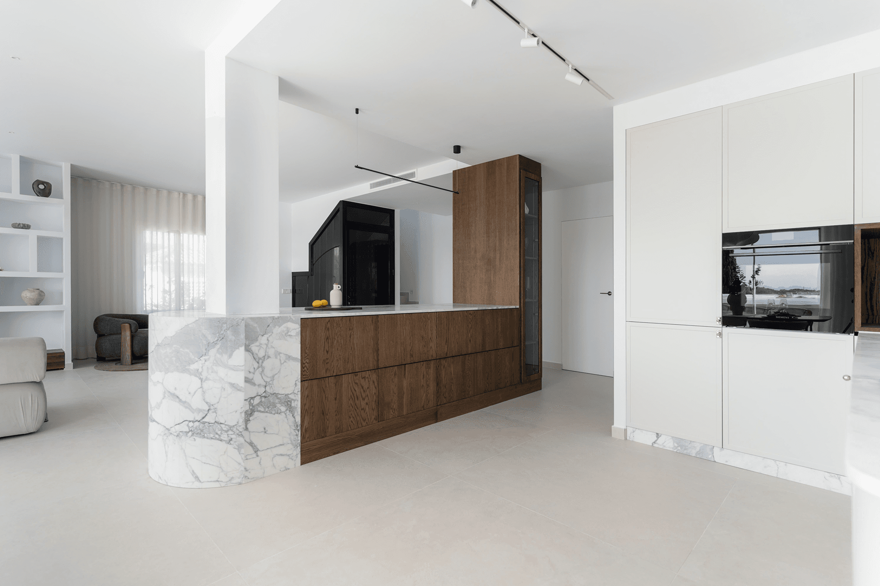 With a built area of approximately 245 m², the property stands out for its elegant architecture and its layout designed to maximize natural light. The spacious living room with integrated kitchen and dining area connects directly to a south-facing terrace, perfect for enjoying the Mediterranean climate and outdoor moments. In this outdoor area, there is a private pool and relaxation areas that invite tranquility and enjoyment of the sea views. Read more