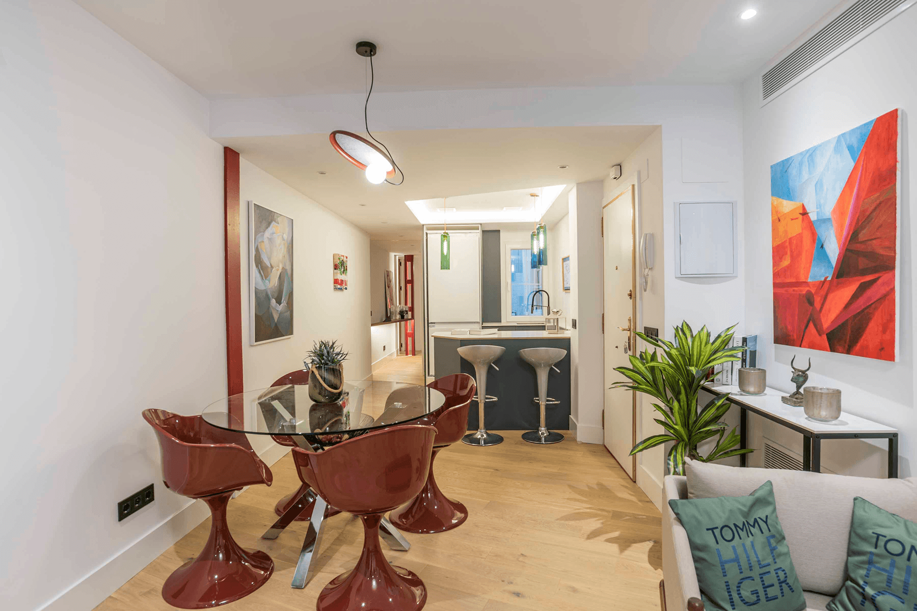 Discover this cozy residential apartment, located in the vibrant Centro district in Madrid. This property has a built surface area of 120 m², where natural light is the true protagonist thanks to its large windows overlooking the exterior.