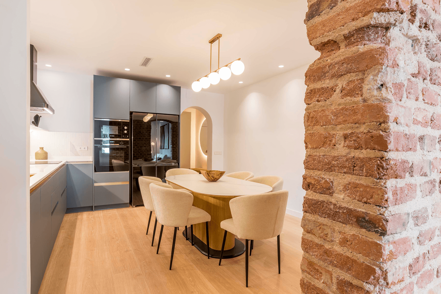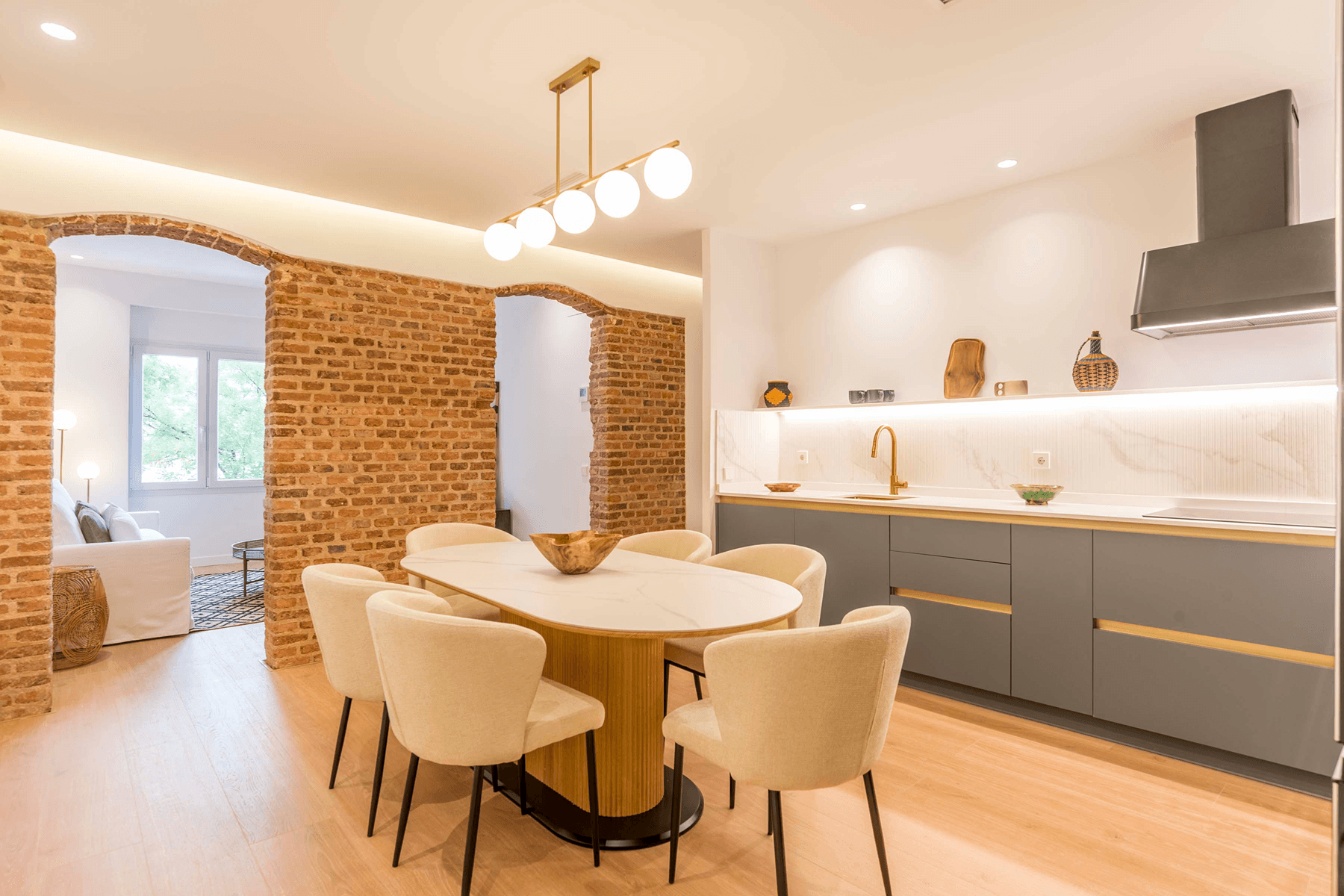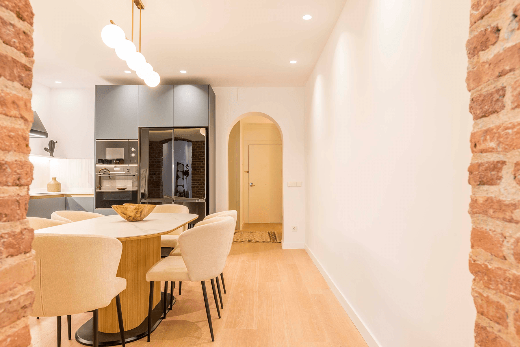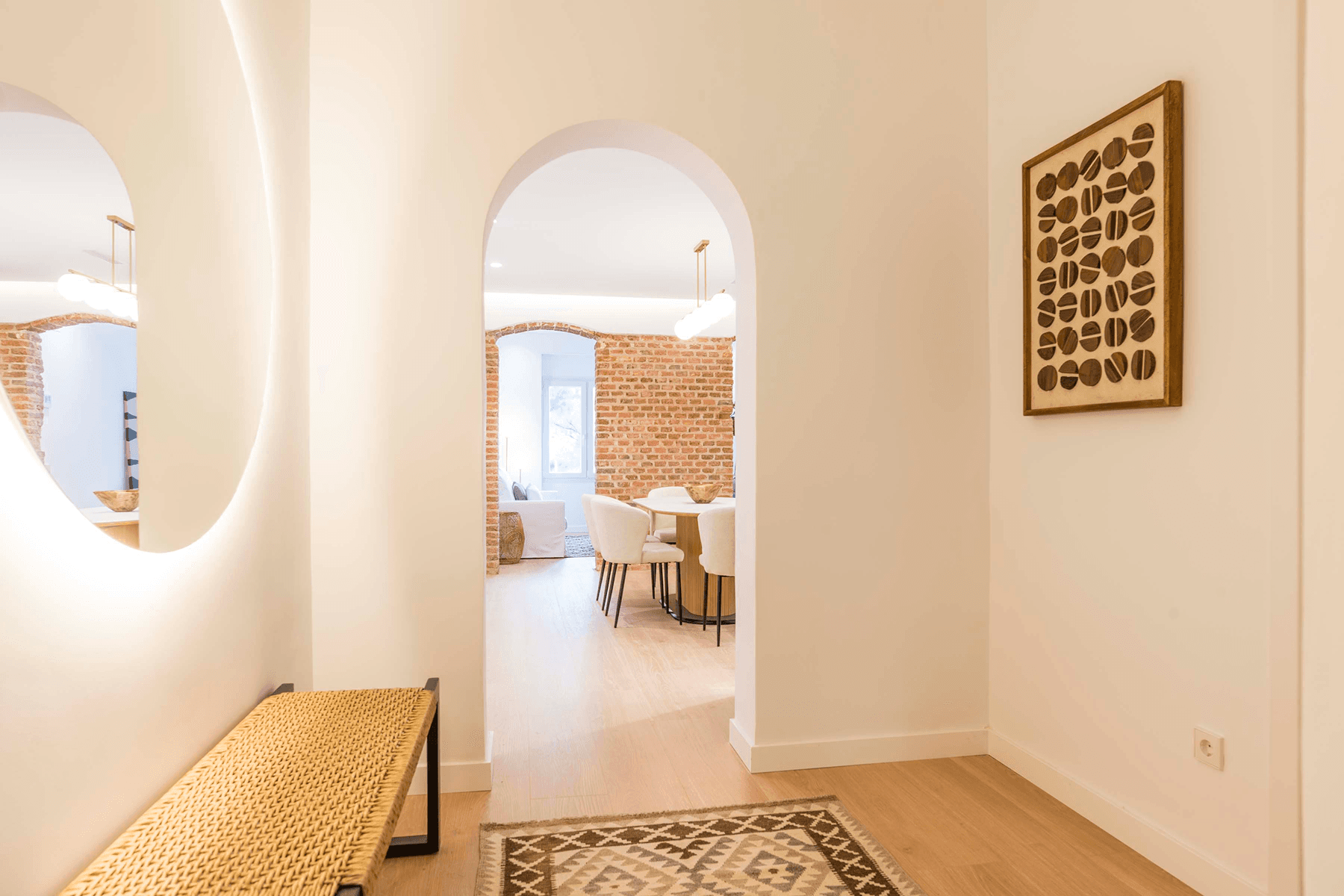 Located in the distinguished neighborhood of Ibiza, just a few steps from the iconic Retiro park, the property is situated on a renowned boulevard, within a building of classic architecture. The space distribution has been optimized to efficiently make use of every square meter. Upon entering, we are welcomed by a spacious hallway adorned with original moldings and immaculate stucco. Next, a charming kitchen with a traditional style that evokes the essence of the English countryside and features a large dining area. Separated by exposed brick walls that add a contemporary touch, a bright living room with views of the boulevard can be found. The apartment offers two en-suite bedrooms; one with views of the street and another in a more secluded and quiet area, both with en-suite bathrooms. The other two bedrooms share a full bathroom, which can also be used as a guest bathroom. Read more