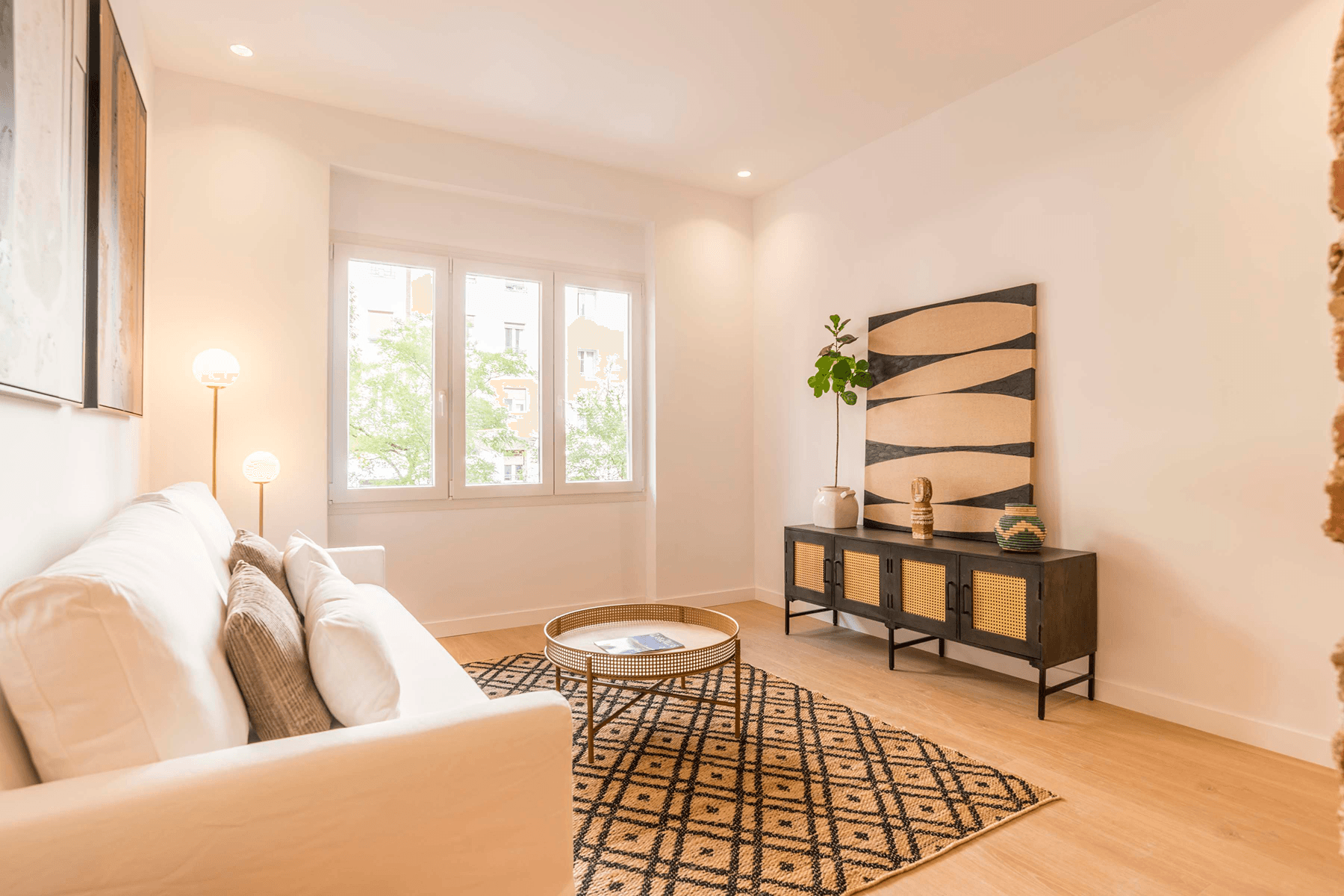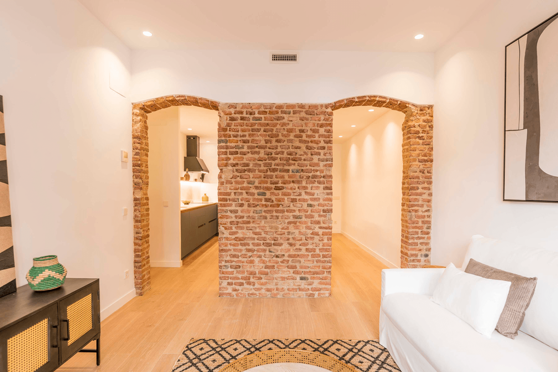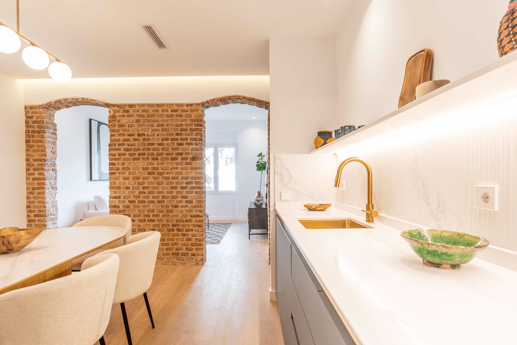 Located in the distinguished neighborhood of Ibiza, just a few steps from the iconic Retiro park, the property is situated on a renowned boulevard, within a building of classic architecture. The space distribution has been optimized to efficiently make use of every square meter. Upon entering, we are welcomed by a spacious hallway adorned with original moldings and immaculate stucco. Next, a charming kitchen with a traditional style that evokes the essence of the English countryside and features a large dining area. Separated by exposed brick walls that add a contemporary touch, a bright living room with views of the boulevard can be found. The apartment offers two en-suite bedrooms; one with views of the street and another in a more secluded and quiet area, both with en-suite bathrooms. The other two bedrooms share a full bathroom, which can also be used as a guest bathroom. Read more