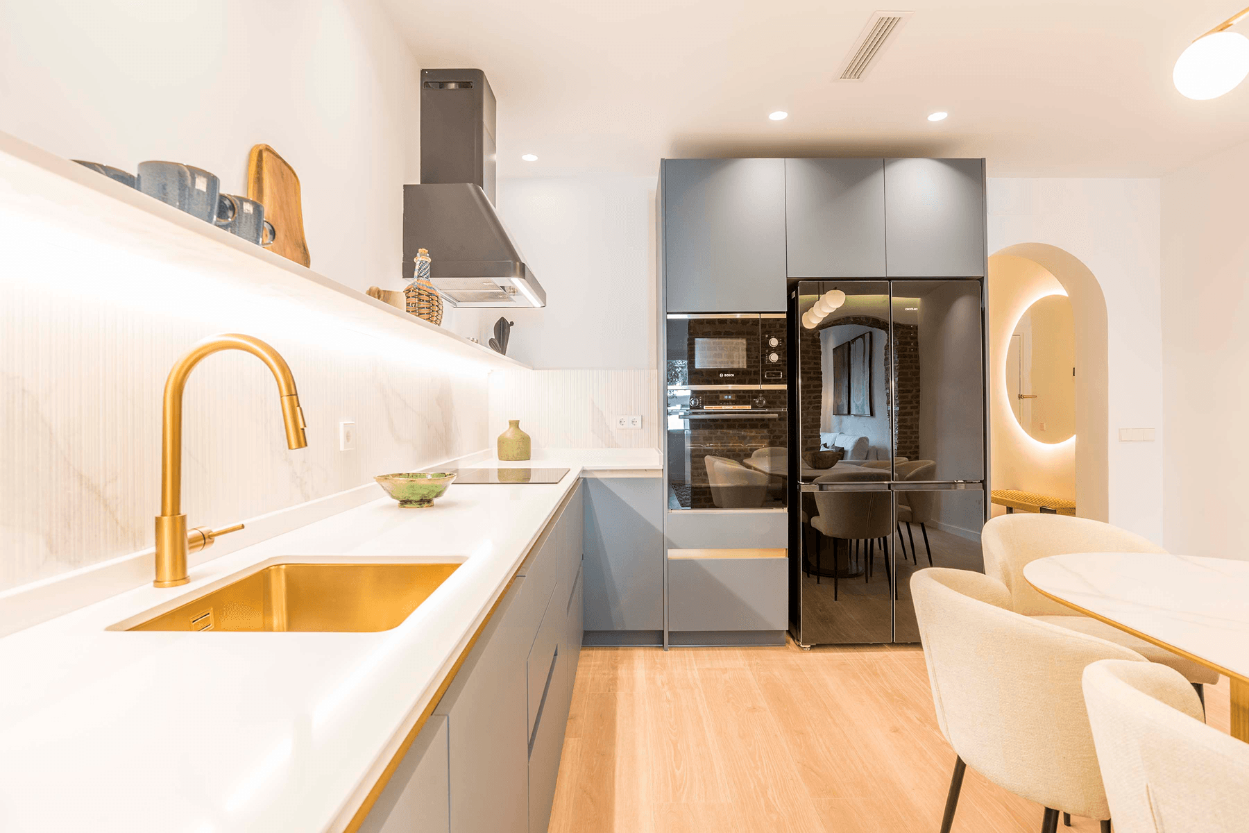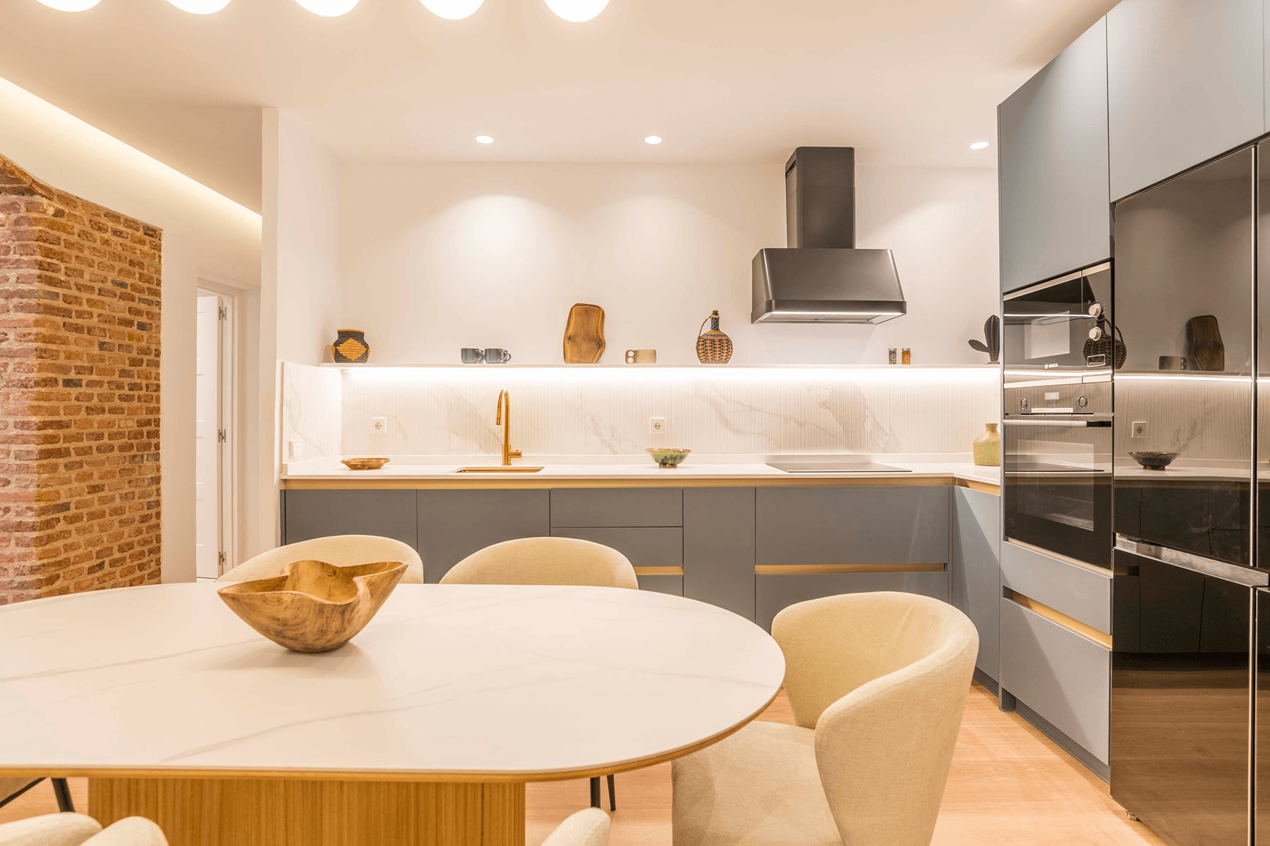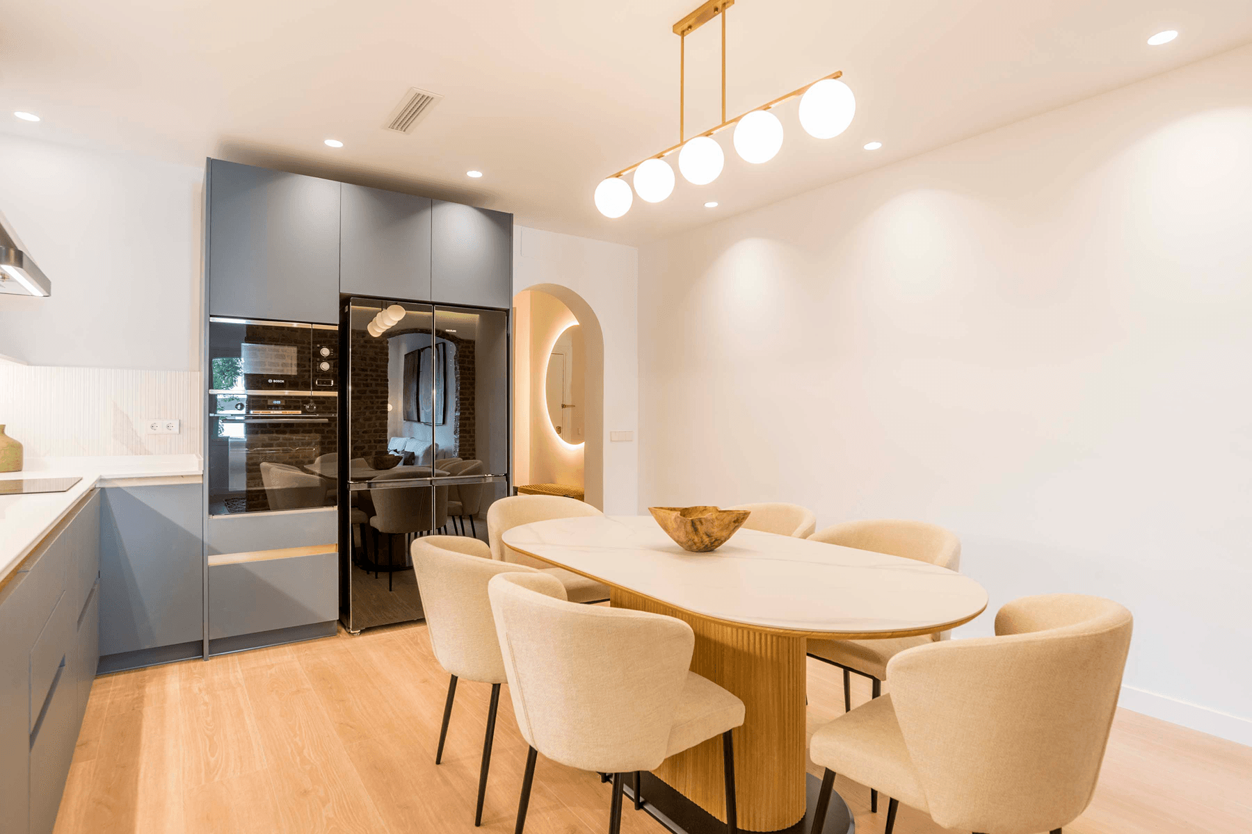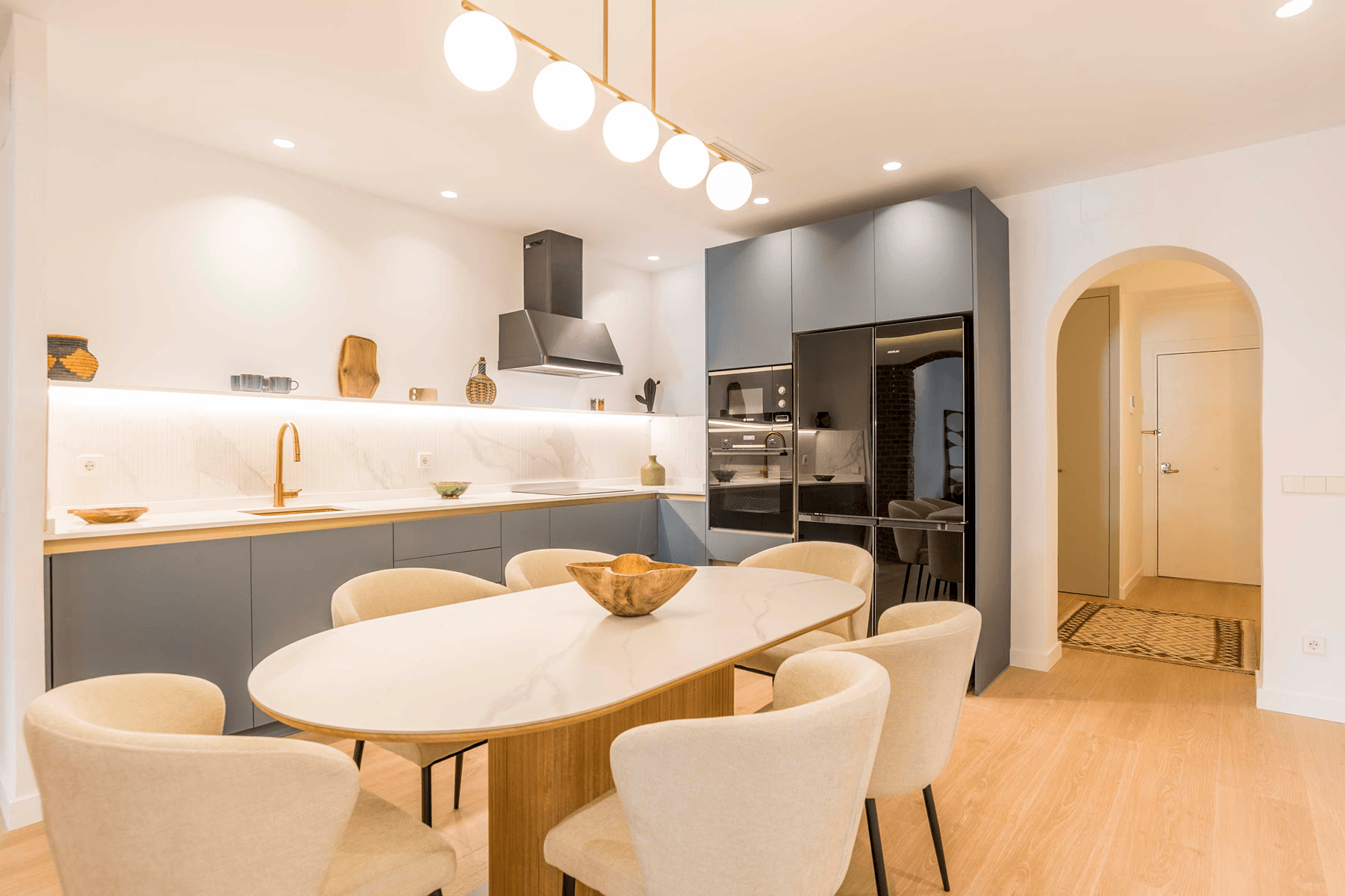 Located in the distinguished neighborhood of Ibiza, just a few steps from the iconic Retiro park, the property is situated on a renowned boulevard, within a building of classic architecture. The space distribution has been optimized to efficiently make use of every square meter. Upon entering, we are welcomed by a spacious hallway adorned with original moldings and immaculate stucco. Next, a charming kitchen with a traditional style that evokes the essence of the English countryside and features a large dining area. Separated by exposed brick walls that add a contemporary touch, a bright living room with views of the boulevard can be found. The apartment offers two en-suite bedrooms; one with views of the street and another in a more secluded and quiet area, both with en-suite bathrooms. The other two bedrooms share a full bathroom, which can also be used as a guest bathroom. Read more