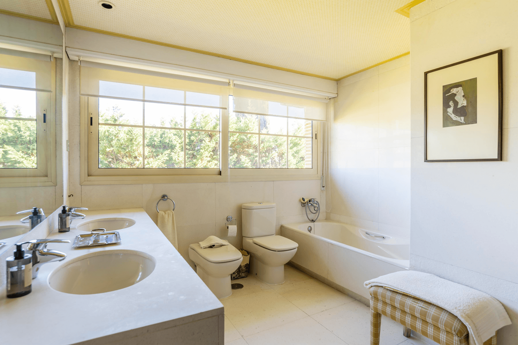 Surrounded by a garden of almost 3,000 m², the property features large green areas designed to enjoy tranquility and privacy. It has a swimming pool, a private paddle tennis court, and outdoor spaces perfect for relaxation and social life. The main residence integrates naturally with the surroundings thanks to its large windows that connect the living rooms with the garden, creating a feeling of brightness and harmony throughout the property. Read more