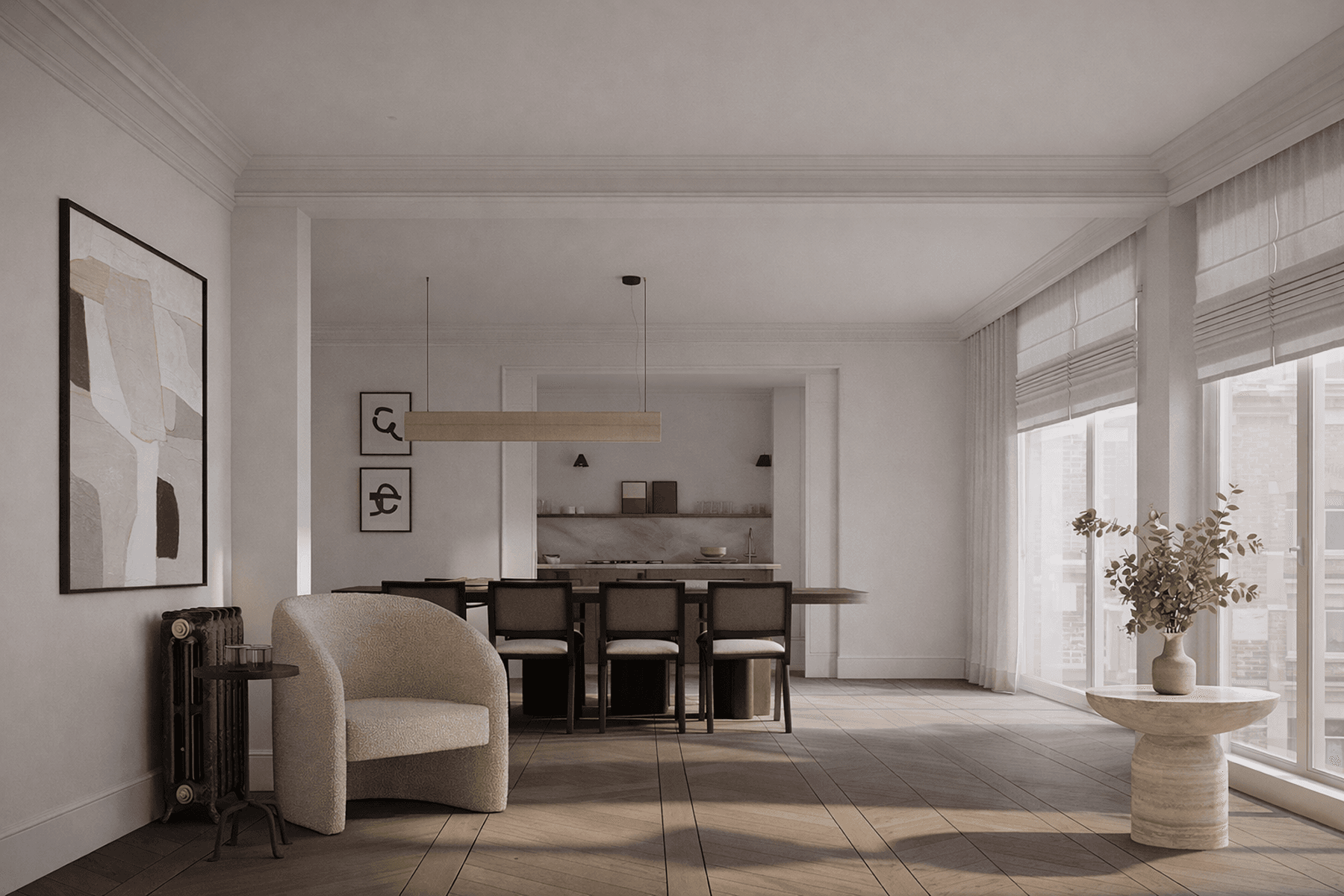 The interior has been designed to maximize comfort and style, featuring an open-plan kitchen with a central island and designer finishes, a laundry room, storage space, and an en-suite bathroom. Central heating and central air conditioning systems ensure a perfect environment all year round, while the south and west orientation guarantees abundant natural light. Read more