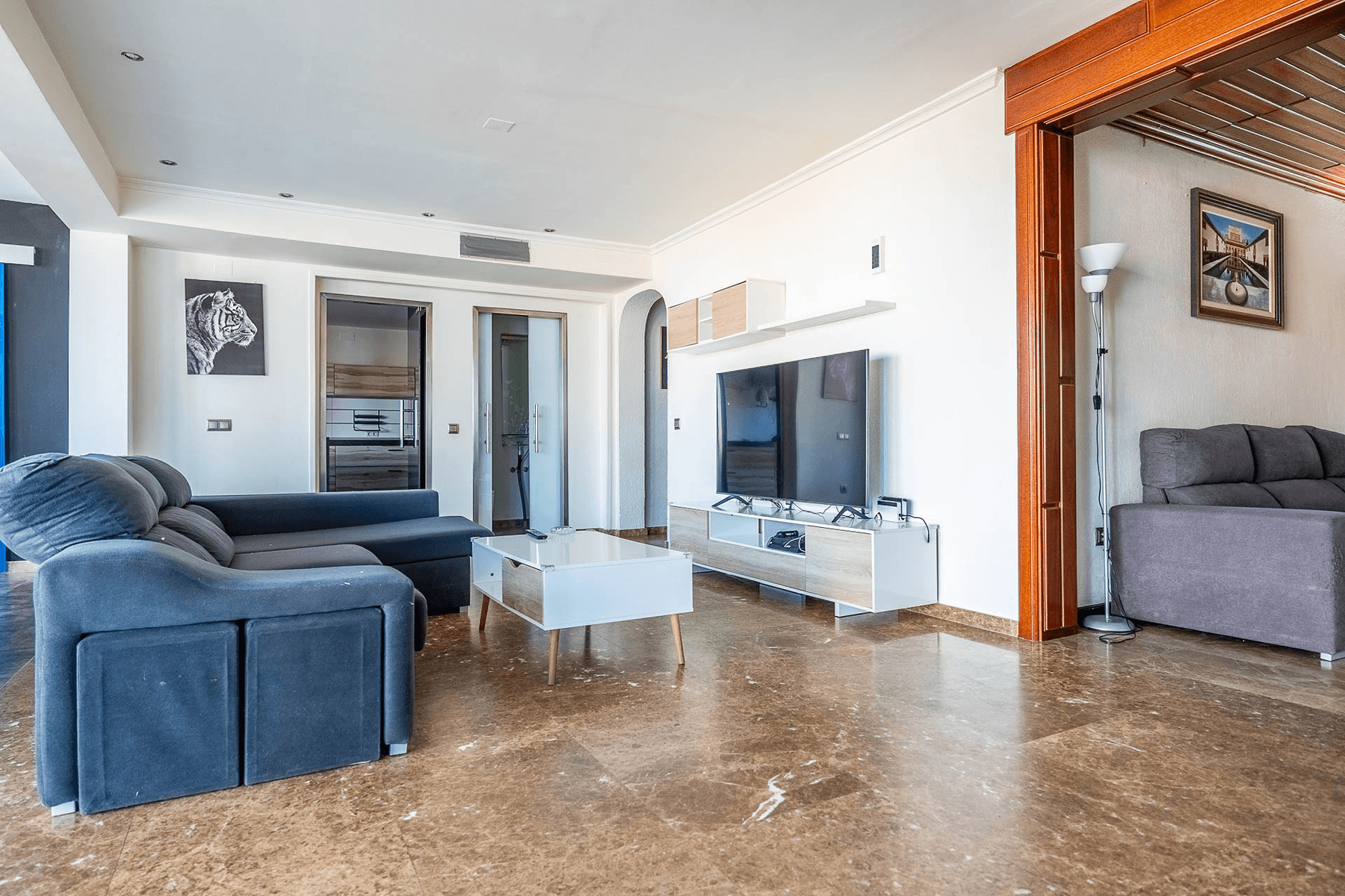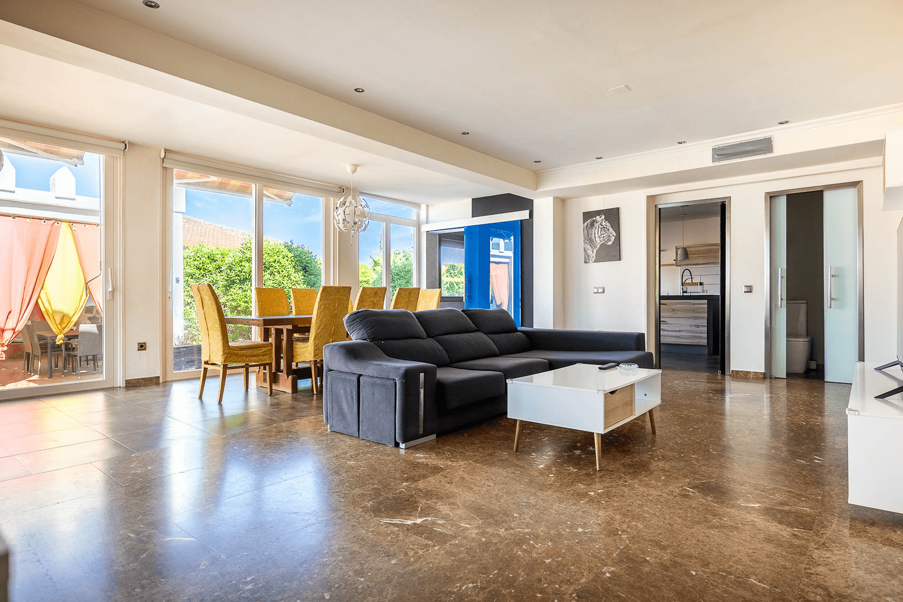The modern kitchen, equipped with a central island, is integrated into the space, creating a cozy and practical environment for daily living. On the ground floor, there is a bedroom en suite that offers more privacy. The first floor houses the master bedroom en suite, two additional bedrooms, and a multipurpose room with a terrace, ideal for enjoying natural light. Read more