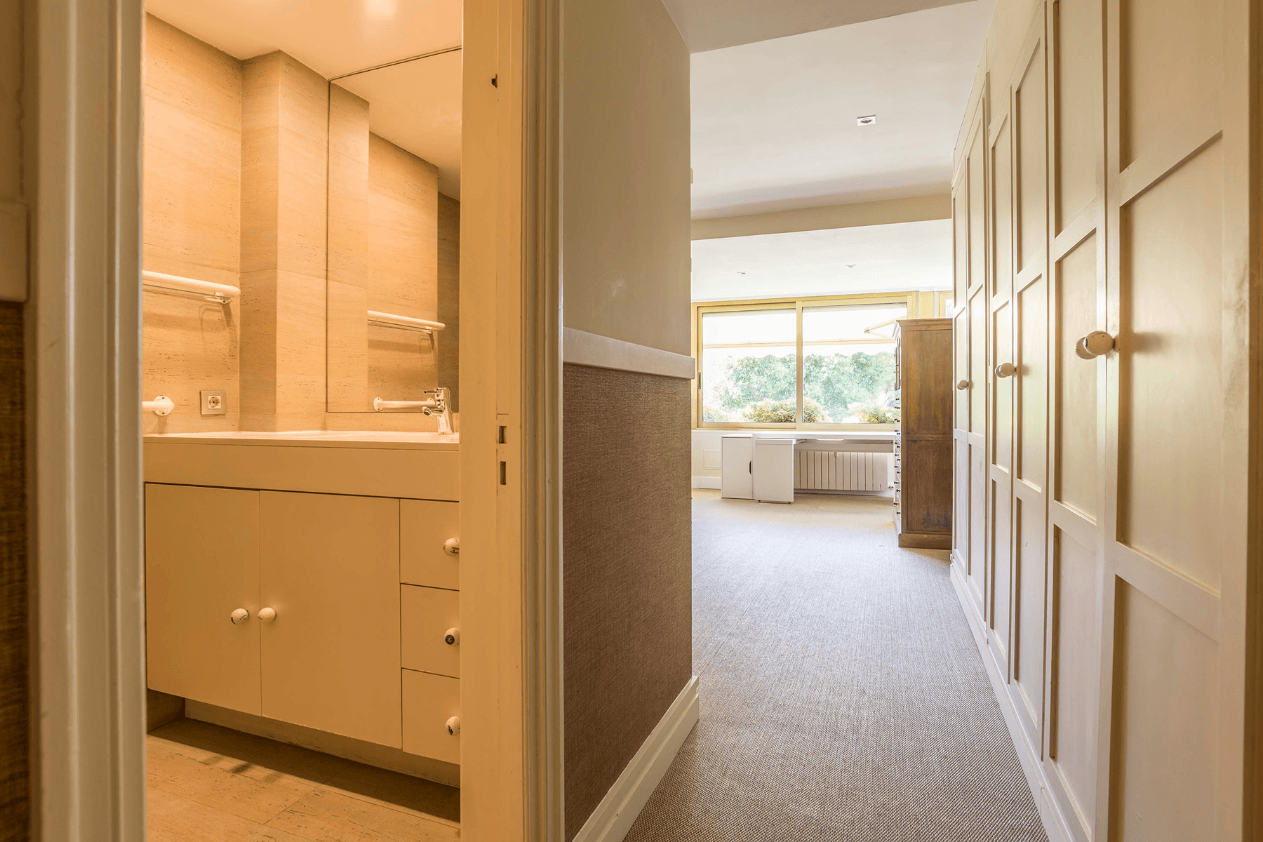 The apartment features a spacious living room, ideal for enjoying views of the communal garden. The kitchen, equipped with state-of-the-art appliances, is complemented by a design that maximizes space and functionality. Additional features include central air conditioning, central oil heating, an elevator, and two individual garage spaces. Security is a priority, with 24-hour concierge service available. Read more