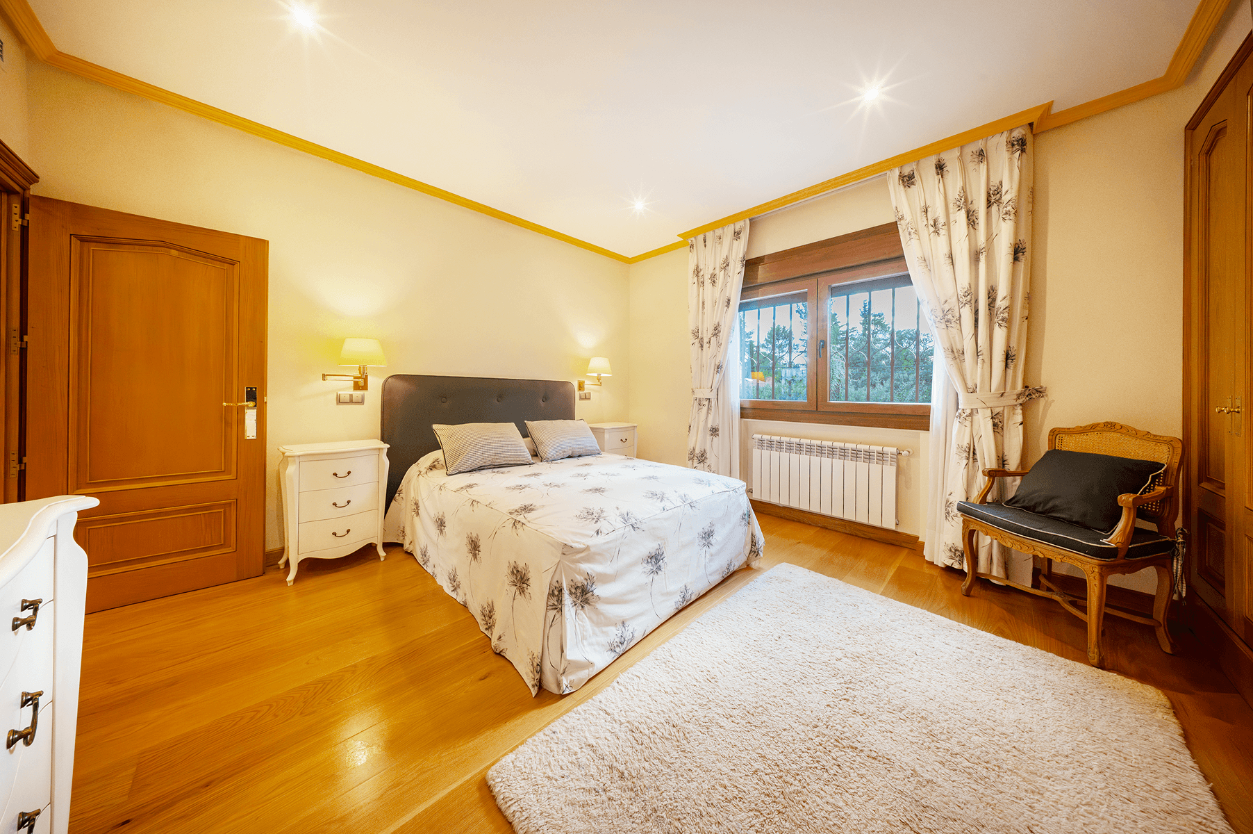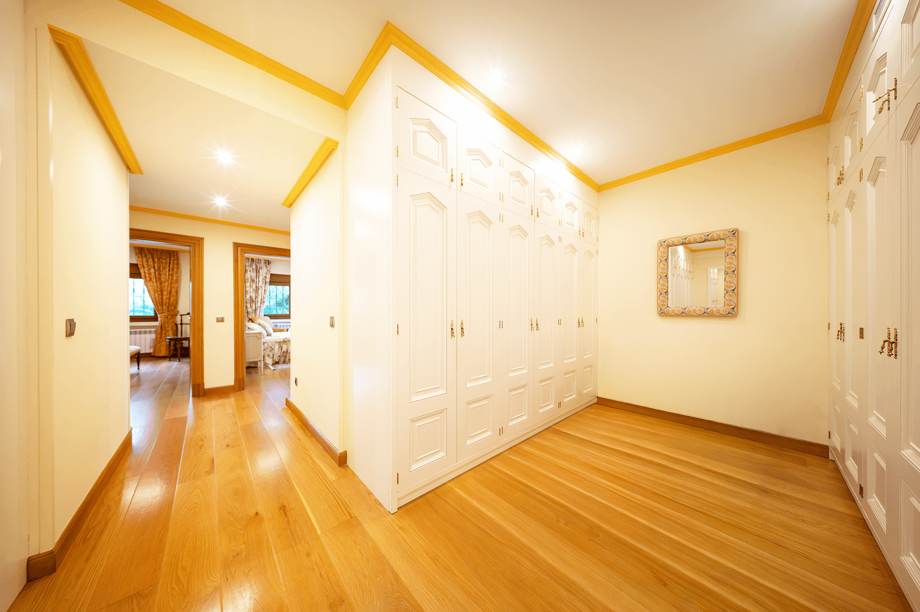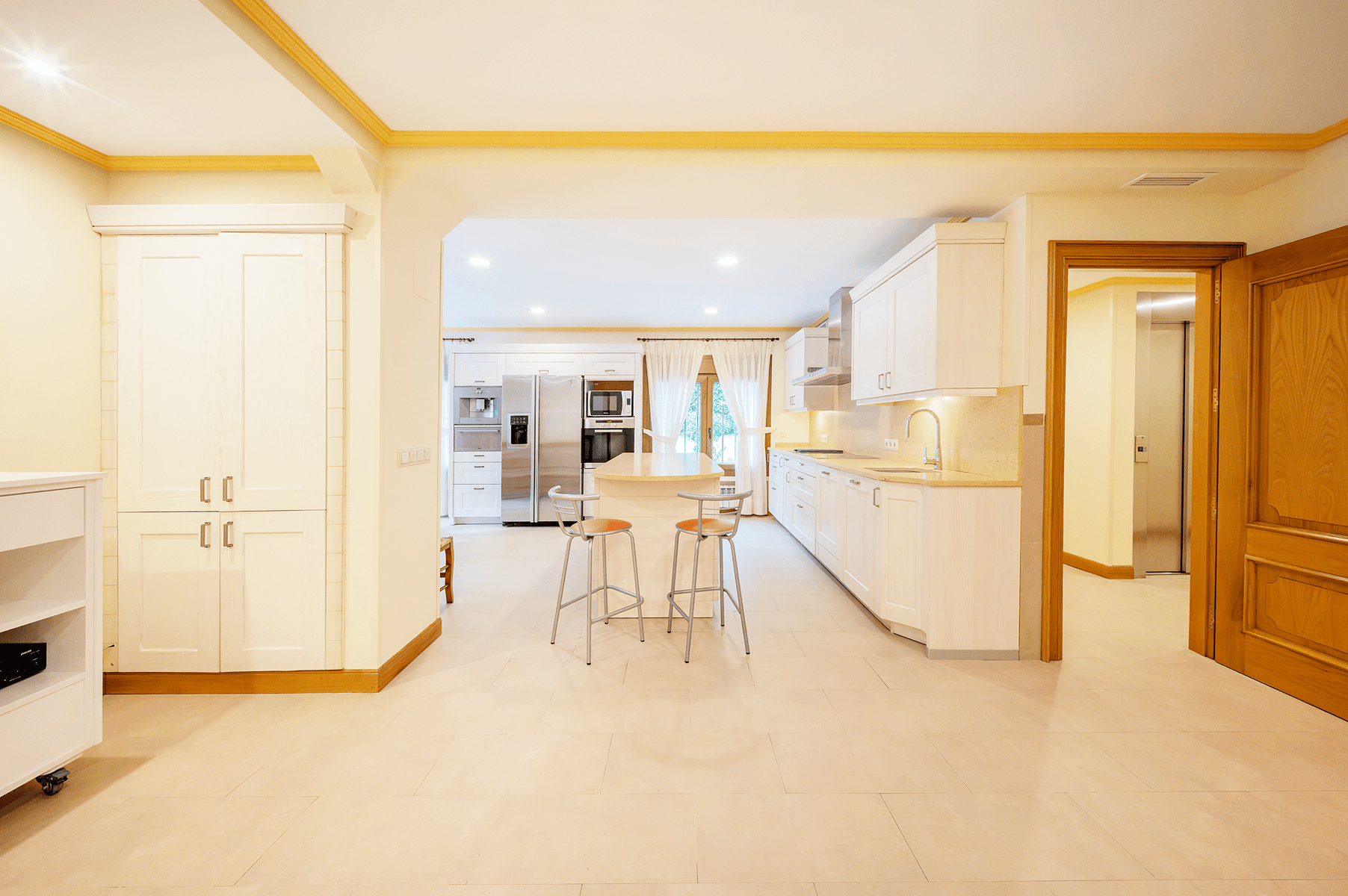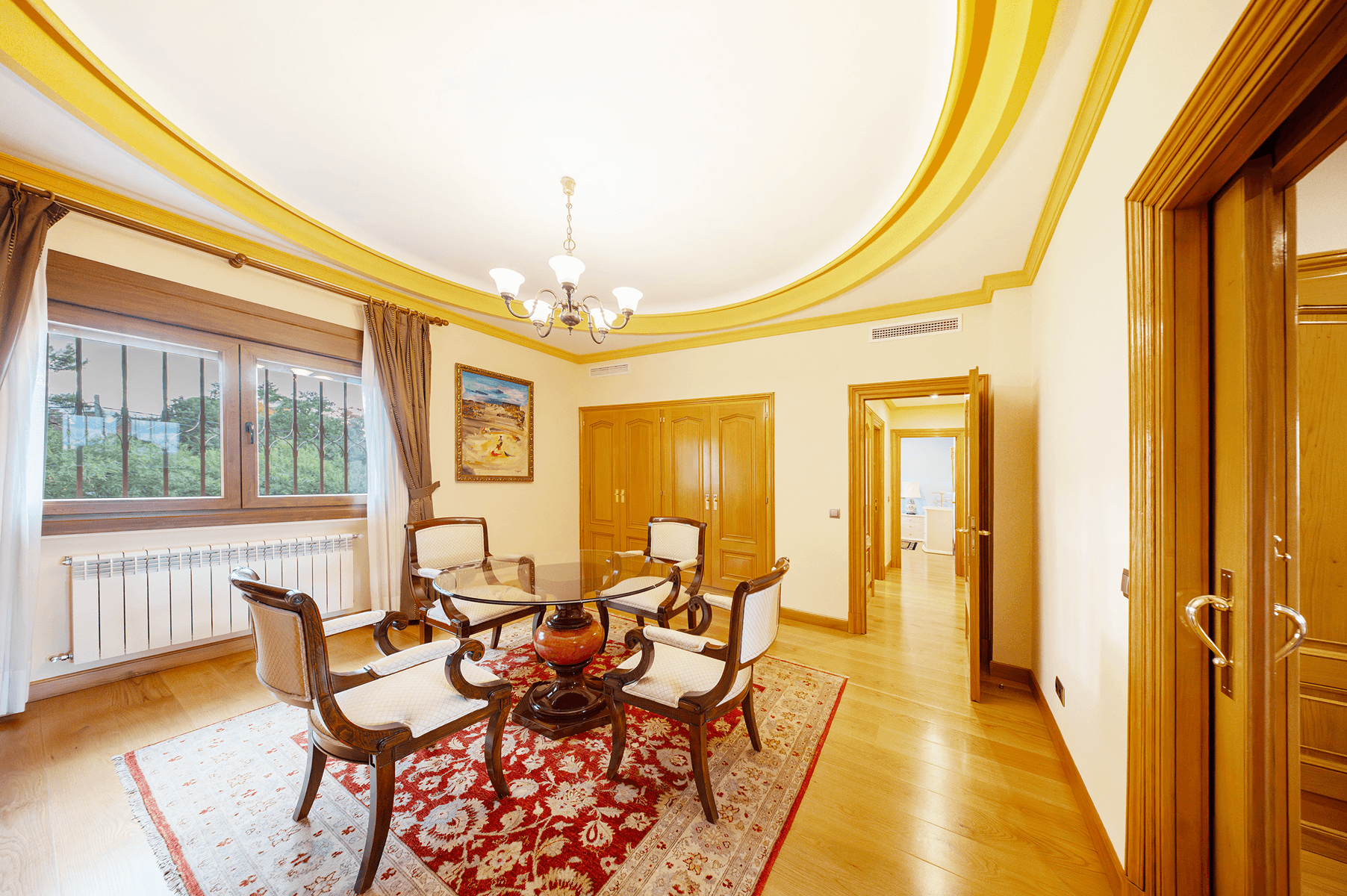 On the main floor, there are various spaces designed to enjoy family life: a large double living room, a cozy library with a fireplace, and an elegant formal dining room.