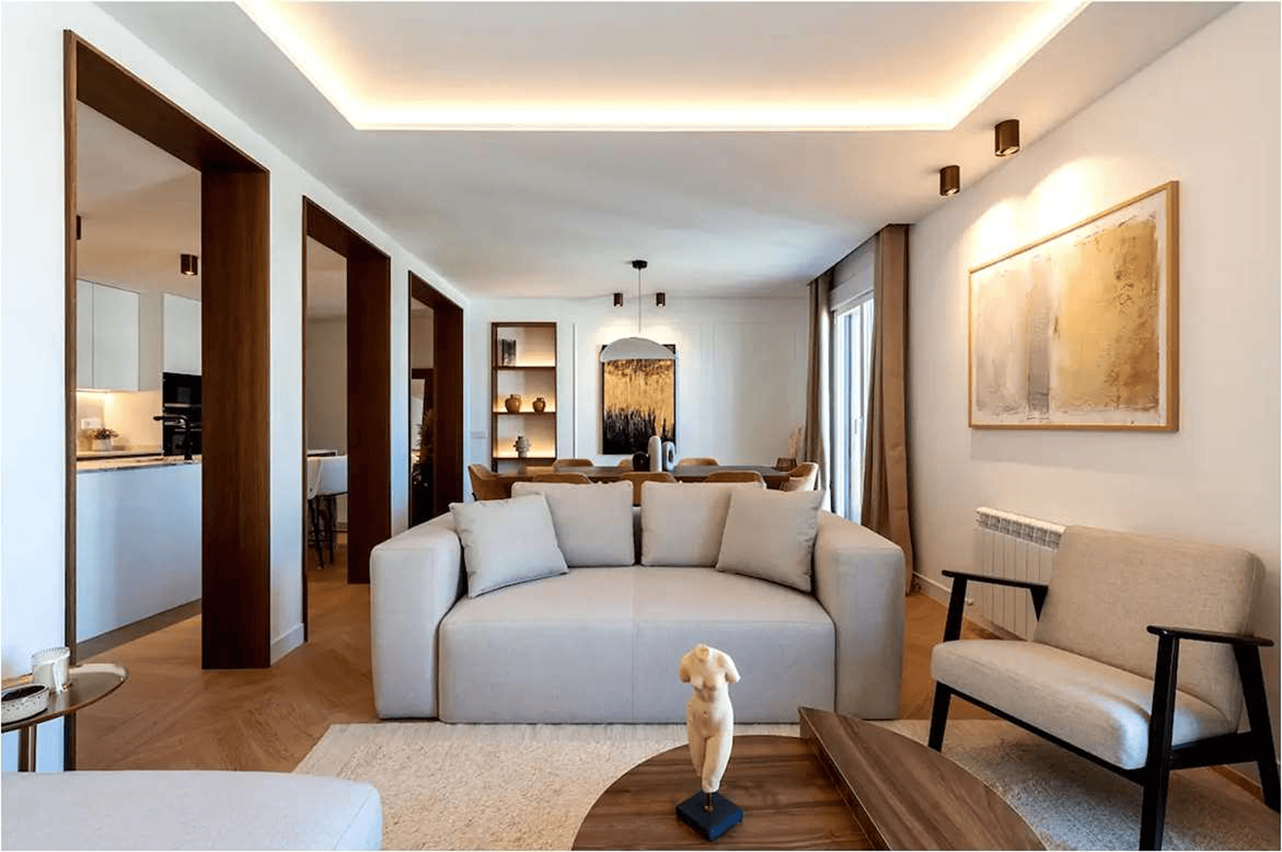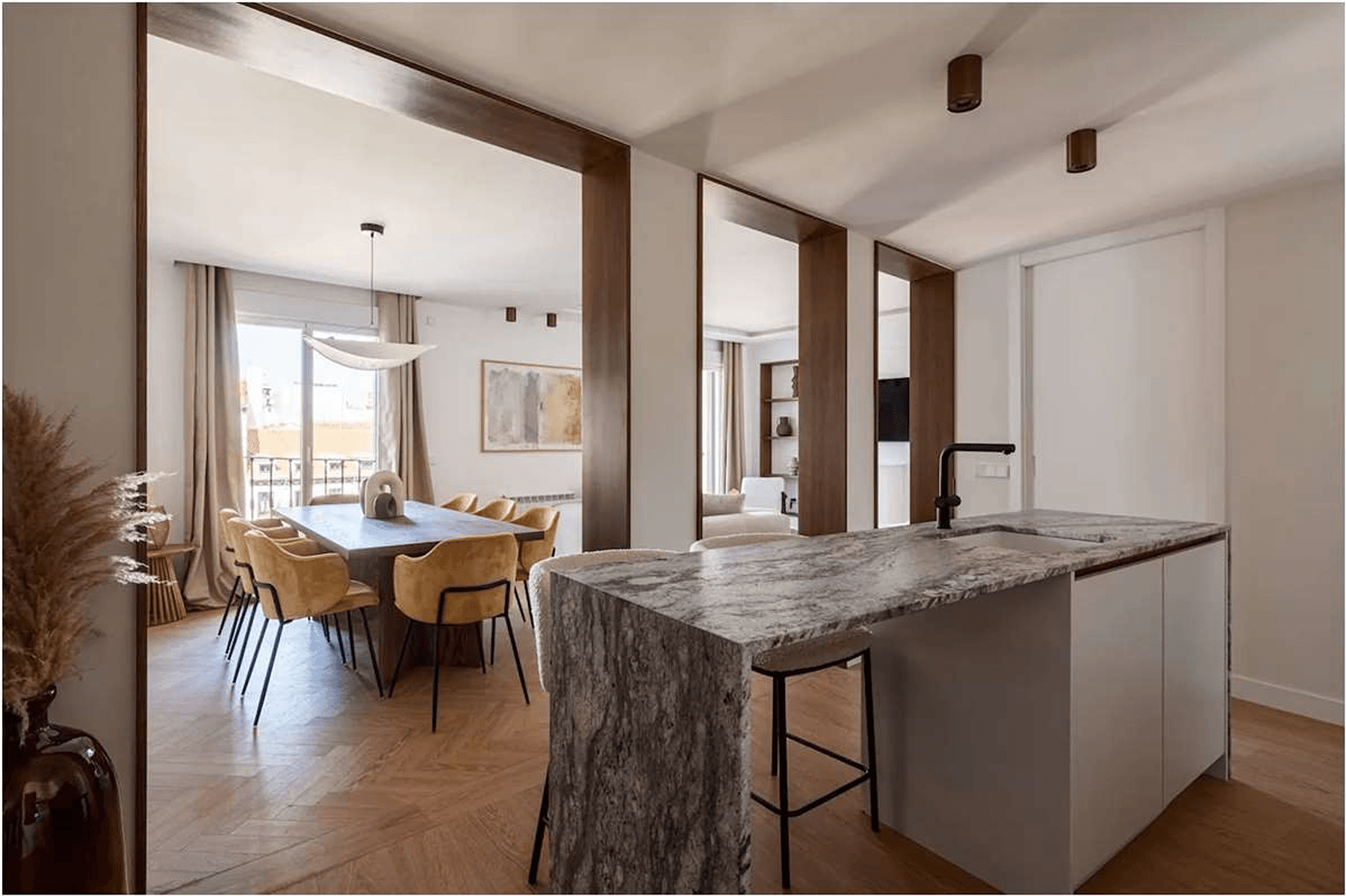 The apartment is harmoniously distributed in four spacious bedrooms and four bathrooms, three of which are en-suite, a feature that ensures privacy and comfort for all its occupants. The modern and functional kitchen is equipped with a central island that not only optimizes space but also becomes the ideal gathering point within the home. The entire apartment is air-conditioned and heated, guaranteeing a pleasant atmosphere in any season. Read more