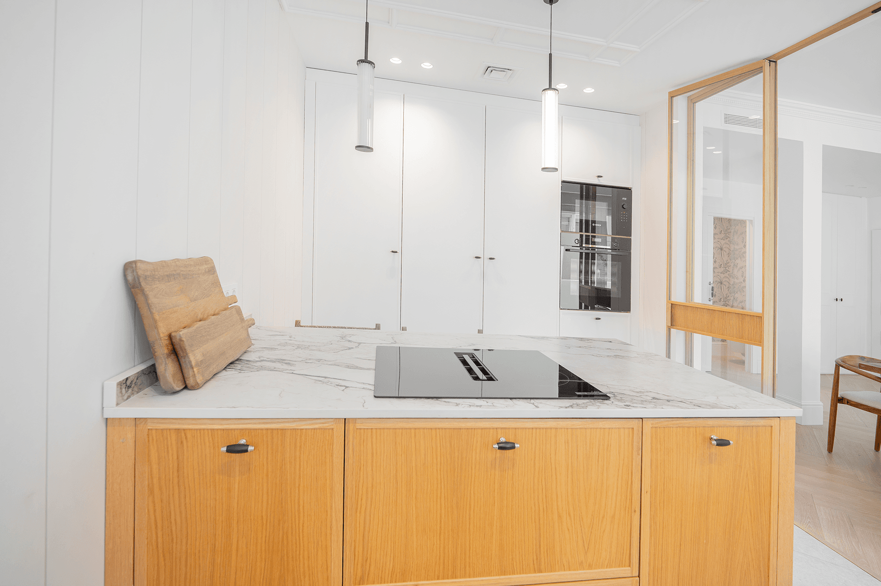 The house has three spacious double bedrooms, each with its own ensuite bathroom, in addition to an elegant guest toilet. The heart of the house is a designer kitchen with a central island, separated from the living room by a refined wooden glass partition, which adds character and warmth to the space. From the living room, there is access to a cozy south-facing terrace, perfect for enjoying the Madrid sun all year round. Read more