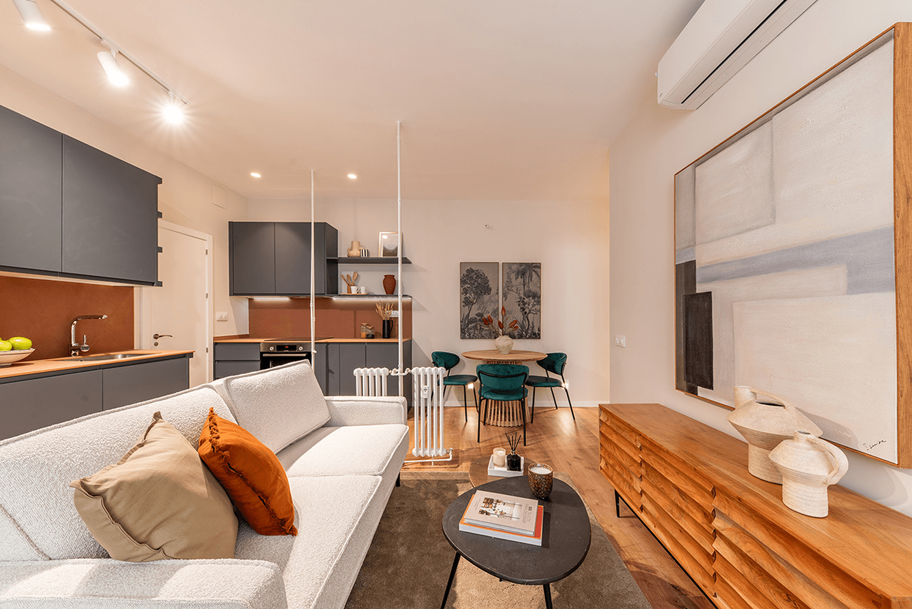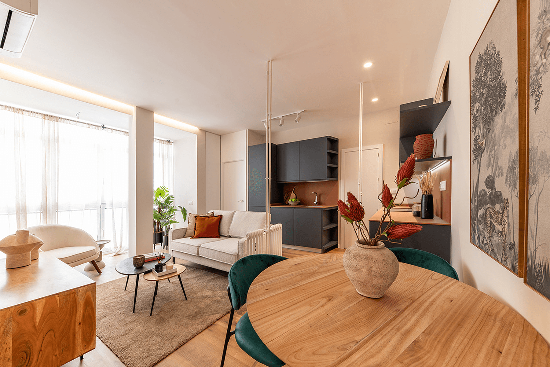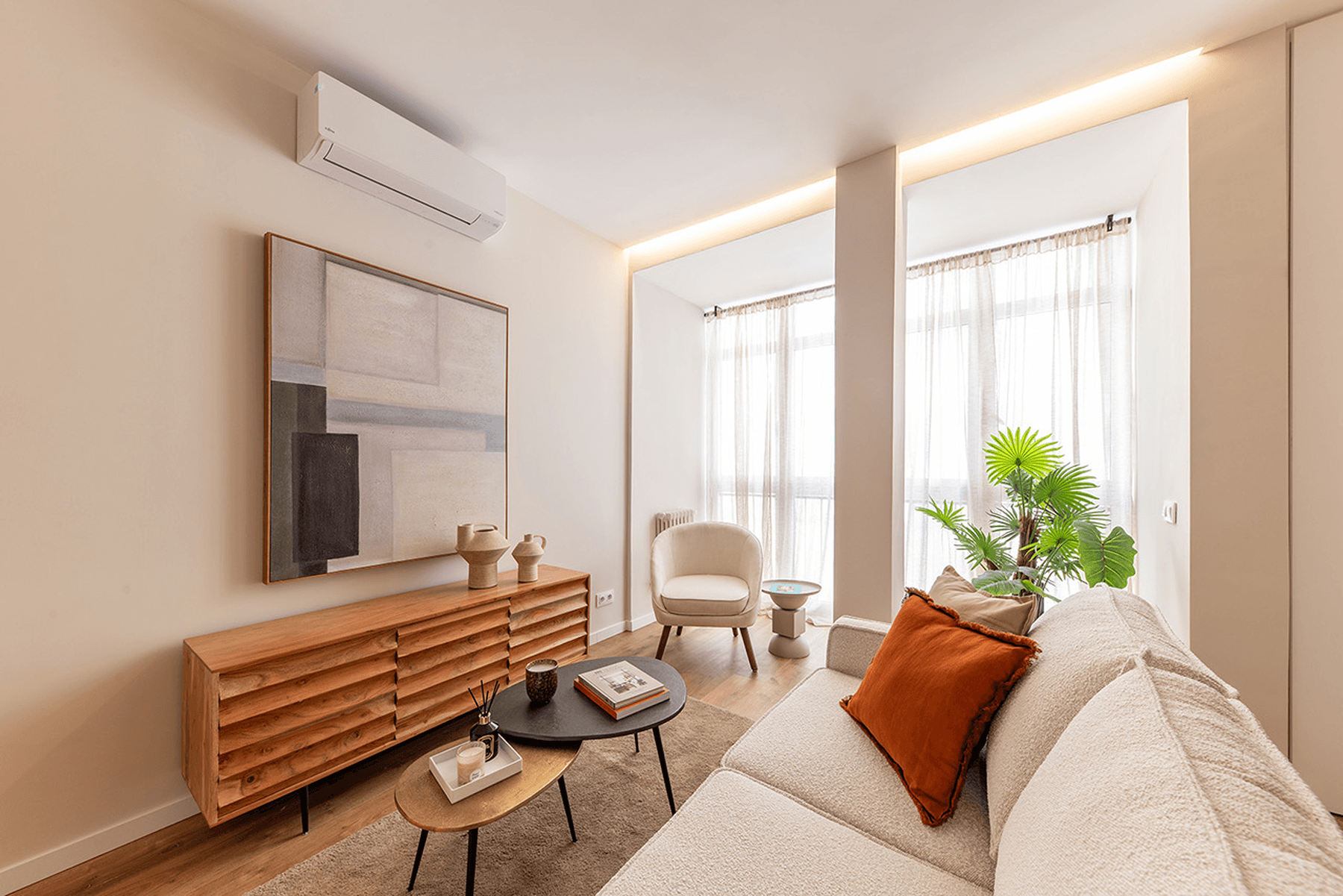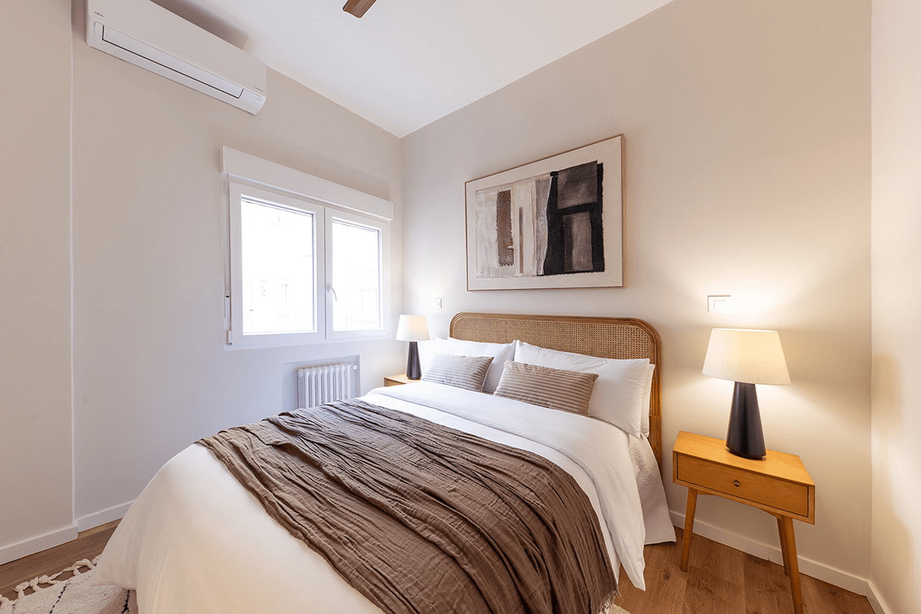 Apartment located in the heart of the vibrant district of Madrid next to Retiro Park, perfectly designed to combine comfort and modern style. With a built area of 67 m², this unit stands out for its beautiful renovation and offers a cozy layout with two bedrooms, two full bathrooms, and a comfortable living room. The house is offered fully furnished with modern design.