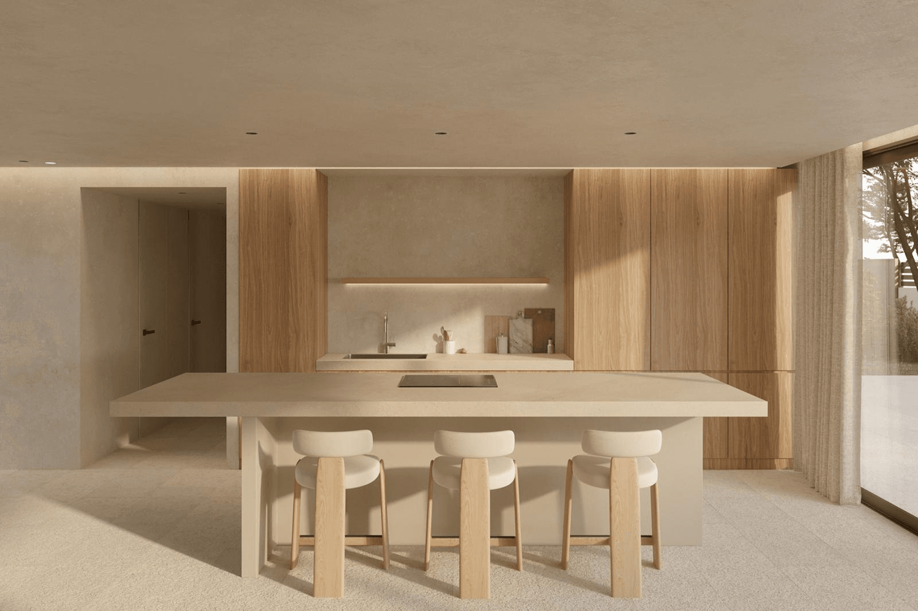 Designed with a modern and elegant aesthetic and with generous windows, the house enjoys a south orientation and is bathed in natural light at all times. Floor-to-ceiling sliding windows in the living areas elegantly disappear into the walls, creating the perfect indoor-outdoor living experience and offering magnificent views of the Sierra de Tramuntana. Read more