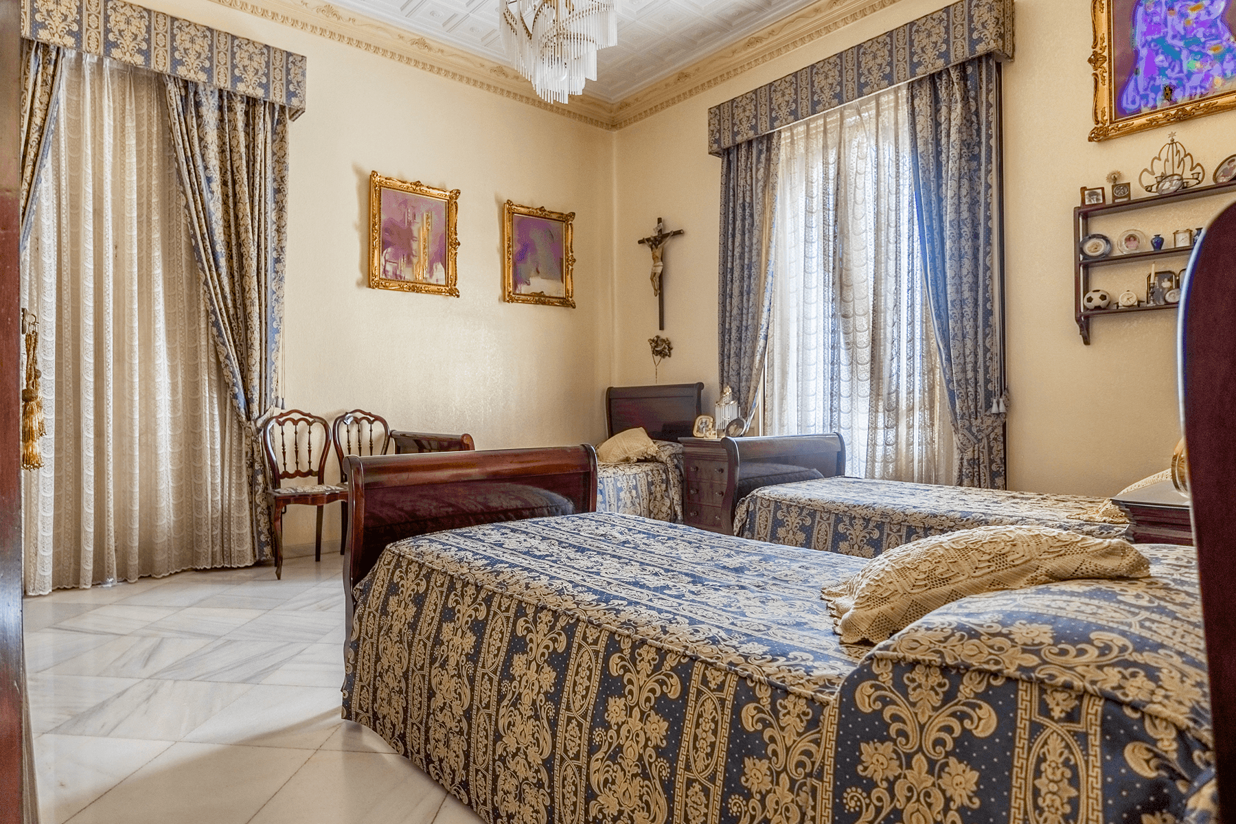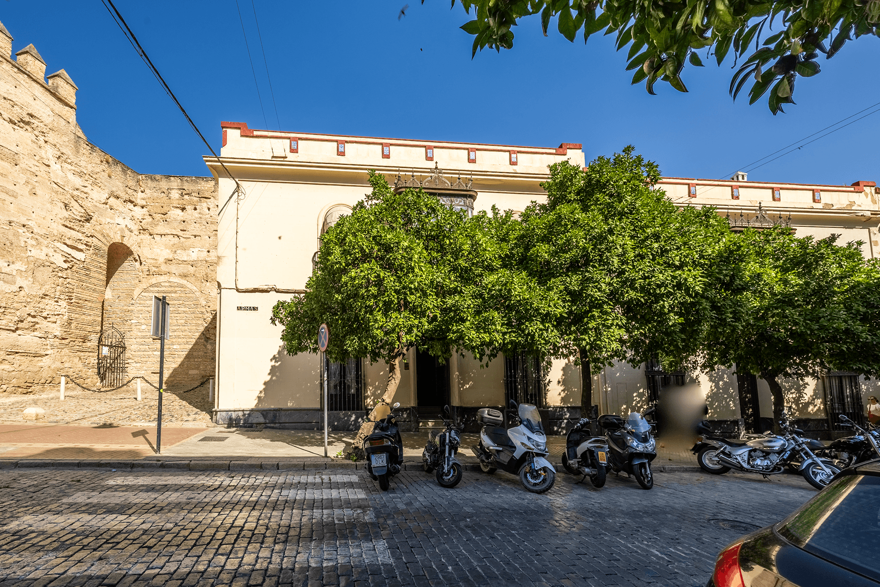 The house’s façade, elegant and classical, is distinguished by its prominent corner position, original wrought-iron balconies, and arched windows that harmonize with the surrounding defensive architecture. Entry is through a majestic noble door, leading to a central marble courtyard, encircled by a gallery with carved wooden carpentry. Natural light floods this core, while an imposing imperial staircase of white marble, flanked by period Sevillian tiles, gracefully ascends to the upper floors. Read more