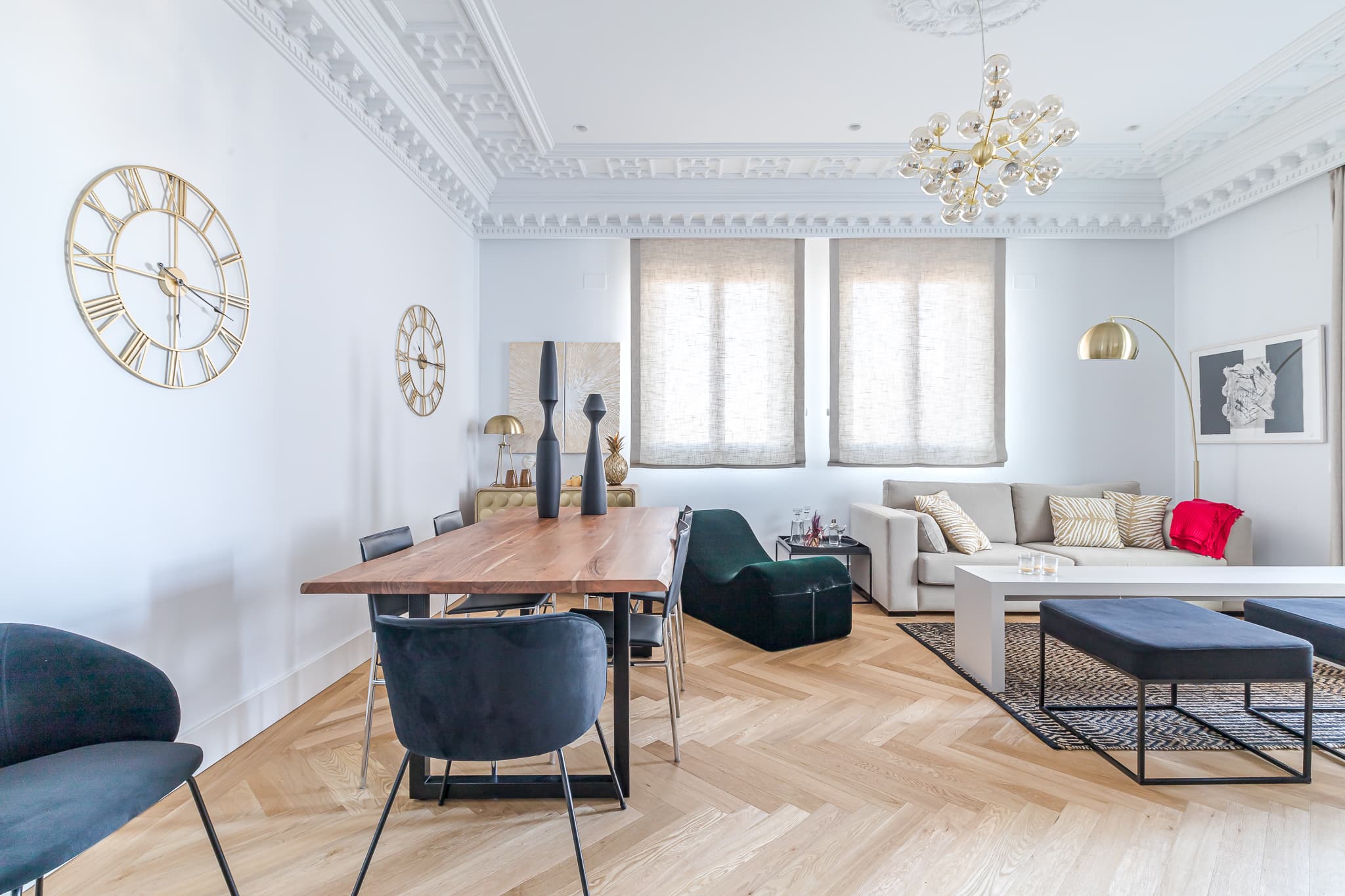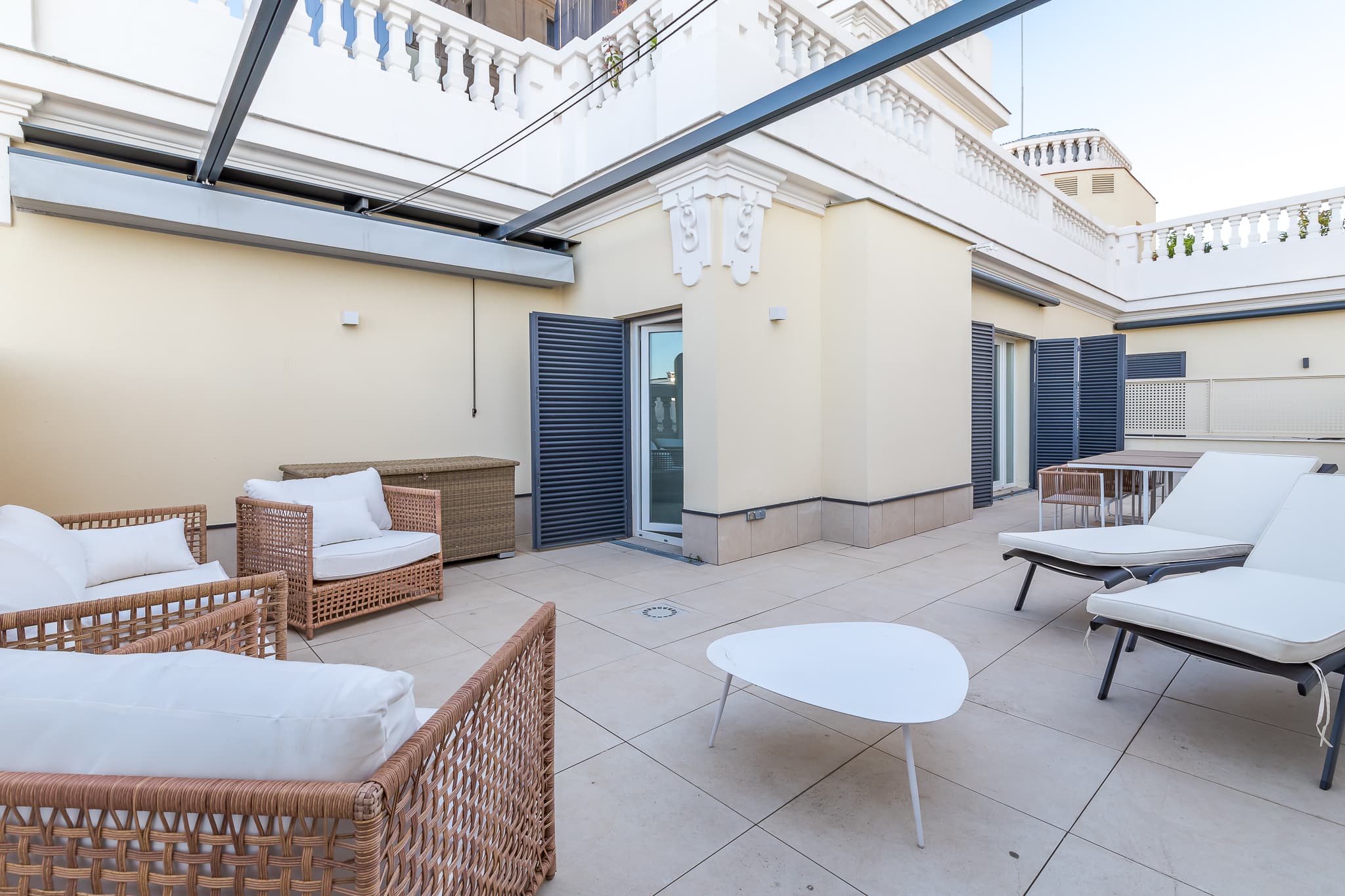 Sotheby's presents this penthouse located in a new building on Gran Vía, a rental home ready to move in that combines contemporary design with respect for the original elements of the property.