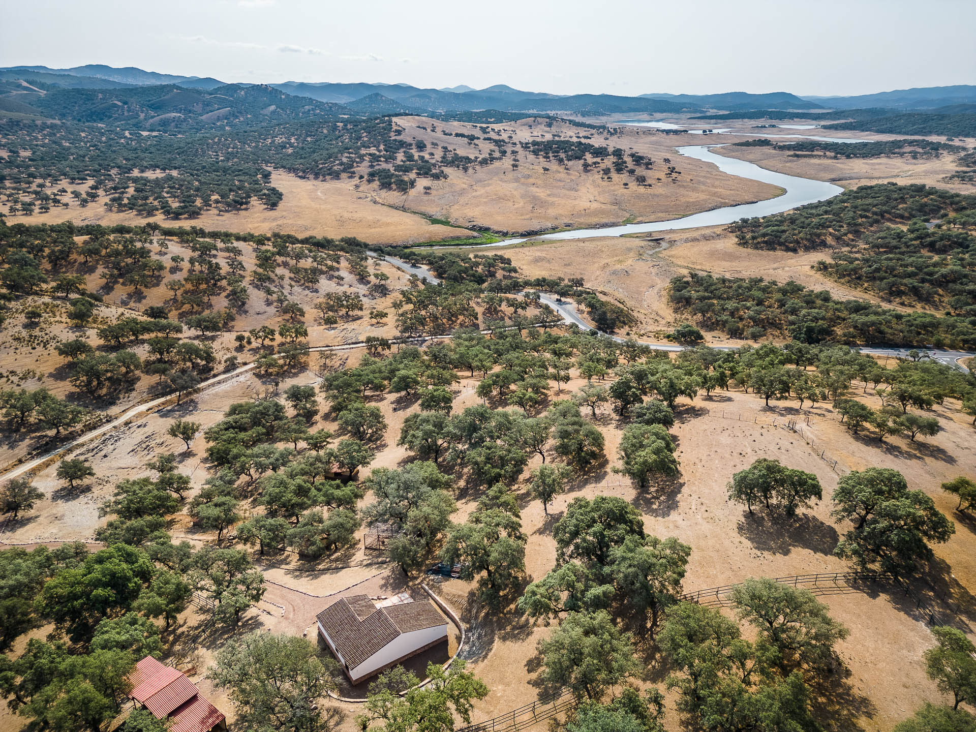 This farmhouse is located in the Sierra de Aracena, spanning 10 hectares, with a newly constructed building measuring 115.70 m², featuring 2 bedrooms, a bathroom, a living-dining room, and a kitchen. The property stands out for its natural luminosity and double-height wooden ceilings.
