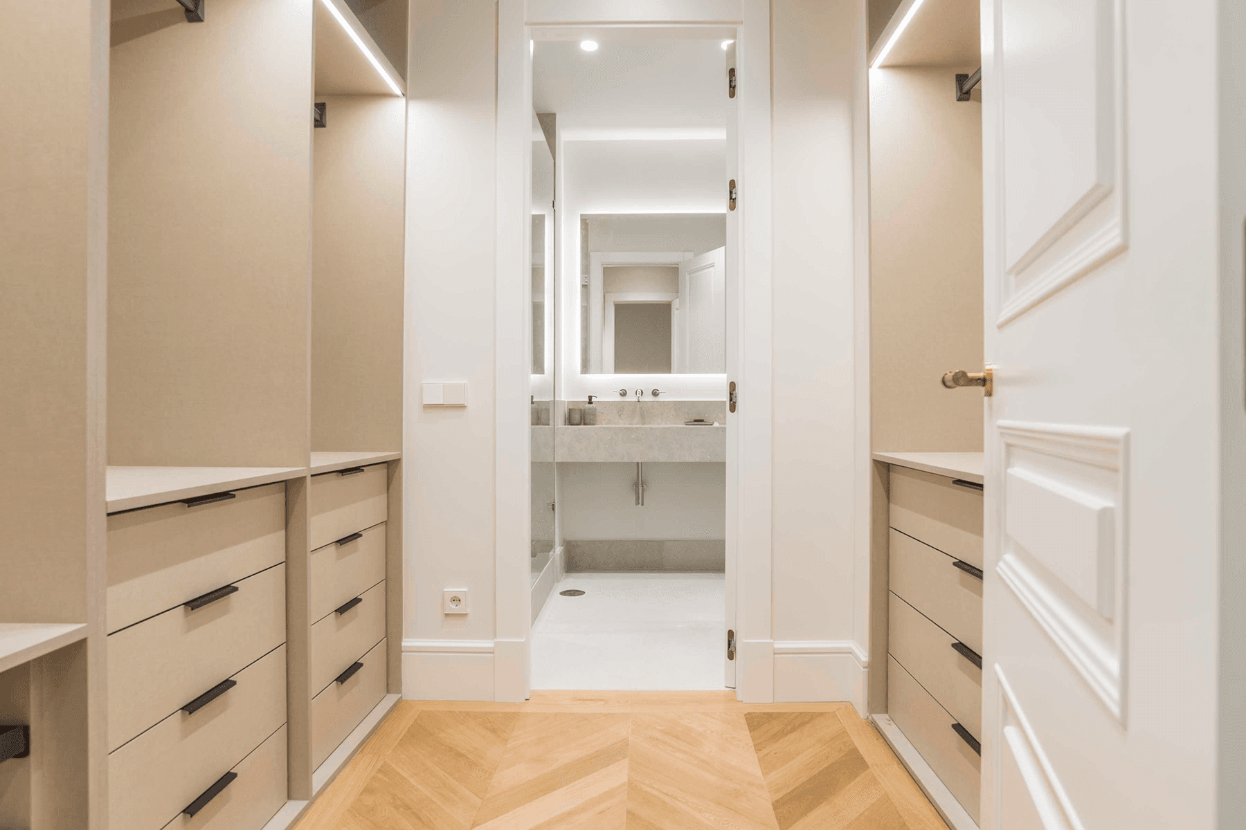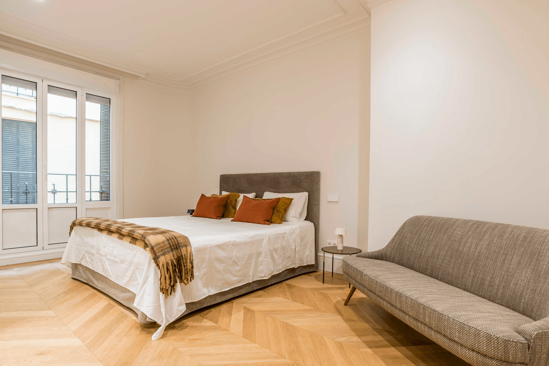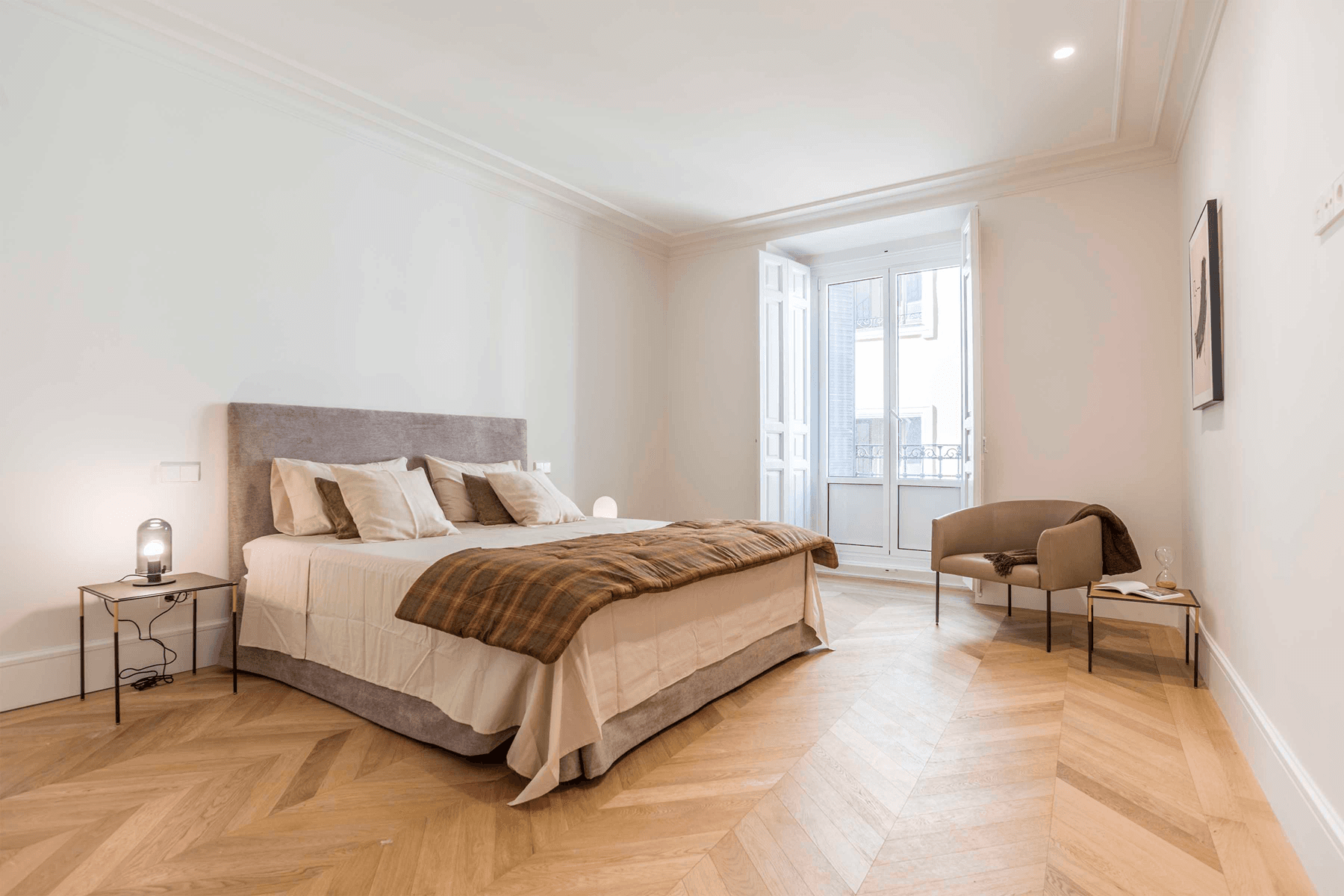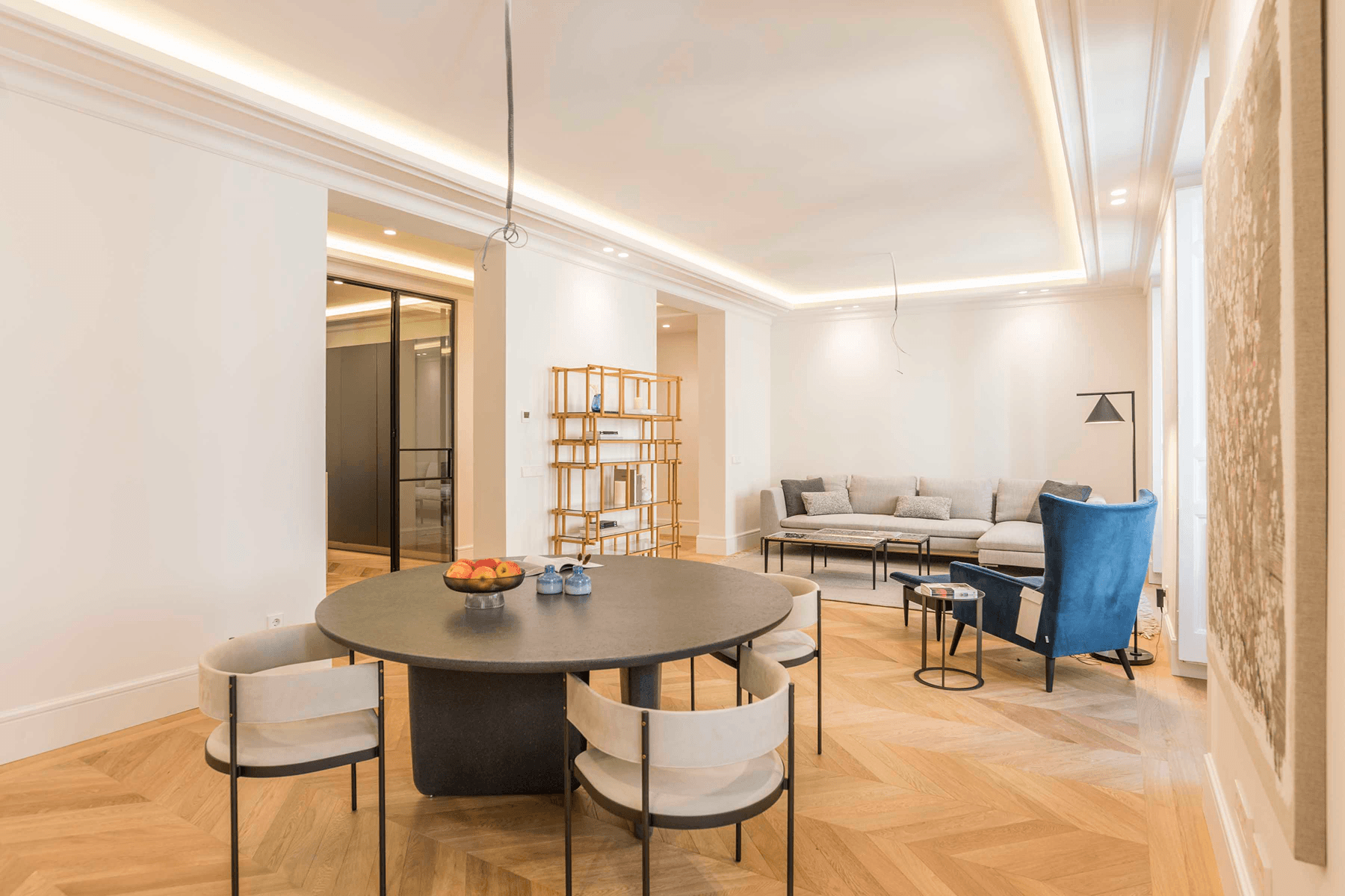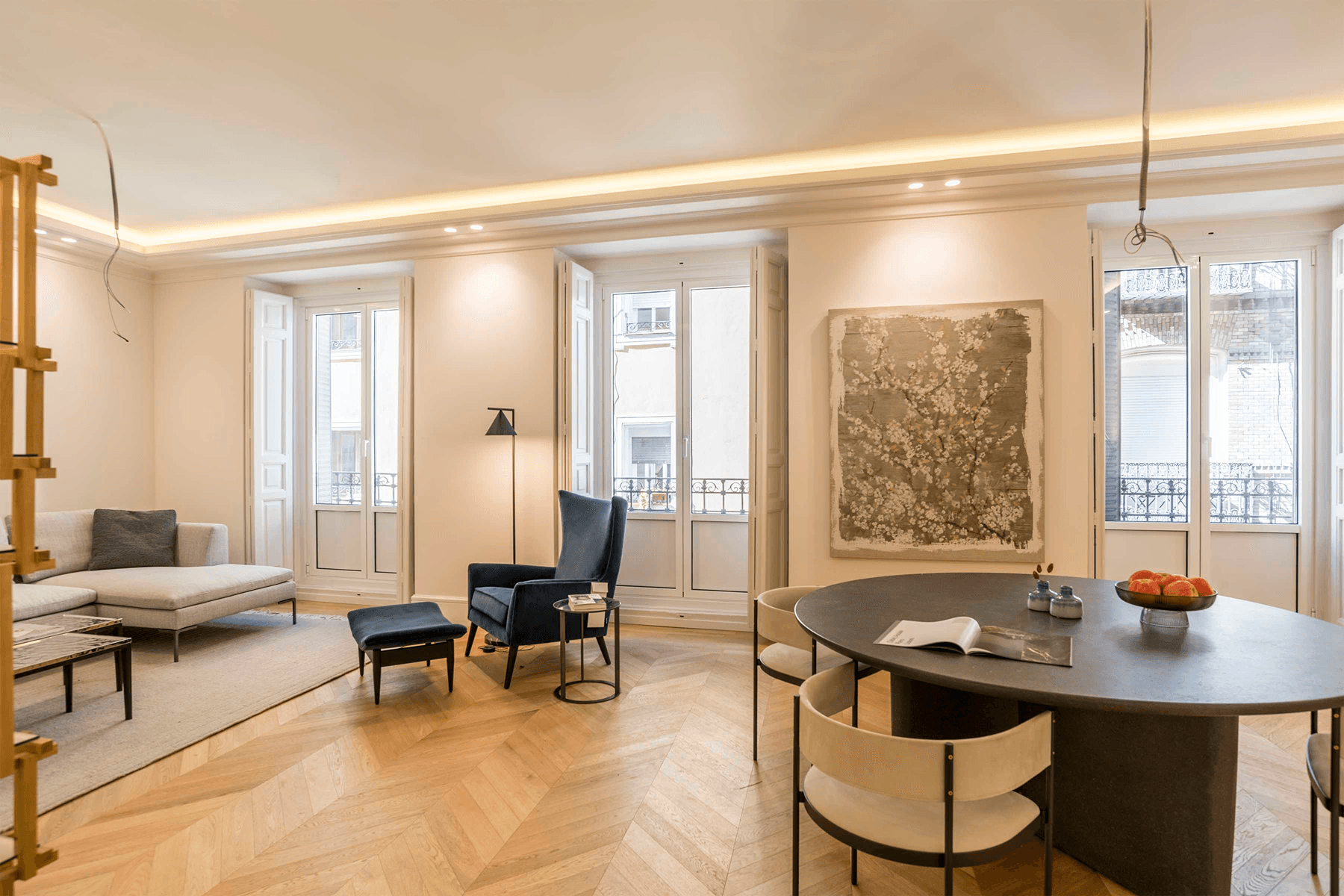 Located in a historic building from 1913, this recently renovated 228 square meter apartment is located in the heart of the Cortes neighborhood in Madrid, and stands out for its contemporary design and careful distribution.