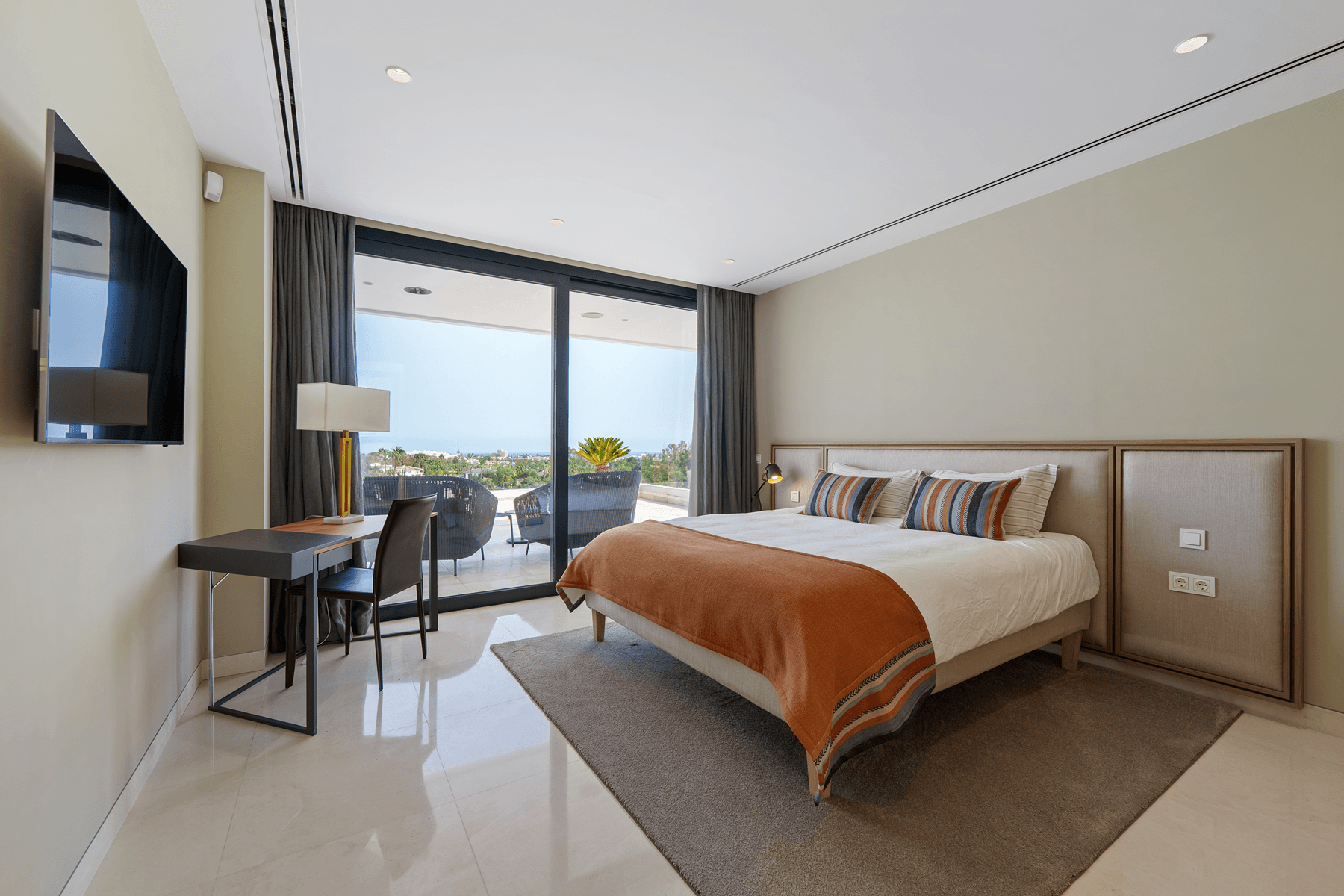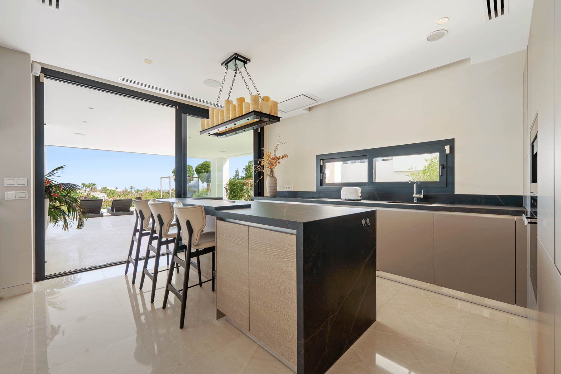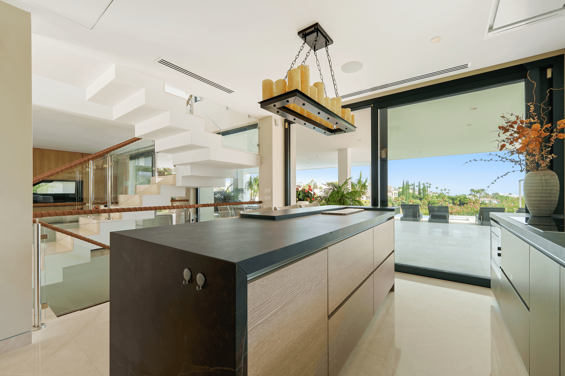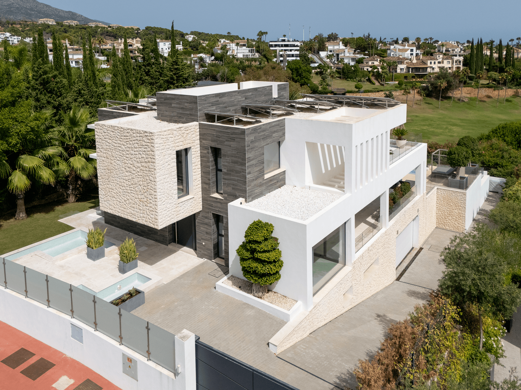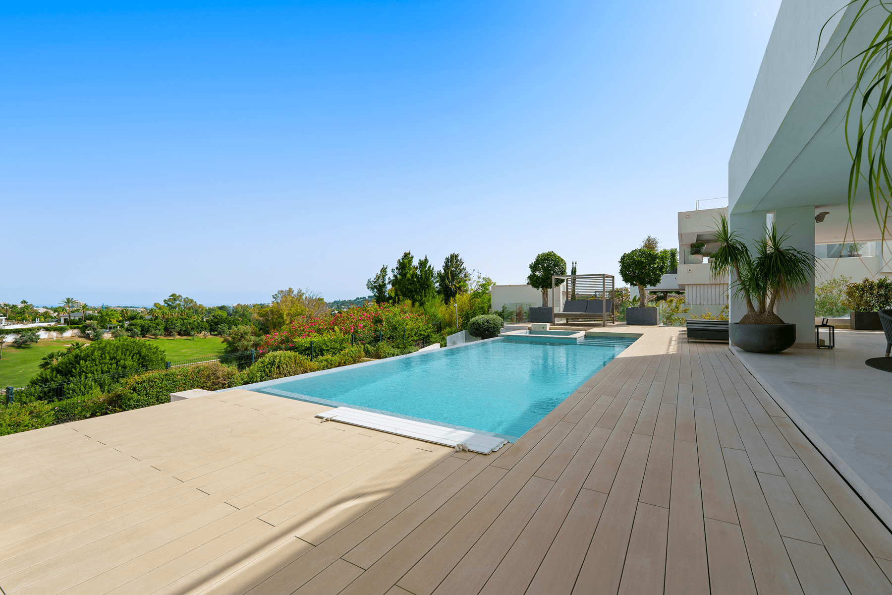 Located in the heart of Nueva Andalucía, this strikingly contemporary villa enjoys a privileged frontline golf position, engineered with clean architectural lines to maximize natural light and seamless indoor-outdoor living.