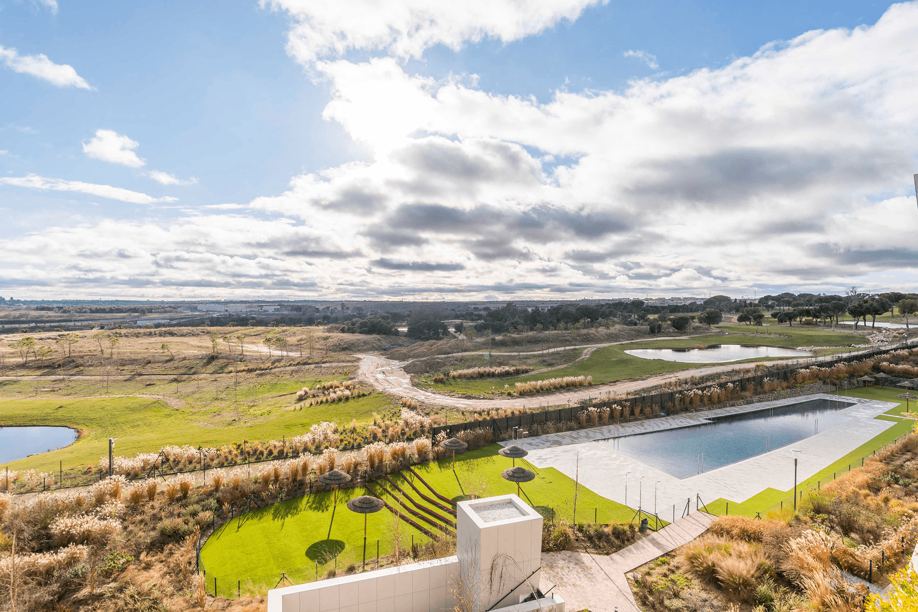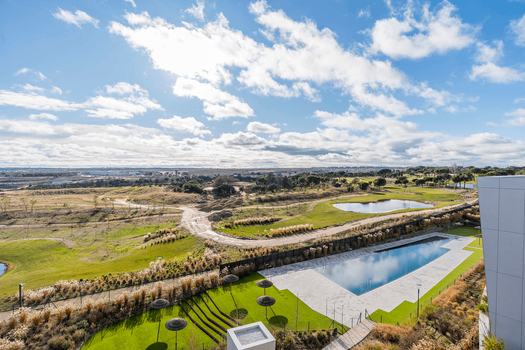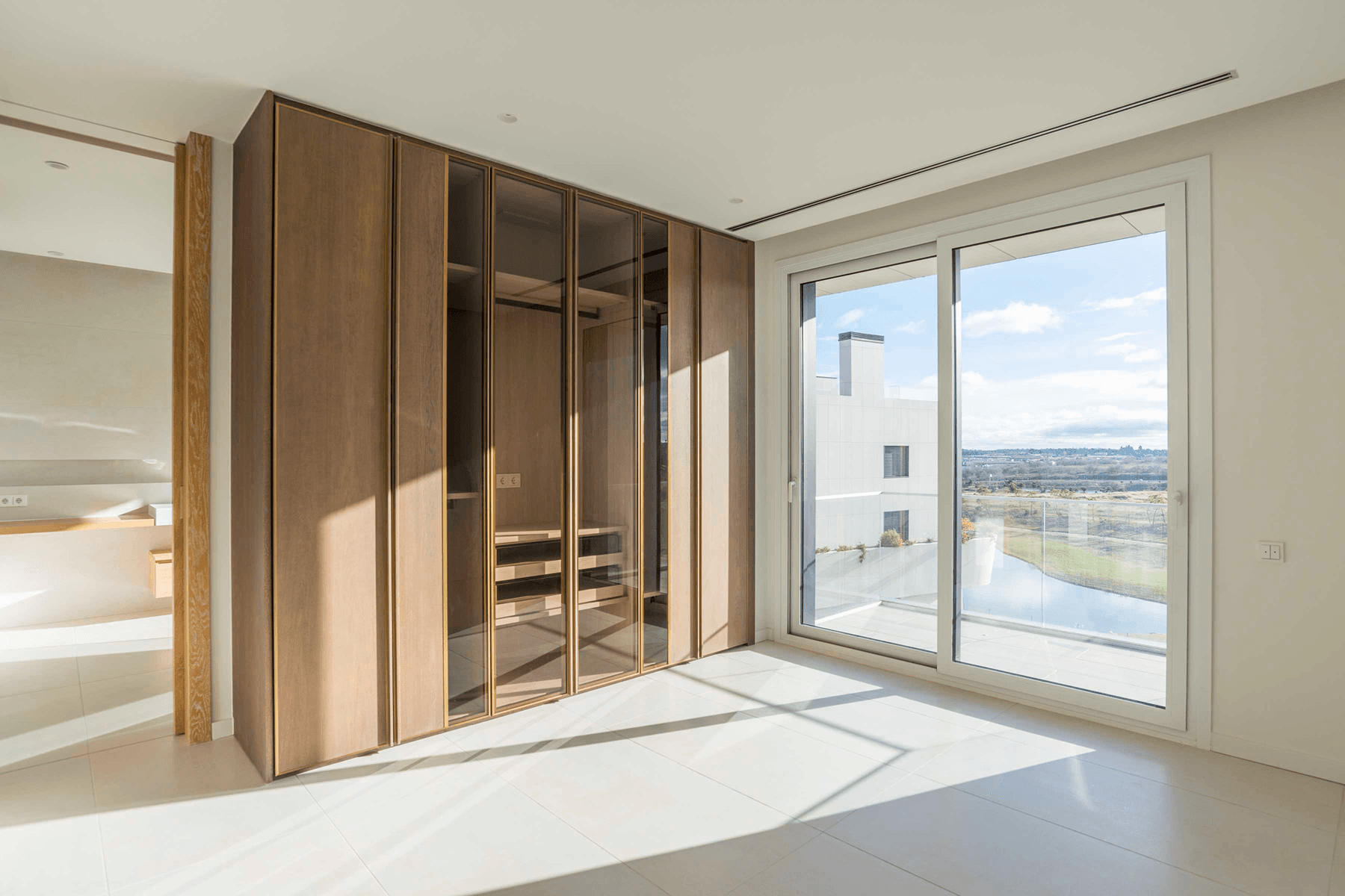 On the main floor, a sophisticated and bright living-dining room opens onto an elegant terrace with direct views of the golf course, creating an ideal space for entertainment and relaxation. The kitchen, fully equipped with high-end appliances, features a laundry area and a drying area. This floor is completed with a guest toilet and a service room with an ensuite bathroom. Read more