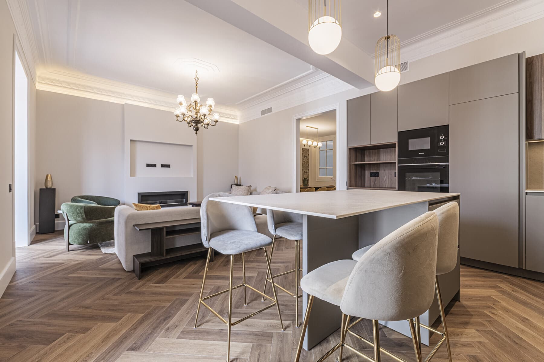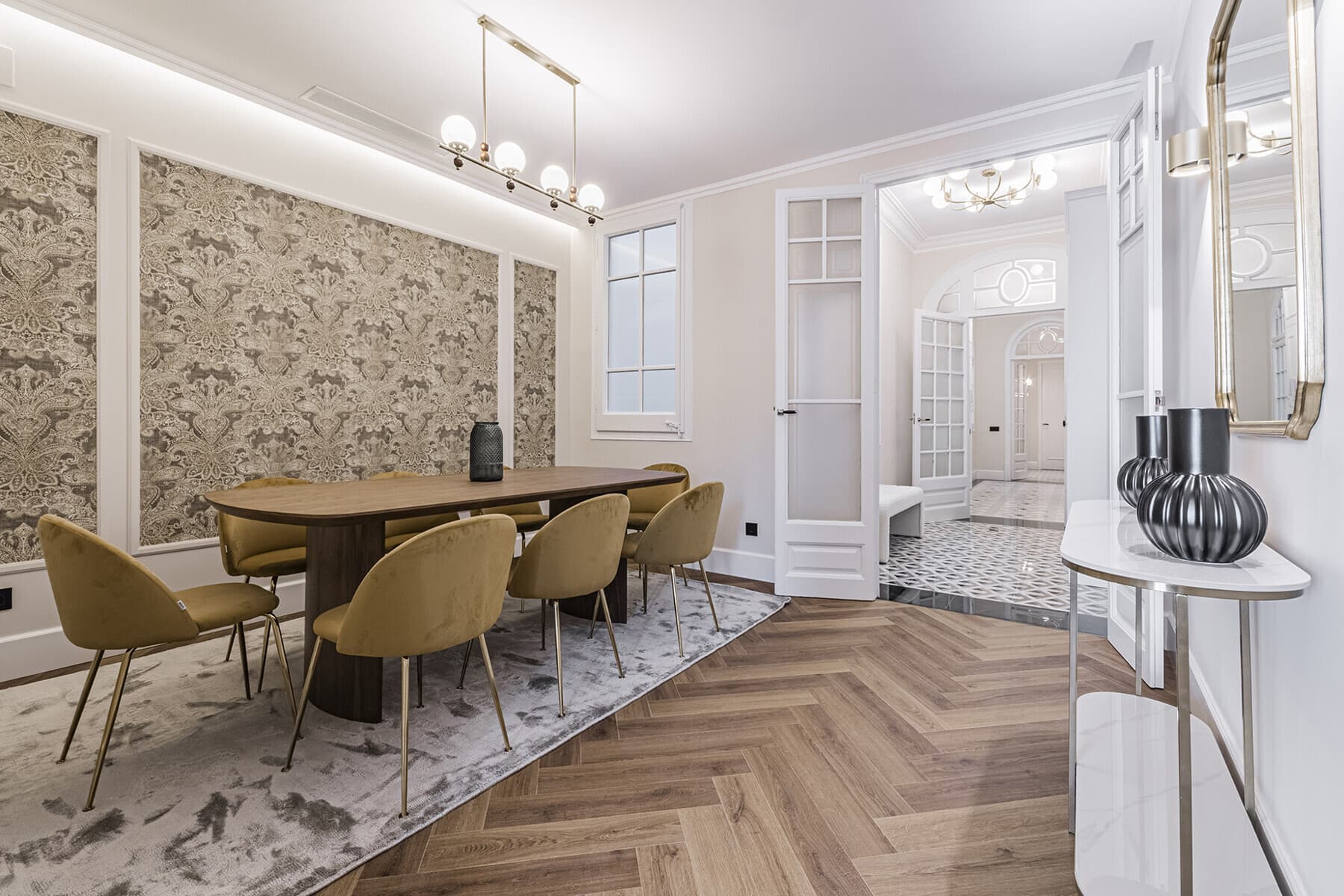 Exceptional apartment in a classic building in Barcelona's Eixample district, built in 1930, a few meters from Diagonal Avenue and close to Francesc Macià, l'Hospital Clínic and the commercial axis of Rambla Catalunya and Passeig de Gràcia.