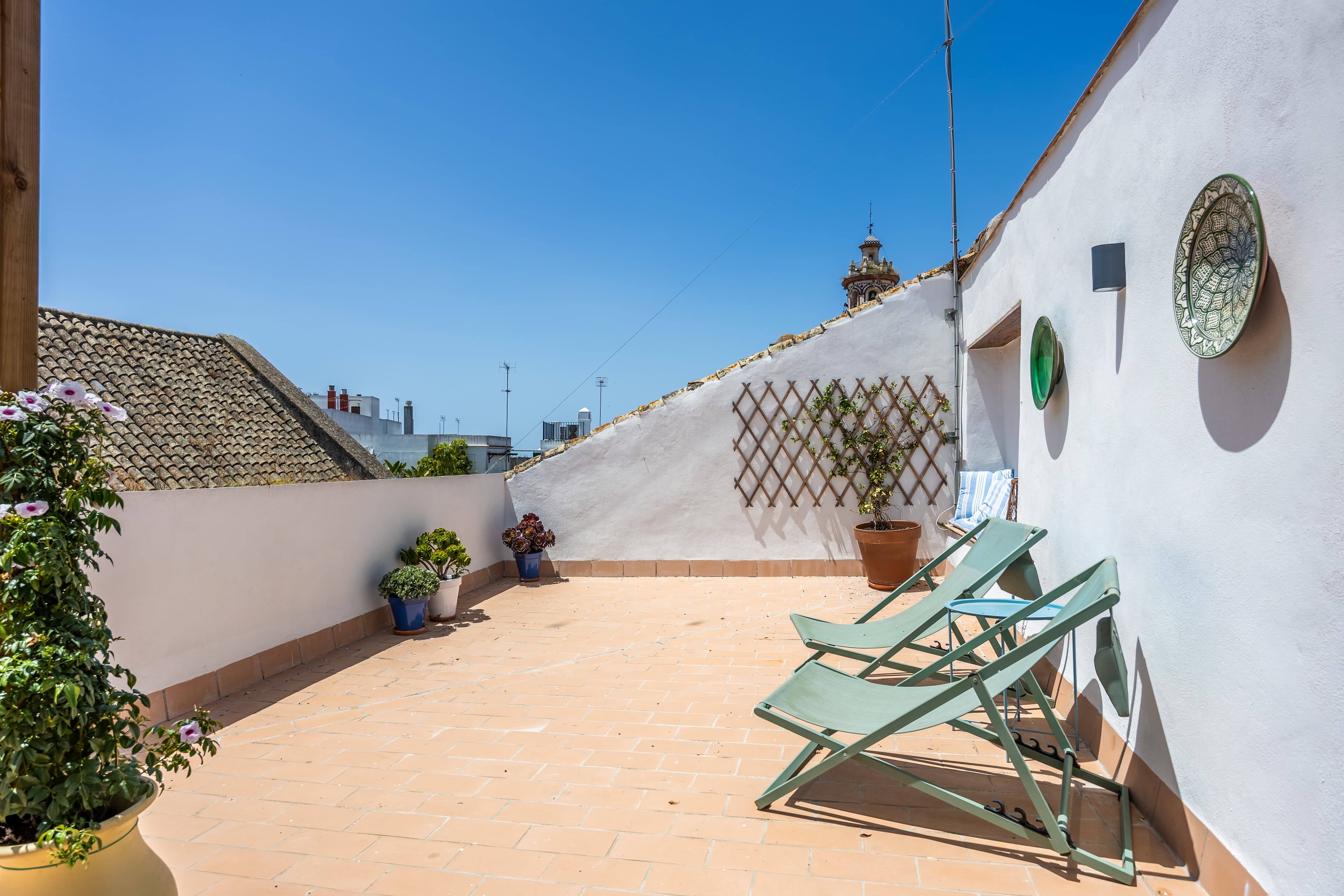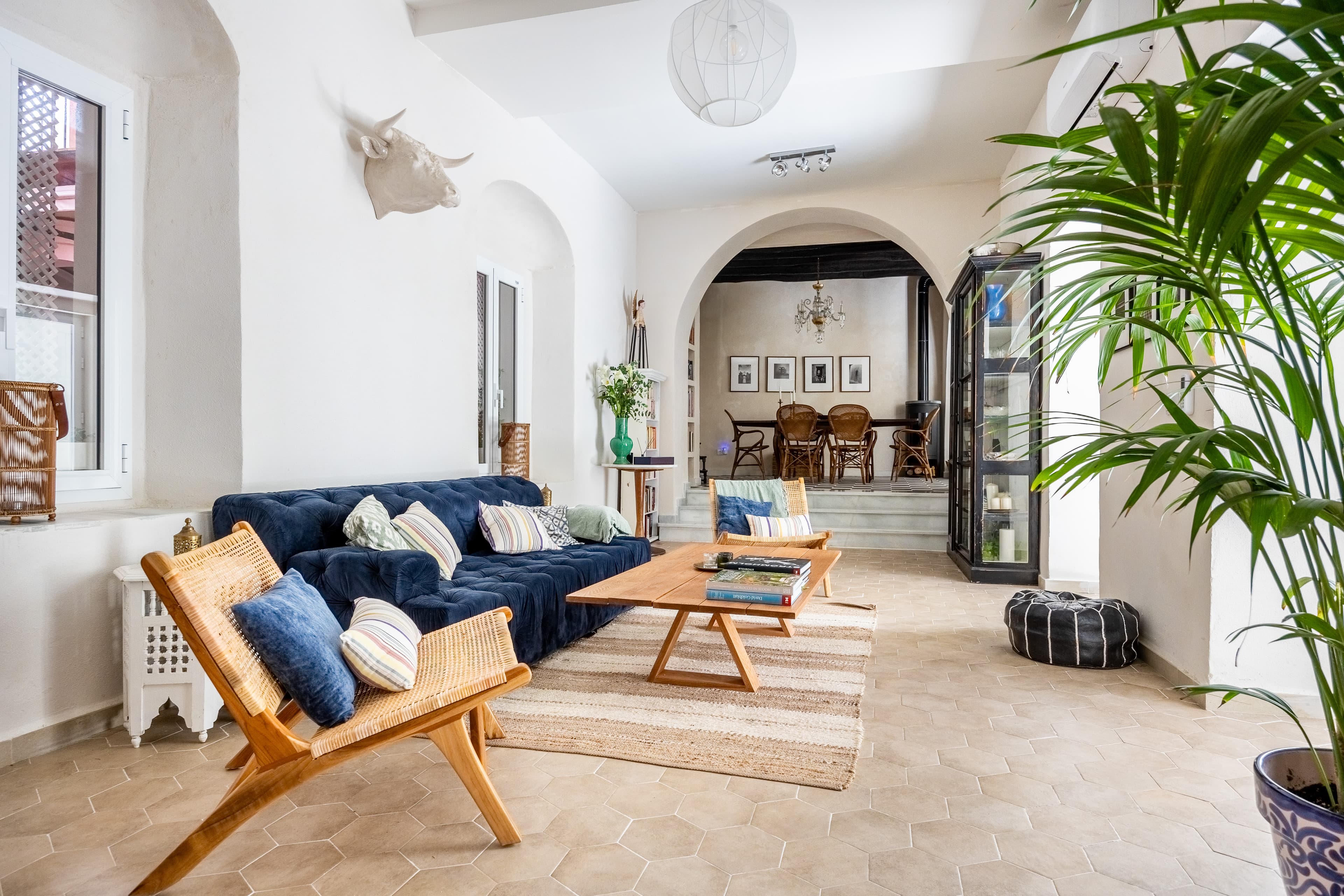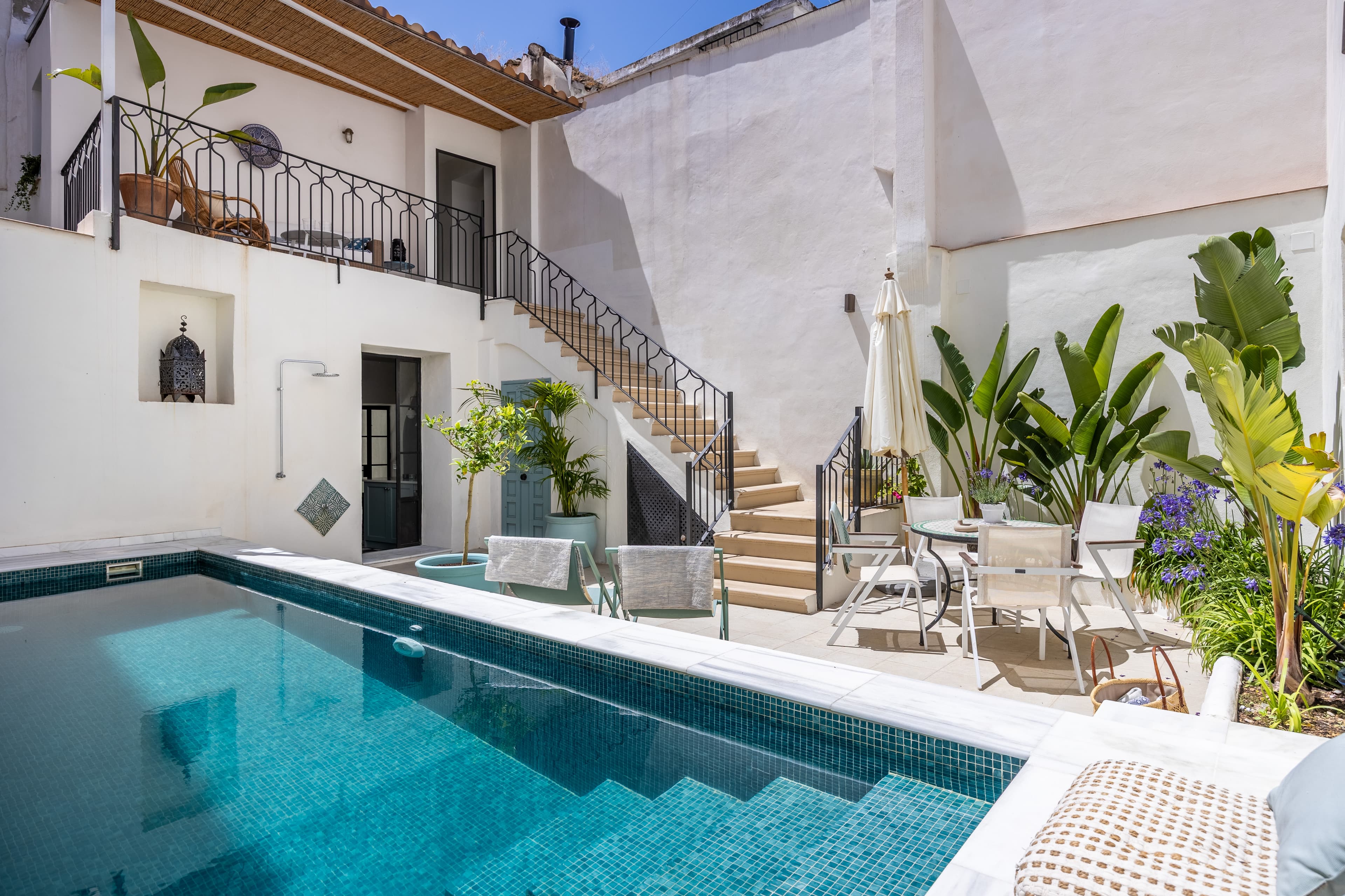 This historic house, distributed around a bright central courtyard with checkered marble floors and large-format vegetation, combines Andalusian architectural character with a contemporary and functional design. Completely renovated in 2022, the property consists of two connected units, with the possibility of independent use, and an auxiliary studio.