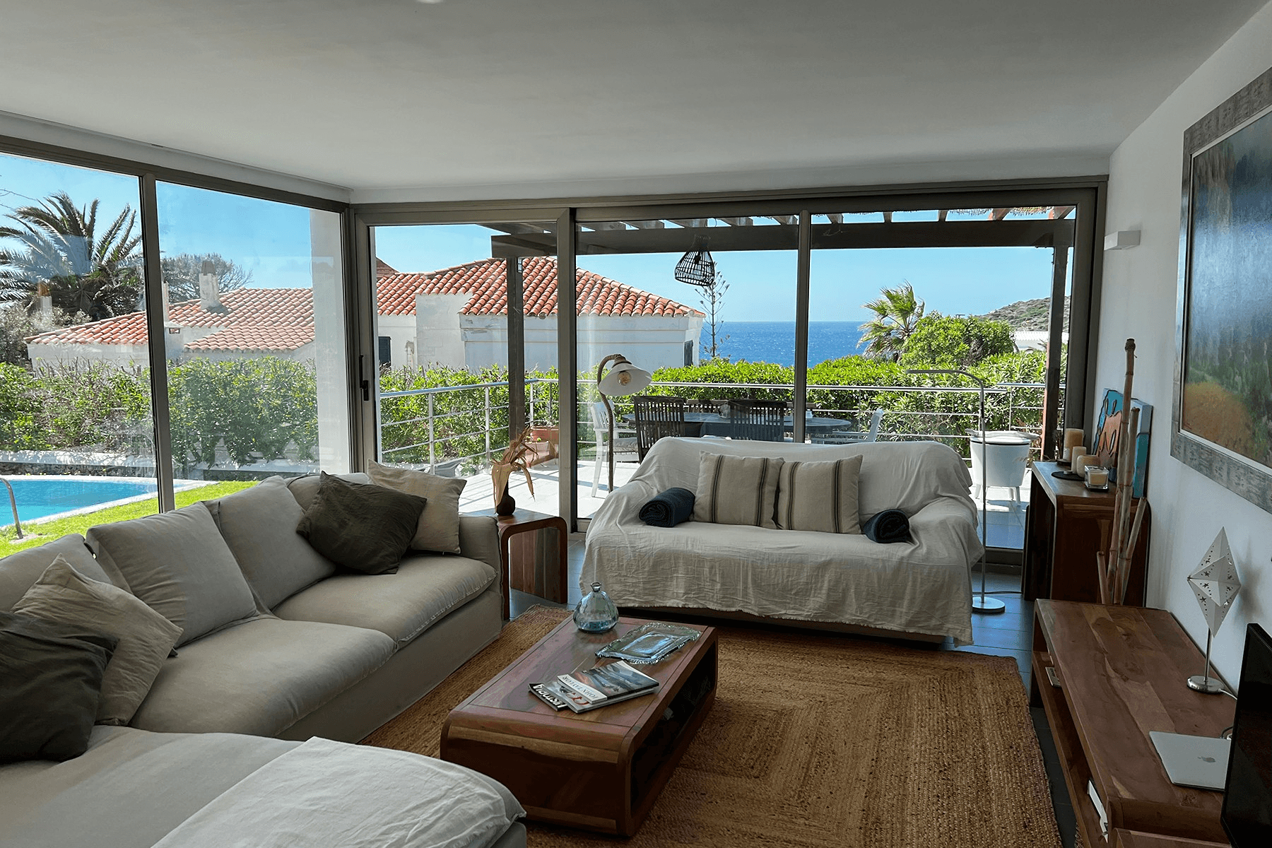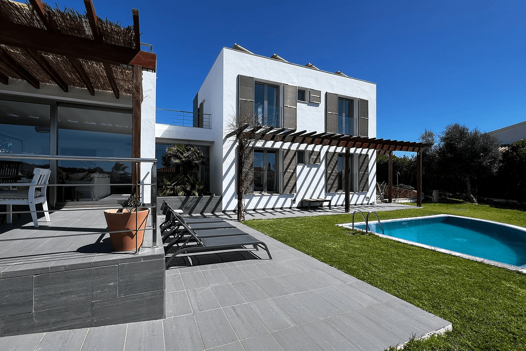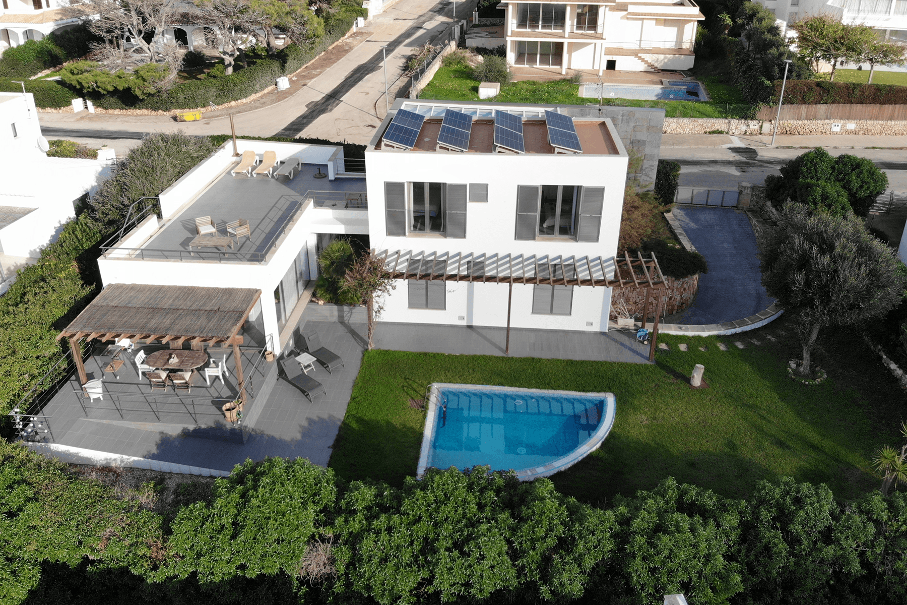 This impressive house, from which magnificent sunsets over the Mediterranean can be admired, is located in the beautiful residential and tourist development of Es Canutells, in the south of the island, near the village of Sant Climent, the airport, and Mahón.