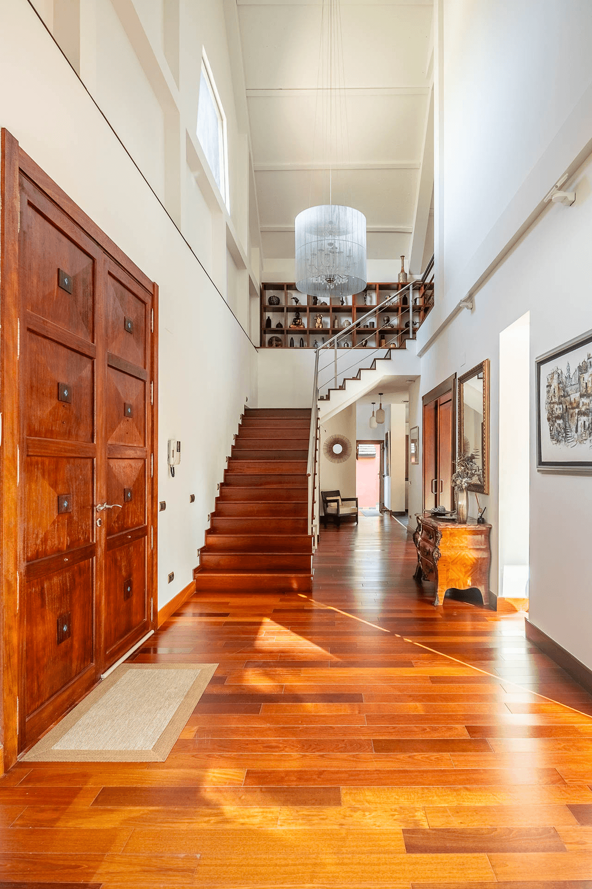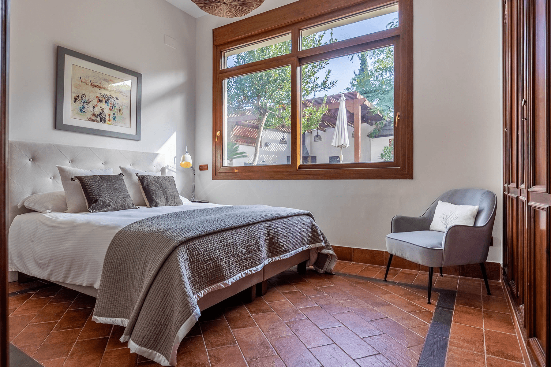 The main house is distributed over two levels. On the ground floor, a solid iroko wood main door provides access to the foyer, where high ceilings and brightness stand out. This level features a spacious living-dining room with a fireplace and open kitchen, a master bedroom with a walk-in closet and an en-suite bathroom with a jacuzzi and hydromassage shower, as well as an additional bathroom and a laundry room. Large windows allow direct access and views of the garden. Read more