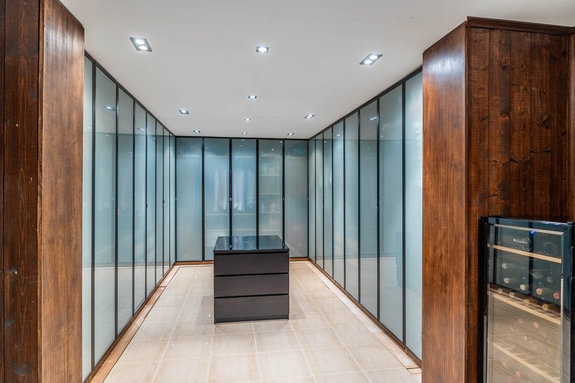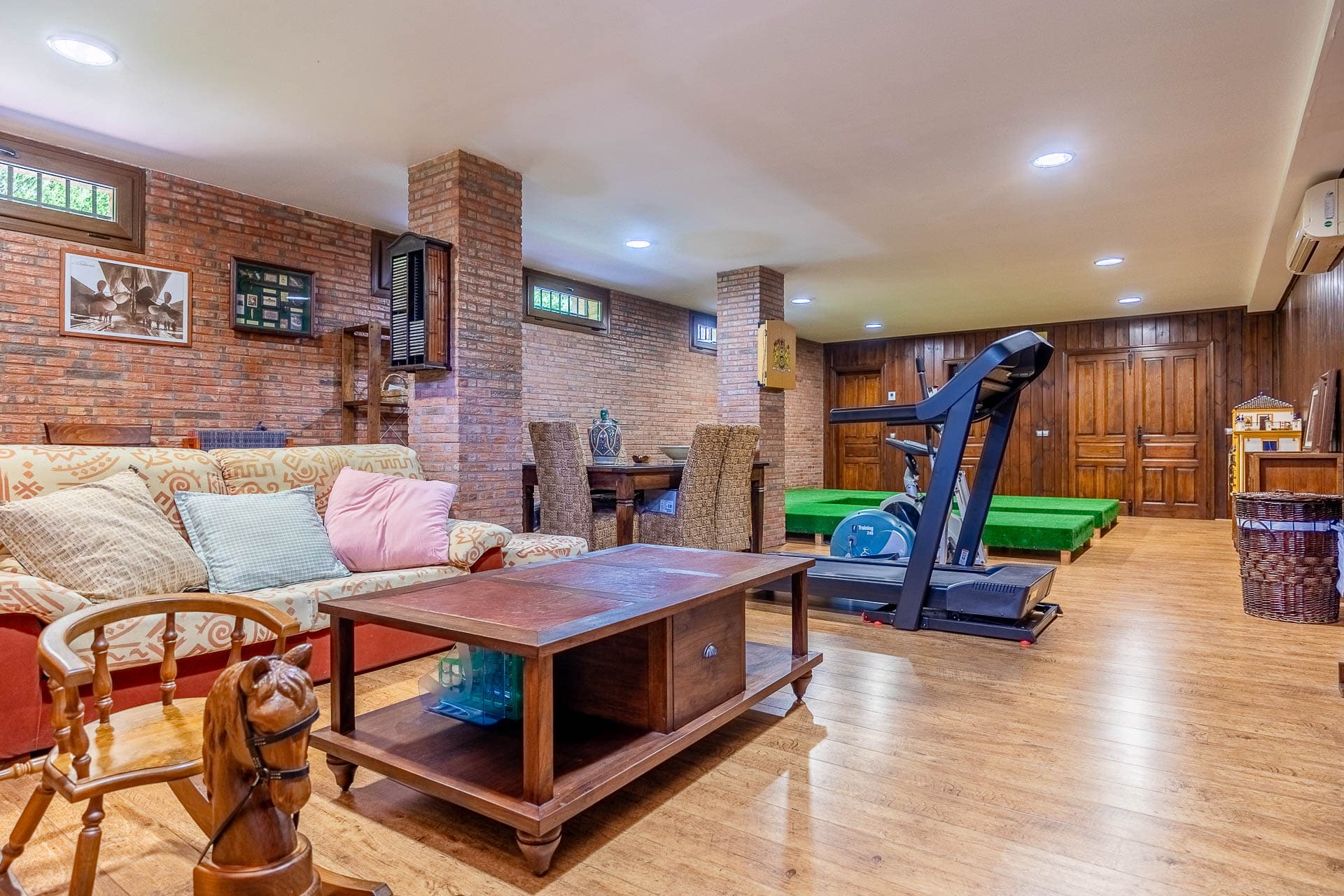 The basement has a garage for five vehicles and several motorcycles, a storage room, two dressing rooms of over twenty square meters each, and a spacious multi-purpose lounge with a toilet. Read more